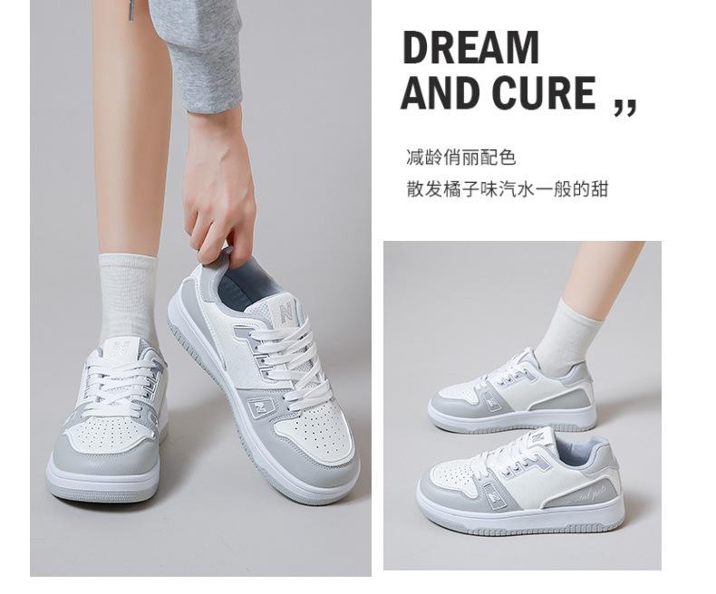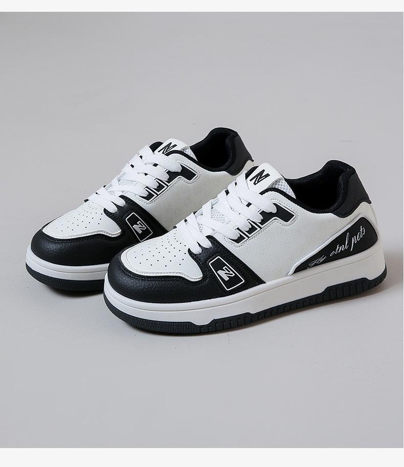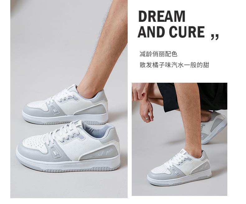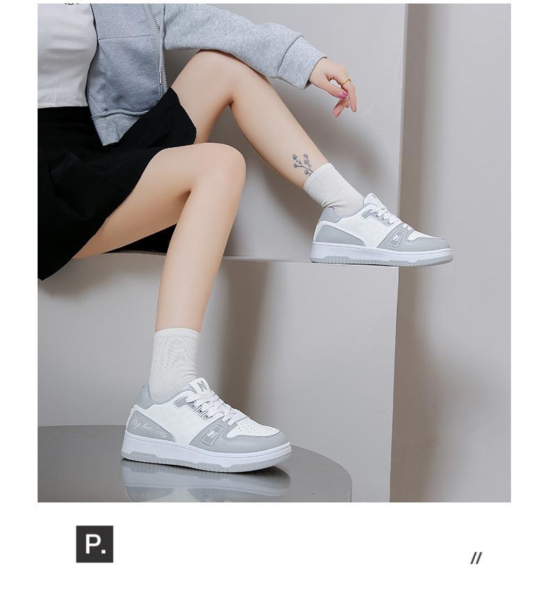 🌟 ¡Tenis "trampa" de ajuste relajado! El cordón frontal crea un ambiente casual, la punta redonda es cómoda como caminar sobre las nubes☁️ Los elementos de bloques de color son súper modernos, sueltos y transpirables, se pueden estilizar para looks deportivos y casuales, delgados y versátiles, la suela antideslizante añade altura sutilmente, outfits modernos logrados directamente ✔️ Los esquemas de color gris-blanco / blanco-negro son infalibles, para salidas diarias, 0 errores~