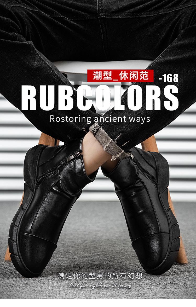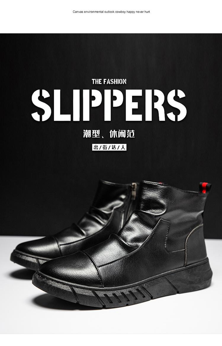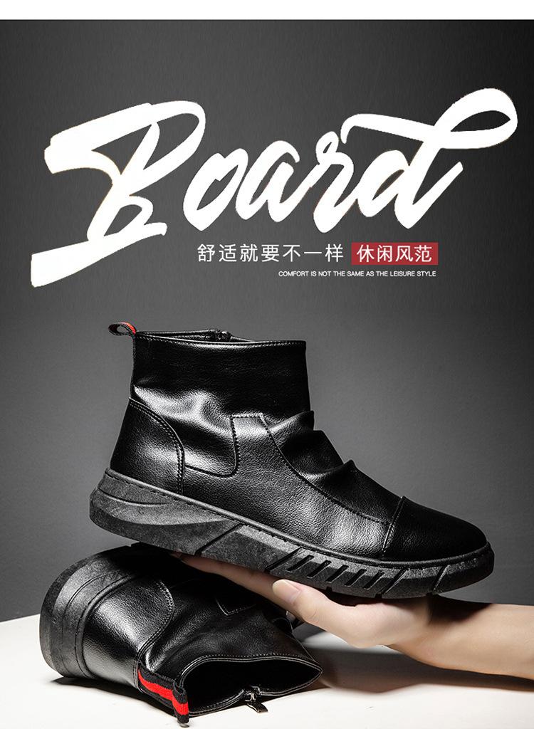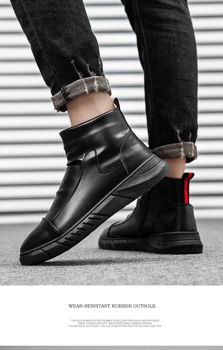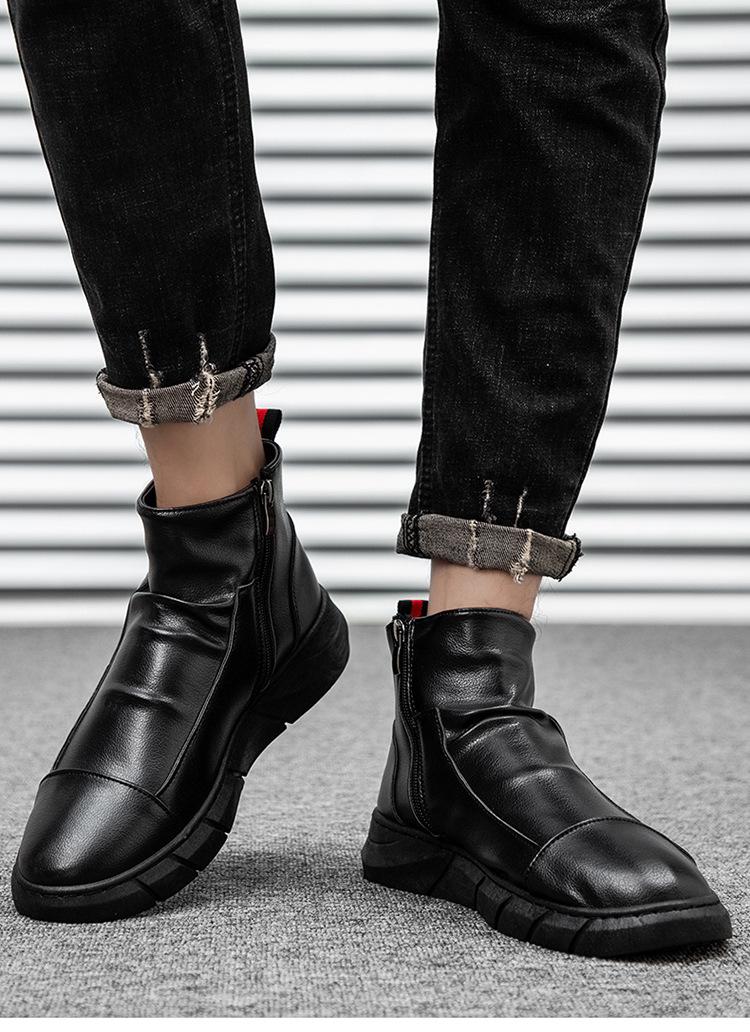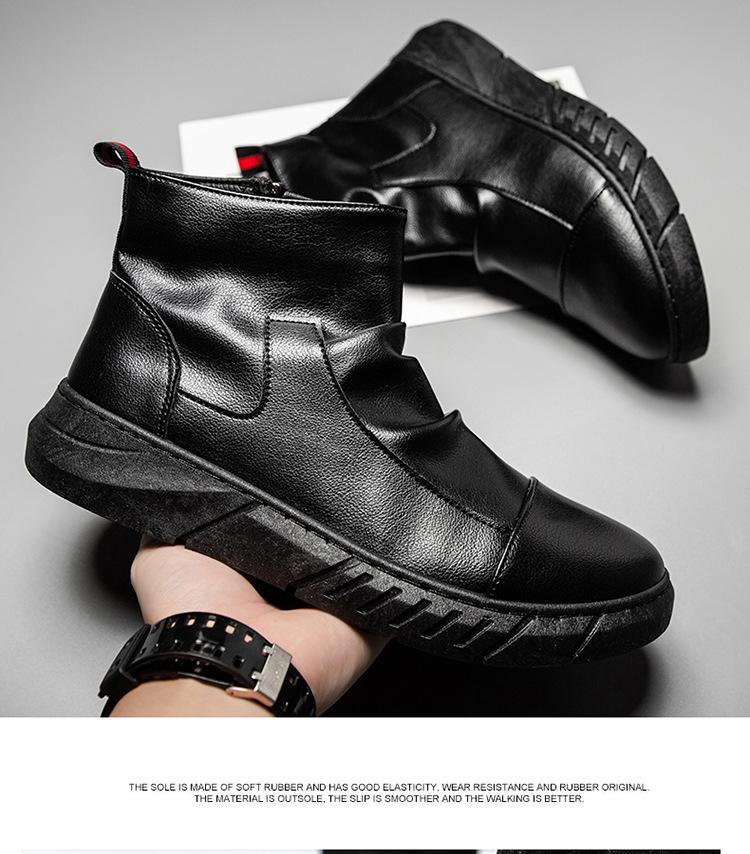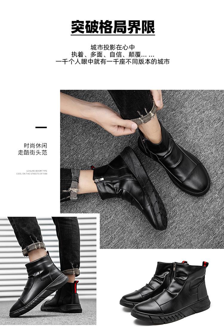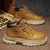 En stock talla grande otoño punta redonda Negro botas Martin para hombre estilo británico zapatos de hombre cuero tela costuras media caña botas de trabajo