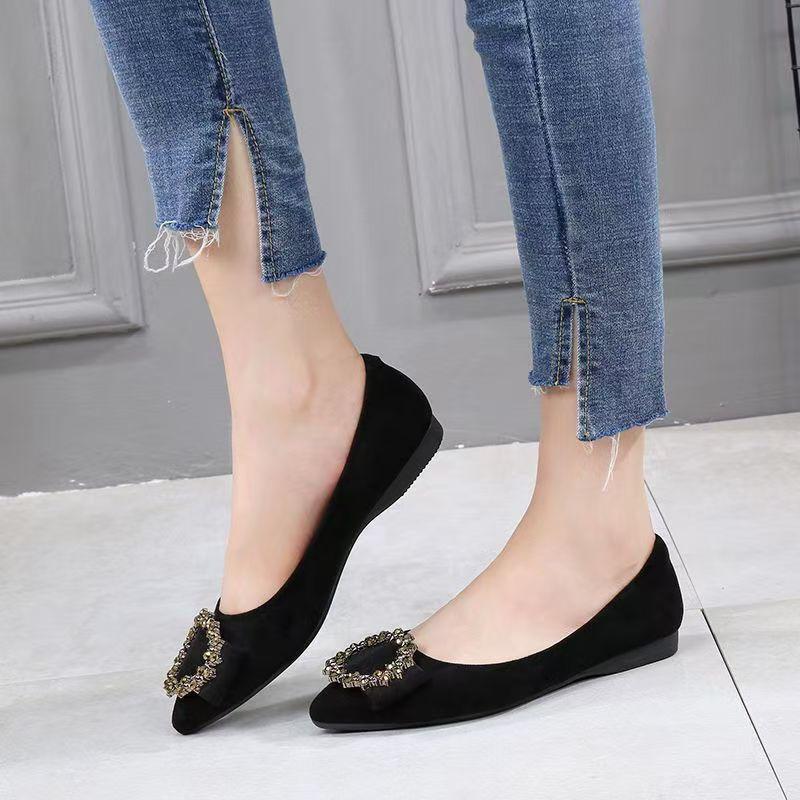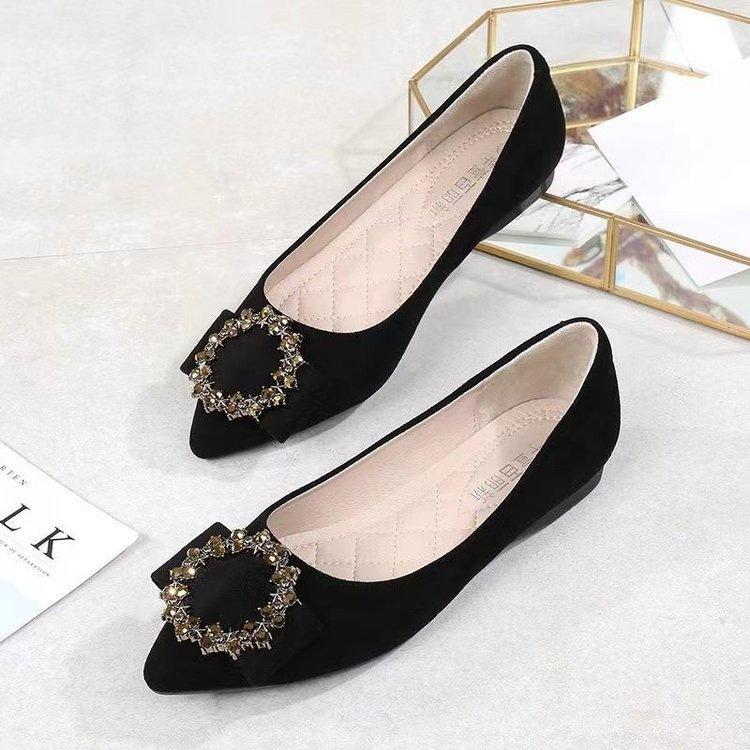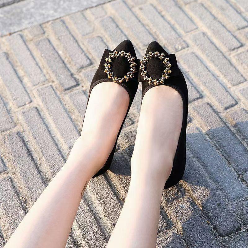 Zapatos individuales de mujer de punta plana de boca baja nuevos 2025 Otoño Zapatos versátiles Suela suave Antideslizantes Zapatos de trabajo negros Mocasines