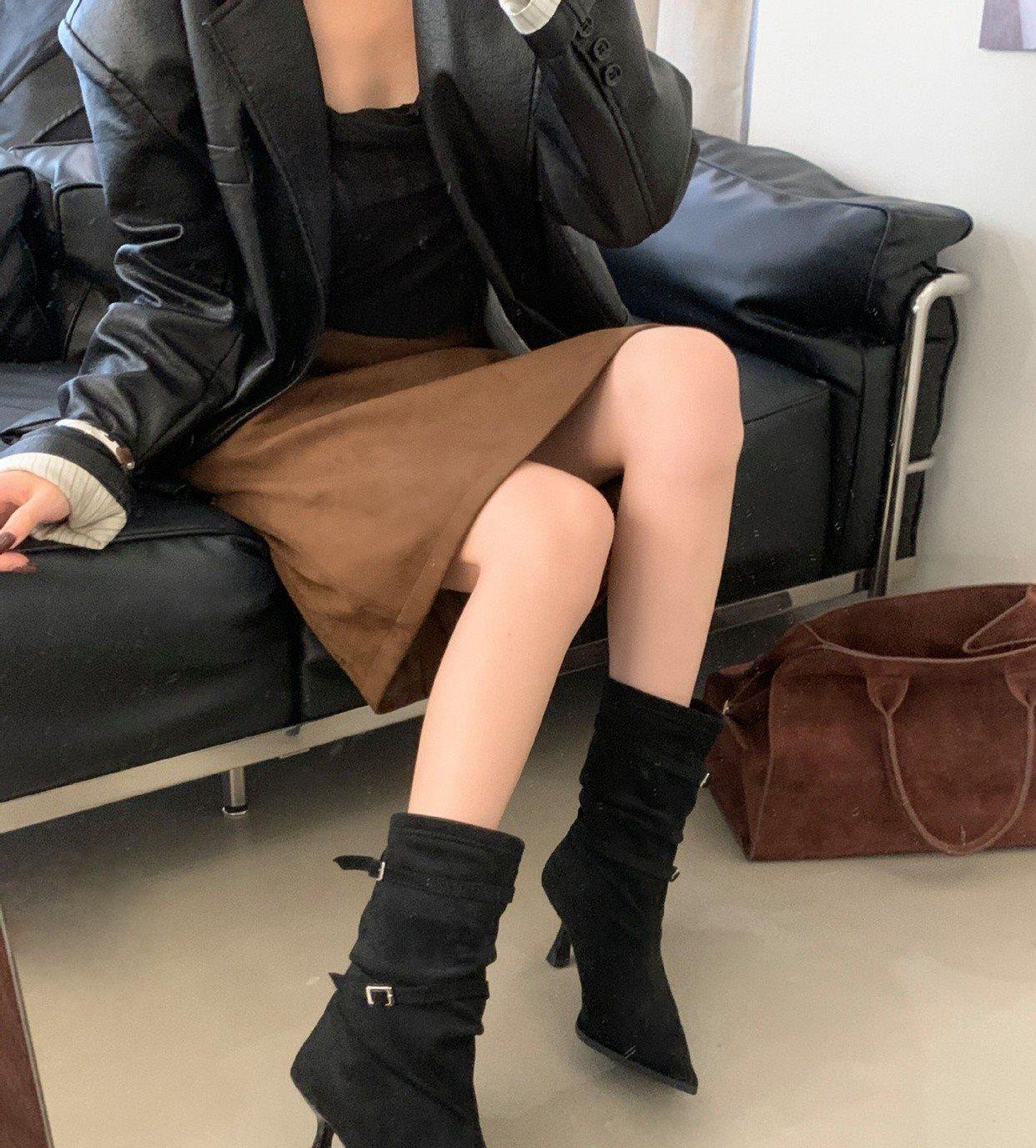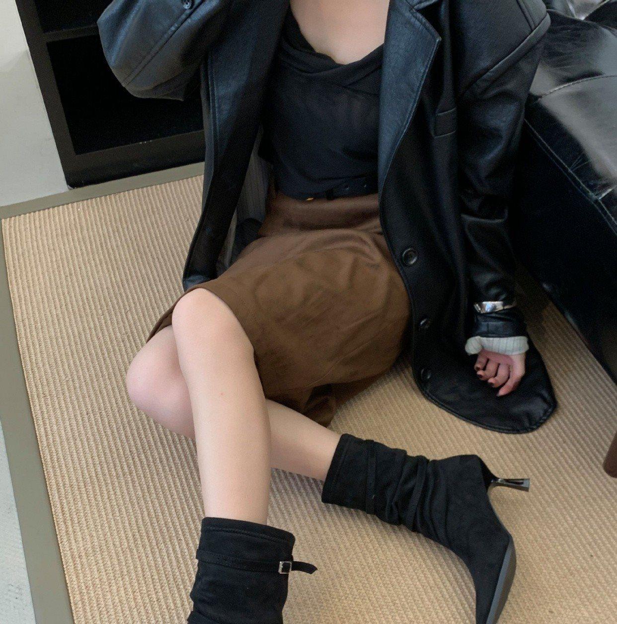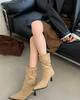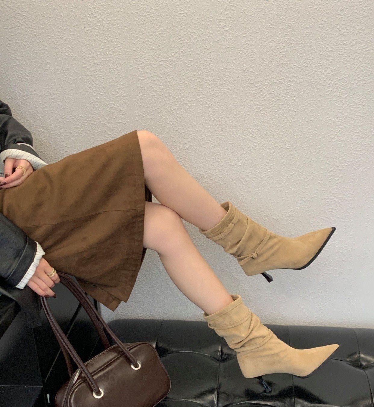 2025 Otoño/Invierno Nueva Moda Versátil Punta Afilada Tacón de Aguja Botines al Tobillo Mujer Gamuza Tacón Alto Francés Adelgazantes Botines al Tobillo Mujer