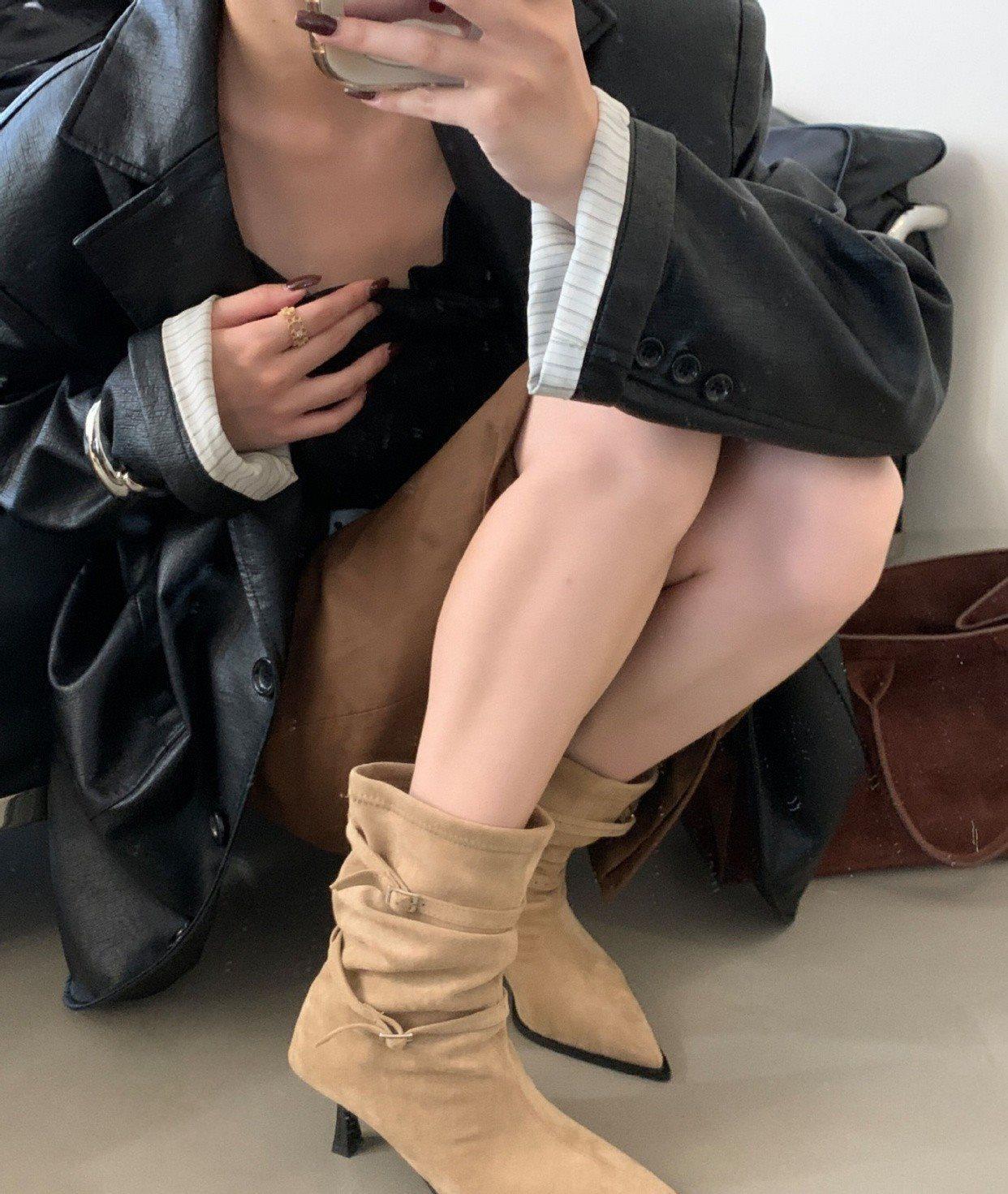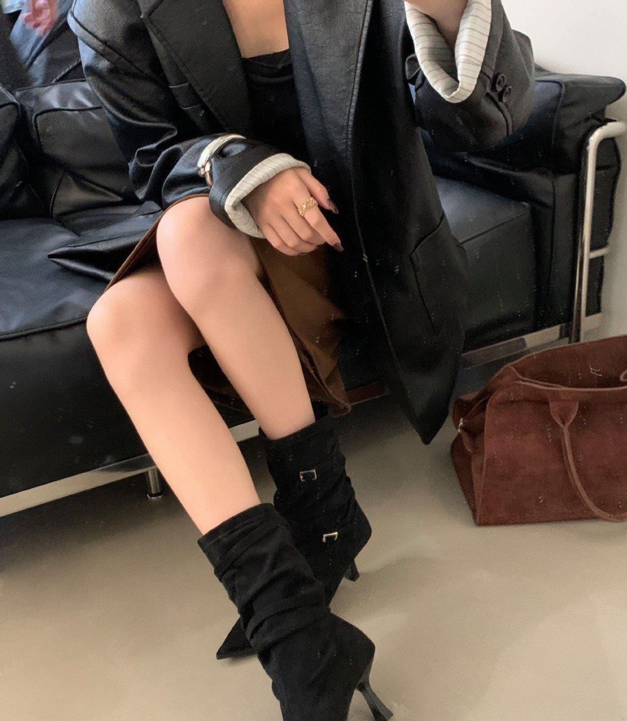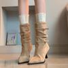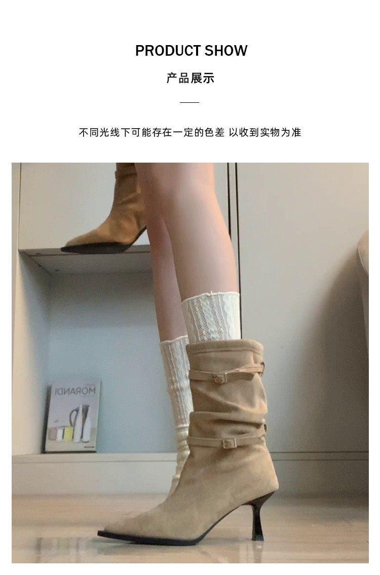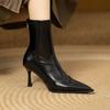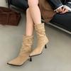 2025 Otoño/Invierno Nueva Moda Versátil Punta Afilada Tacón de Aguja Botines al Tobillo Mujer Gamuza Tacón Alto Francés Adelgazantes Botines al Tobillo Mujer