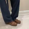 Versión de piel de vaca~Nicho serie miu súper suaves mocasines bajos con lazo para mujer planos de piel genuina sin cordones zapatos tipo mocasín