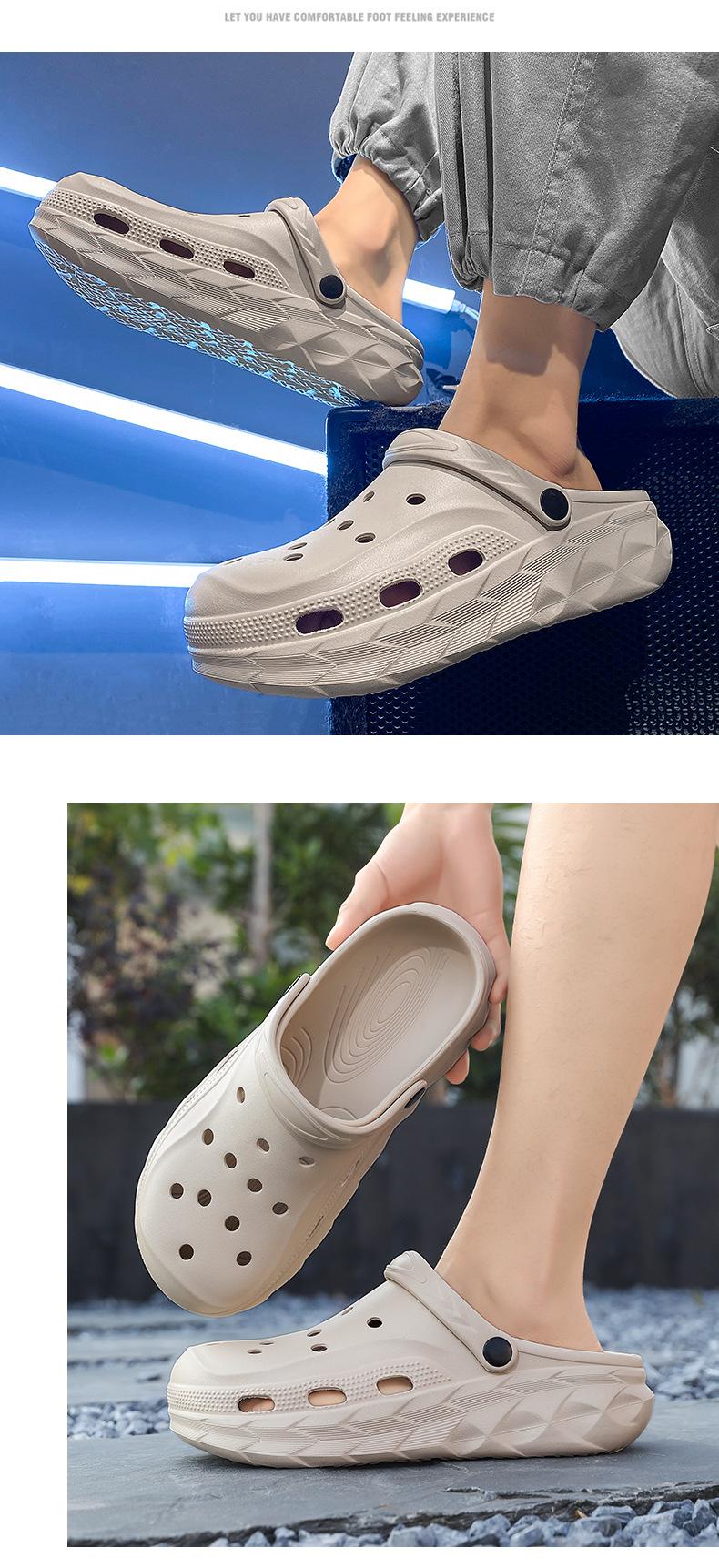 Zapatos de agujeros transpirables transfronterizos para hombre, ropa de verano, zapatillas casuales de dos vías, sandalias de playa antideslizantes de color sólido para exteriores