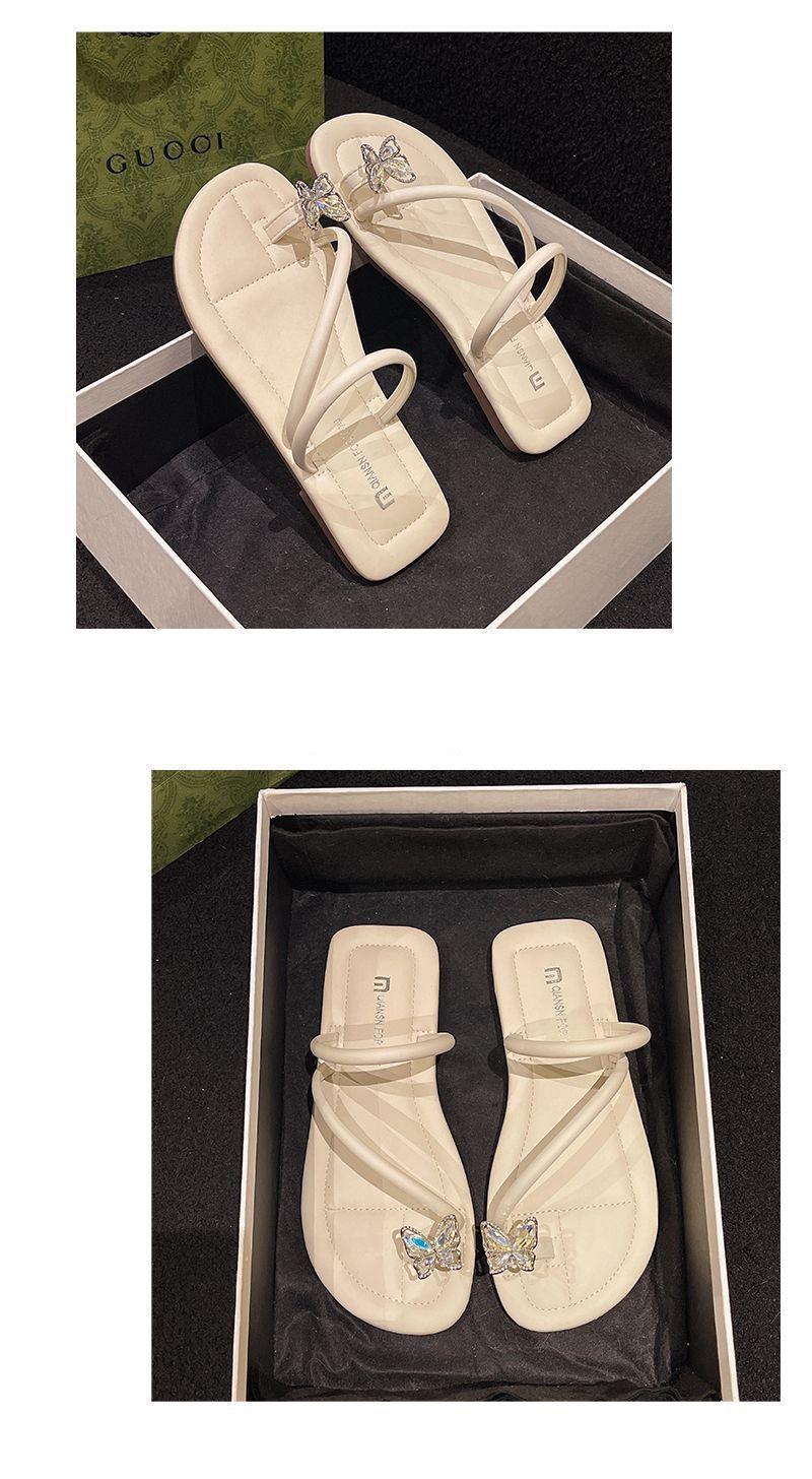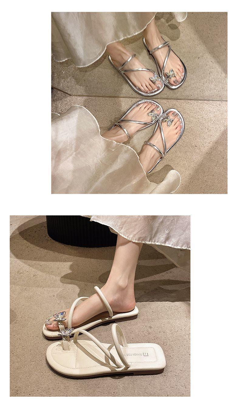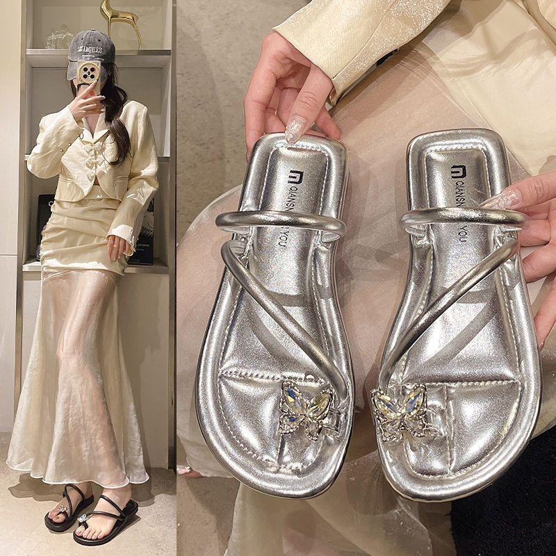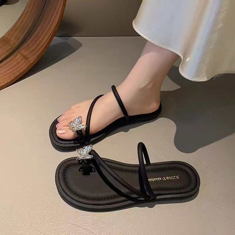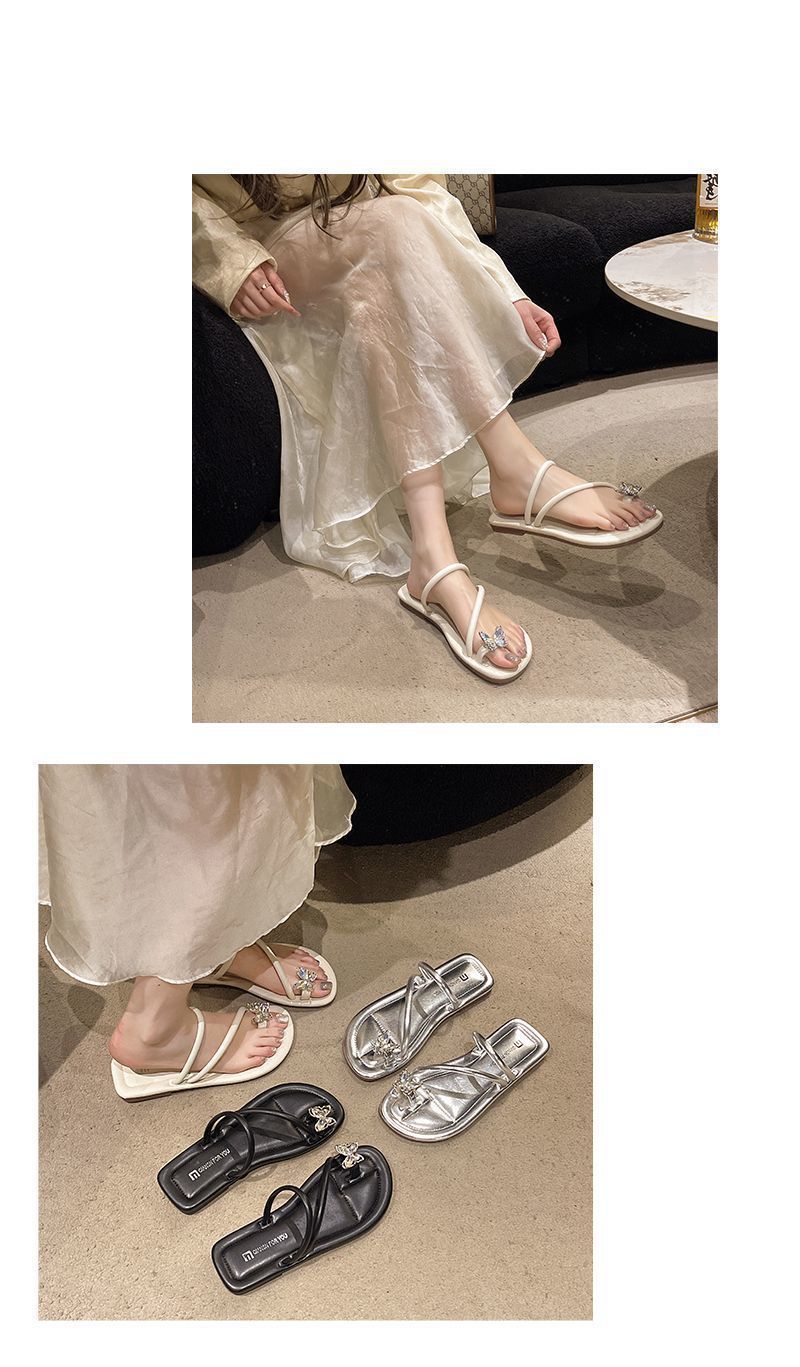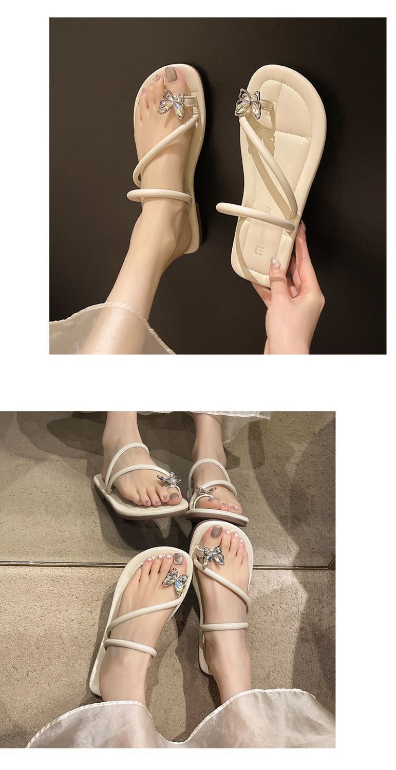Moda Nuevo Outwear Pedrería Estilo Hada Suela Suave Sandalias de Playa Zapatos 2025 Verano Zapatillas Planas Francesas Mujer