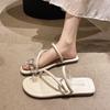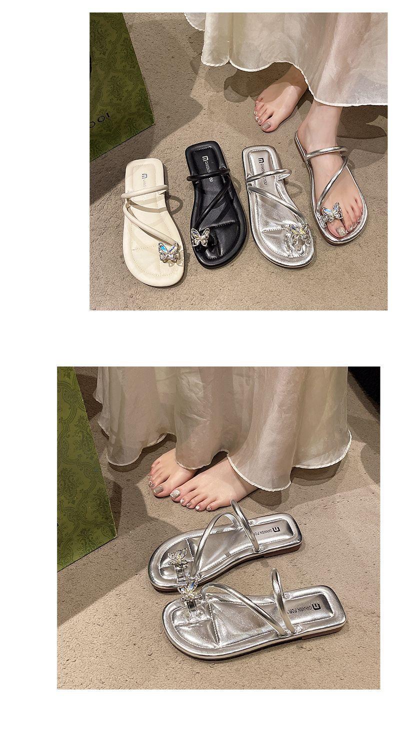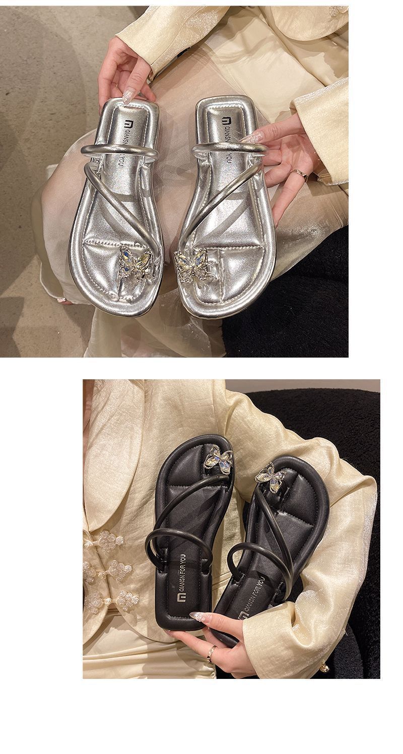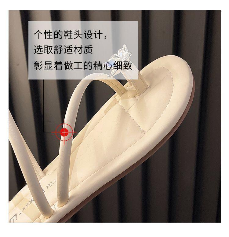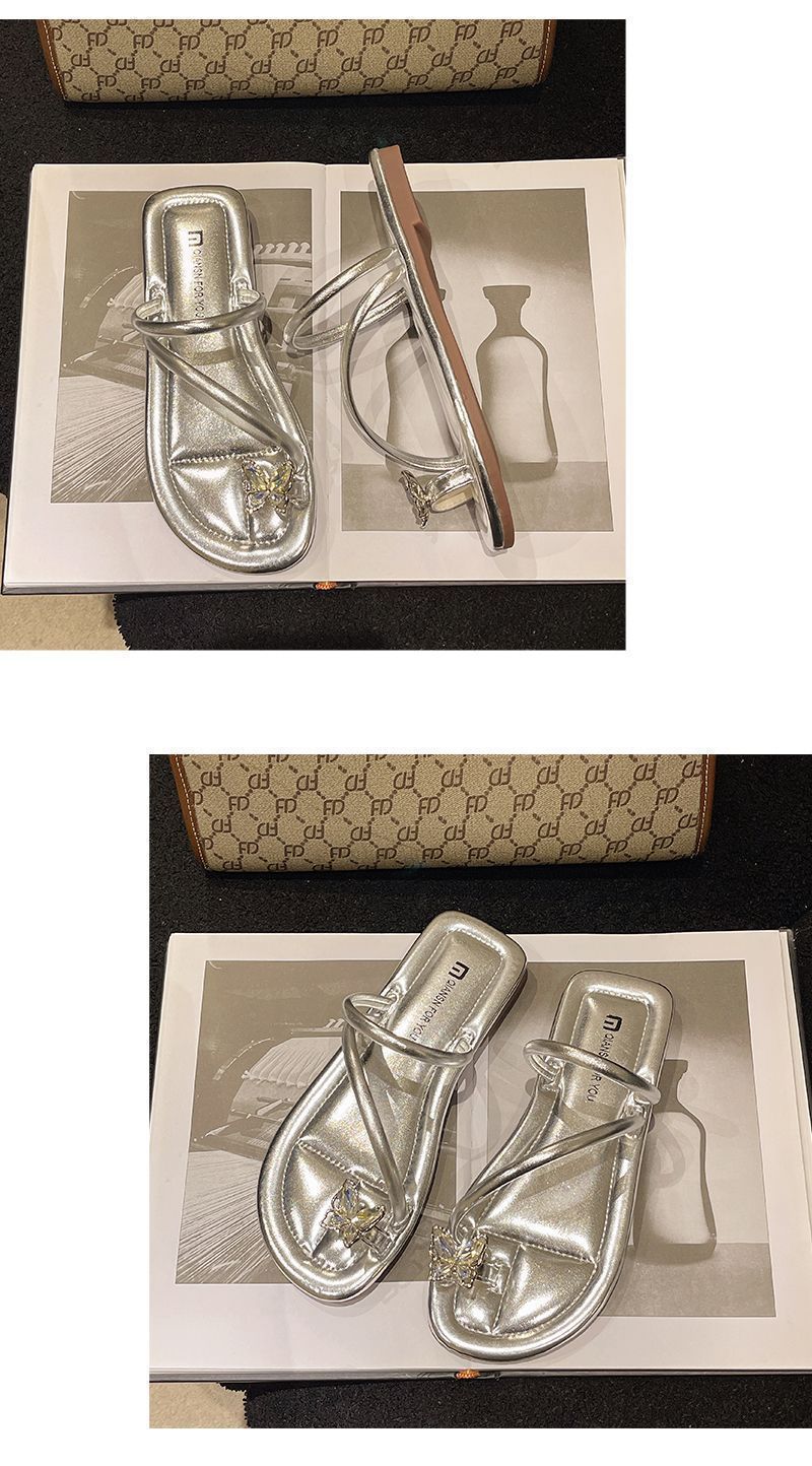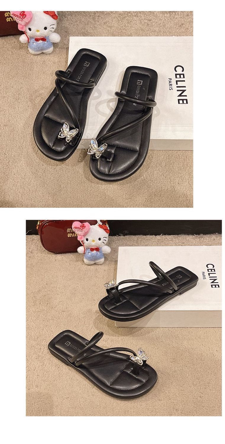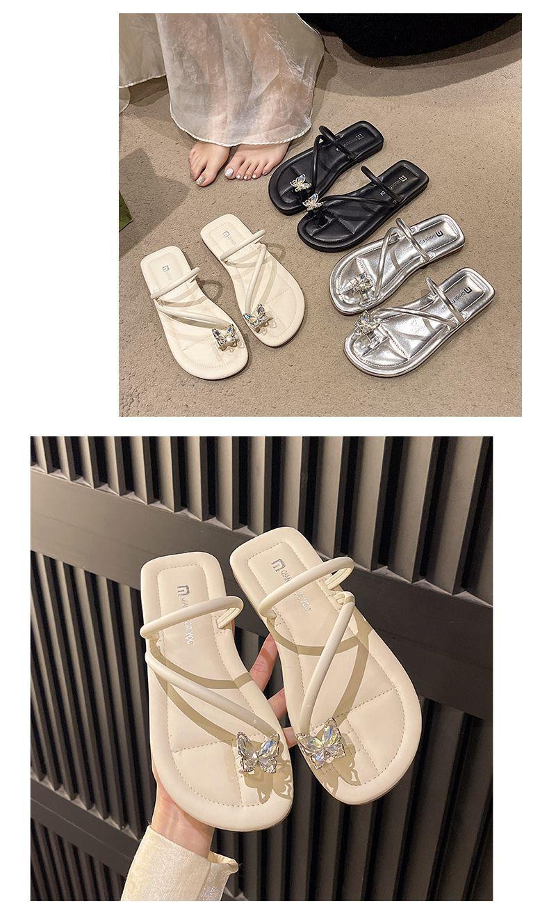 Moda Nuevo Outwear Pedrería Estilo Hada Suela Suave Sandalias de Playa Zapatos 2025 Verano Zapatillas Planas Francesas Mujer