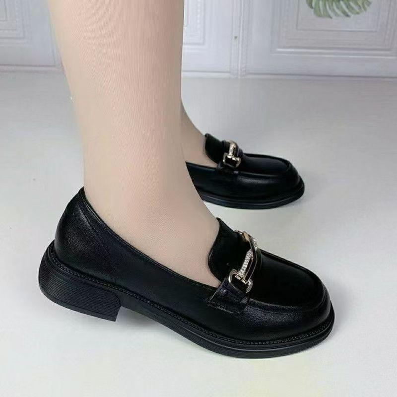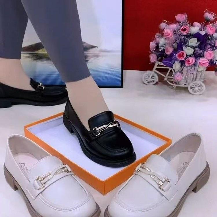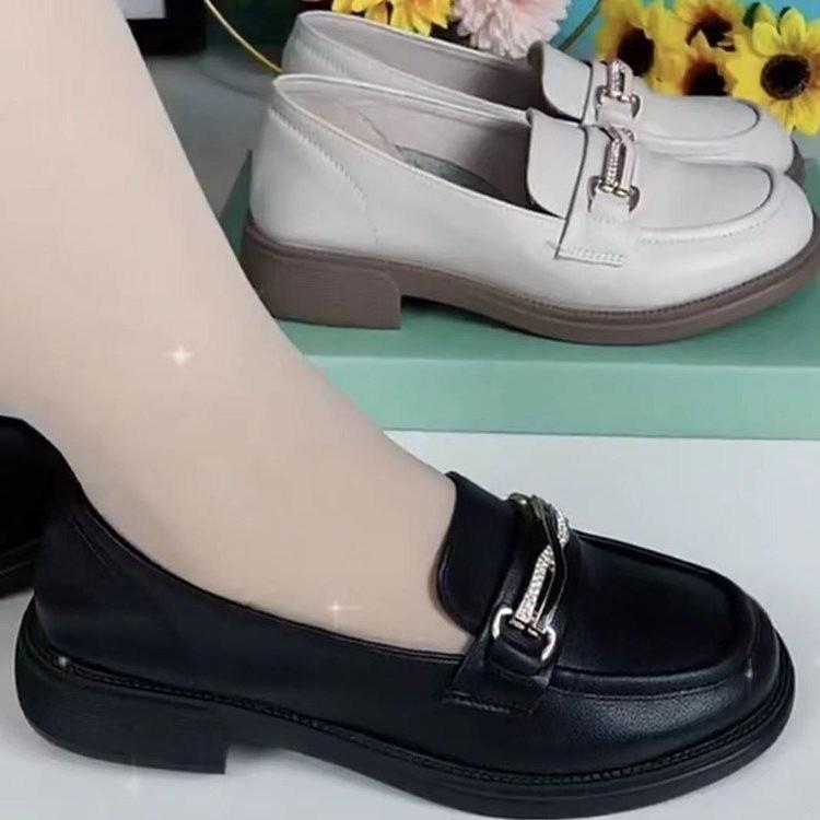 Estilo Caliente 2025 Nuevo Otoño Estilo Británico Slip-on Cuero Suave Suela Suave Antideslizante Zapatos Individuales Mocasines Zapatos de Moda para Mujer Tendencia