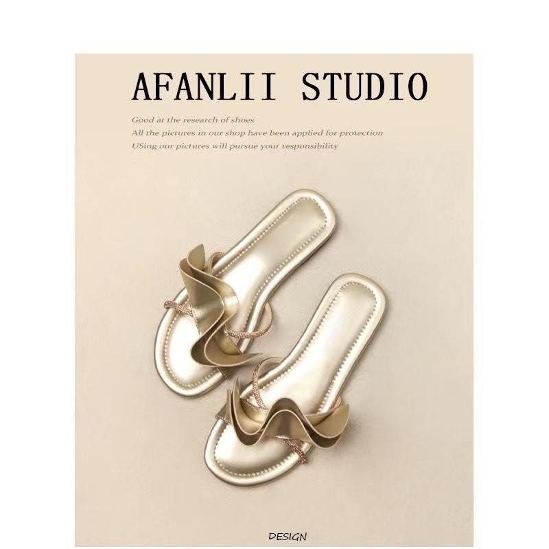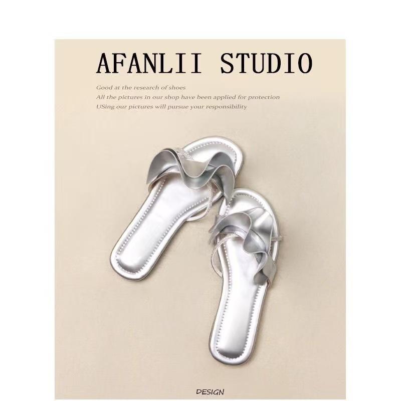 Zapatillas Francesas de Hada Elegantes con Volantes para Mujer 2025 Nuevas Flats Suela Suave Estilo Noche Zapatillas con Pedrería