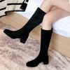 Botas de Tacón Alto por Encima de la Rodilla para Mujer 2025 Invierno Nuevo Punta Cuadrada Elásticas Ajustadas Botas de Tacón Ancho por Encima de la Rodilla Caña Alta Gamuza Botas Largas