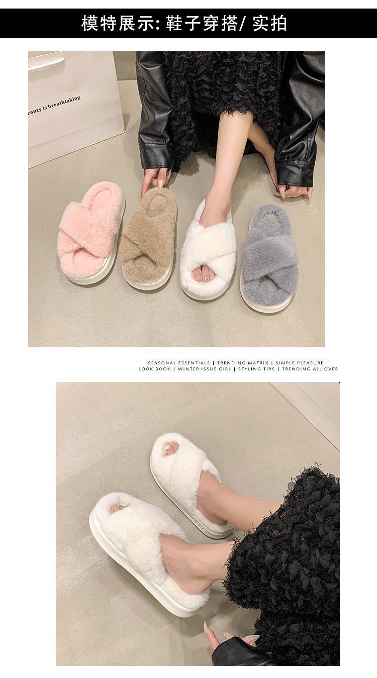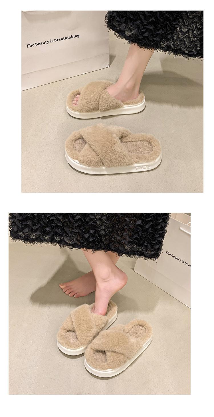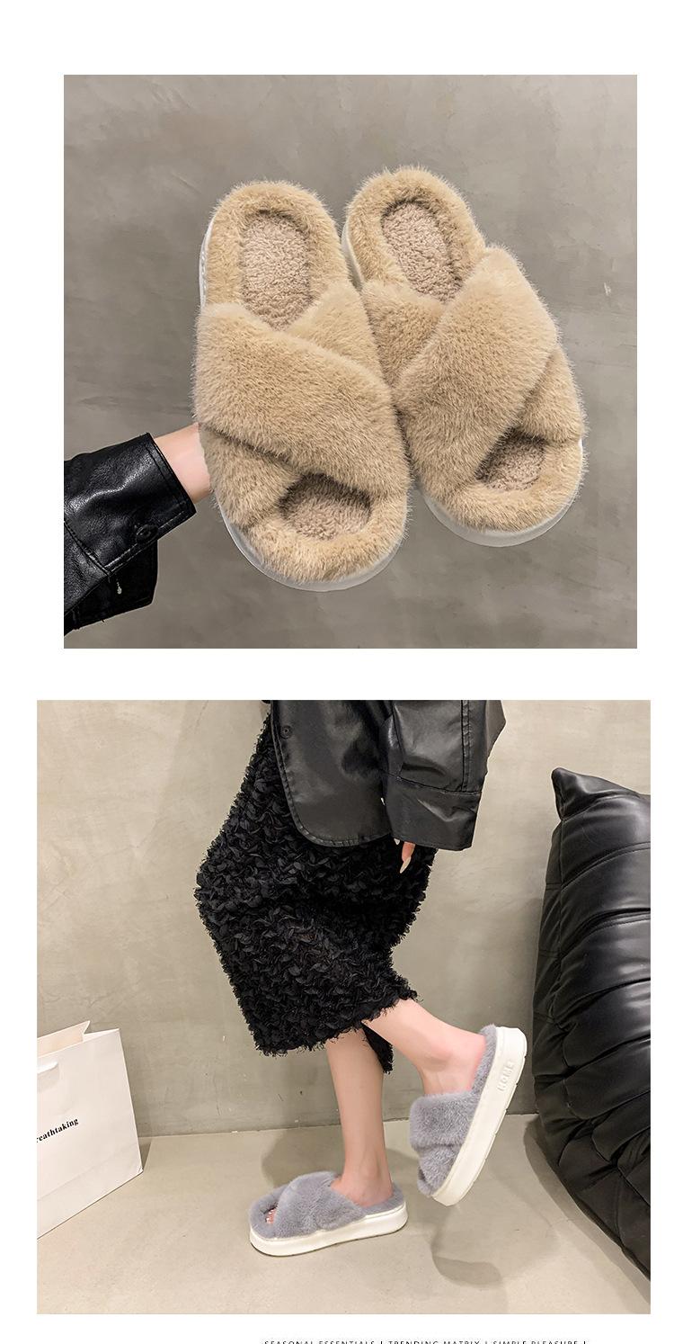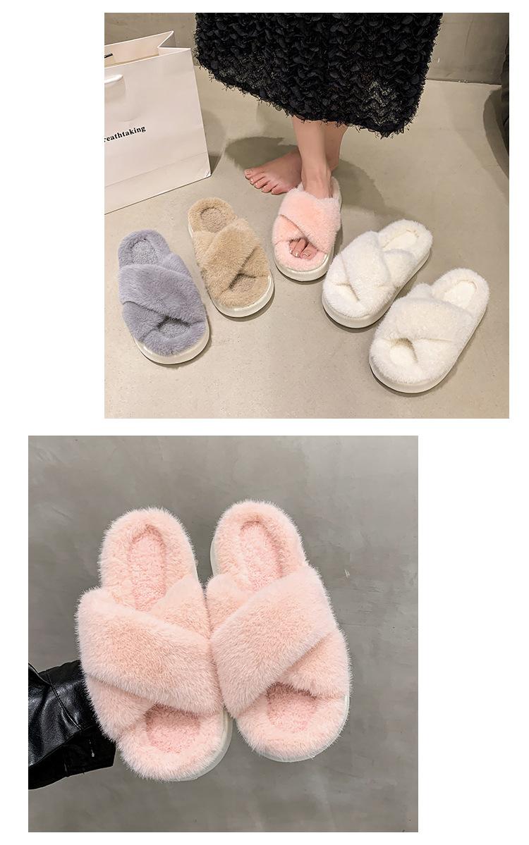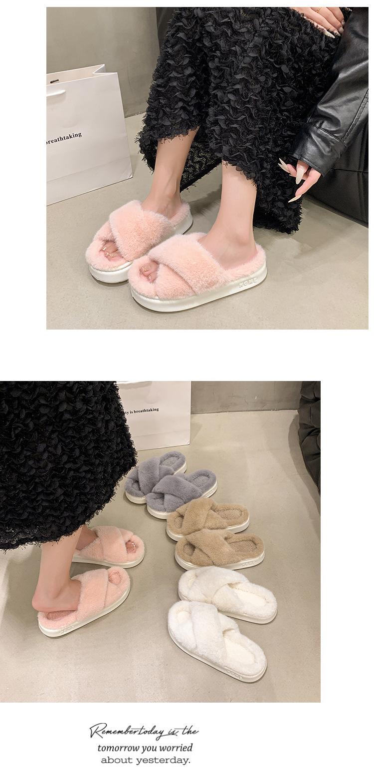 Compra Pantuflas Peludas para Mujer 2025 Otoño Suela Gruesa Cuadros Cruzadas Artificiales Cortas Rellenas Hogar Moda Pantuflas Mujer al por mayor en Joom.pro