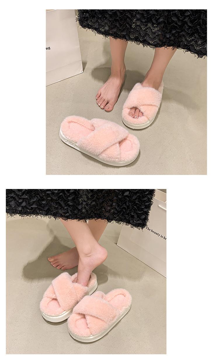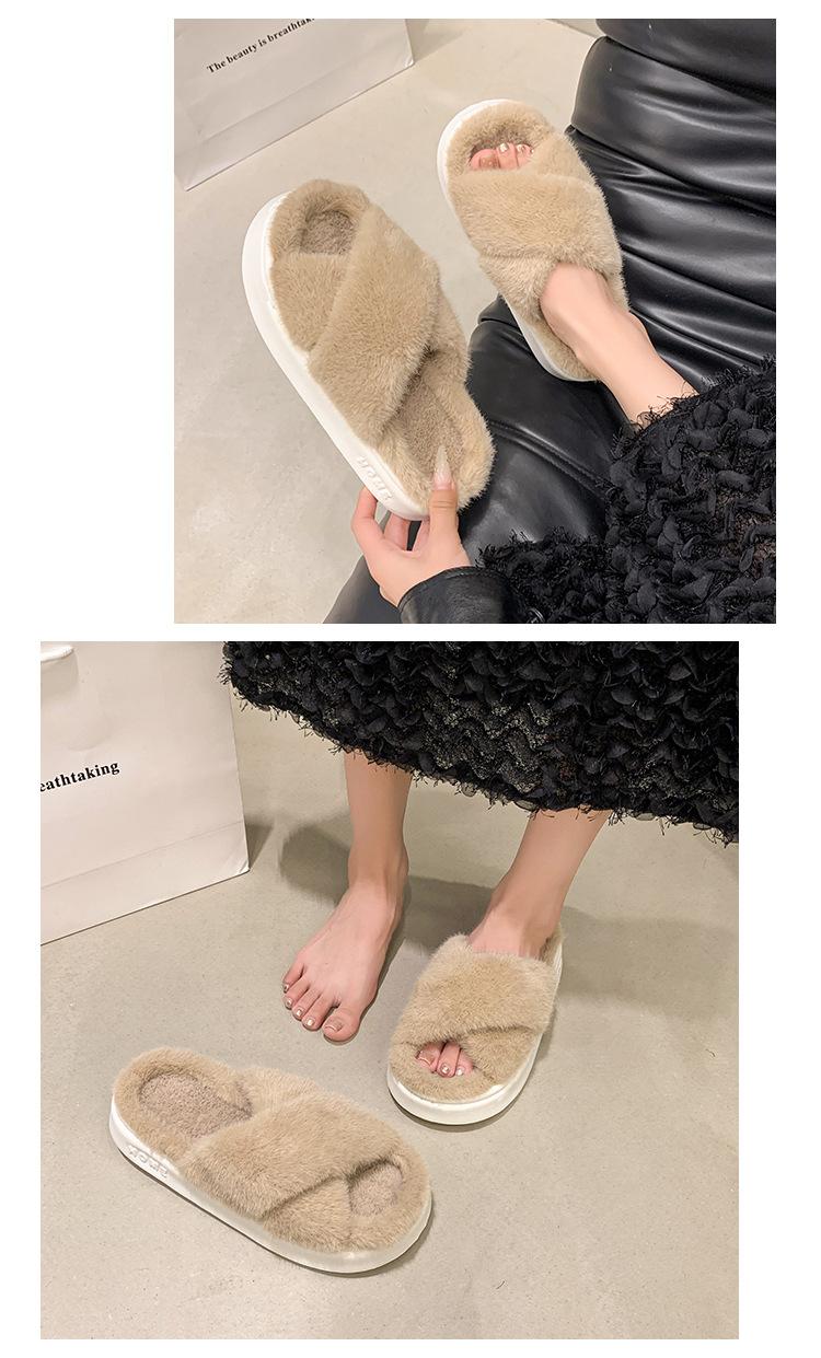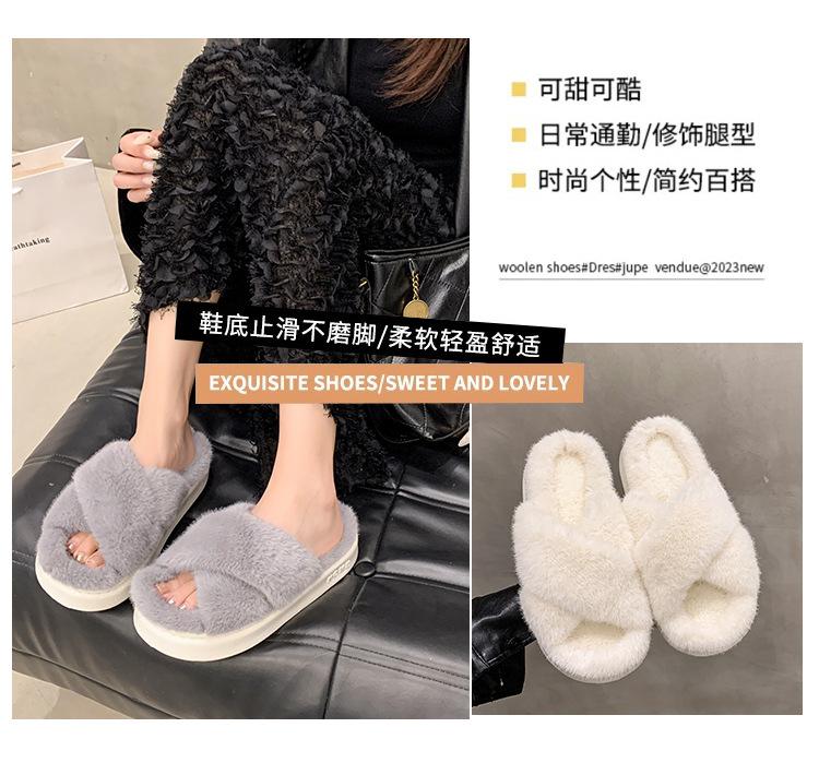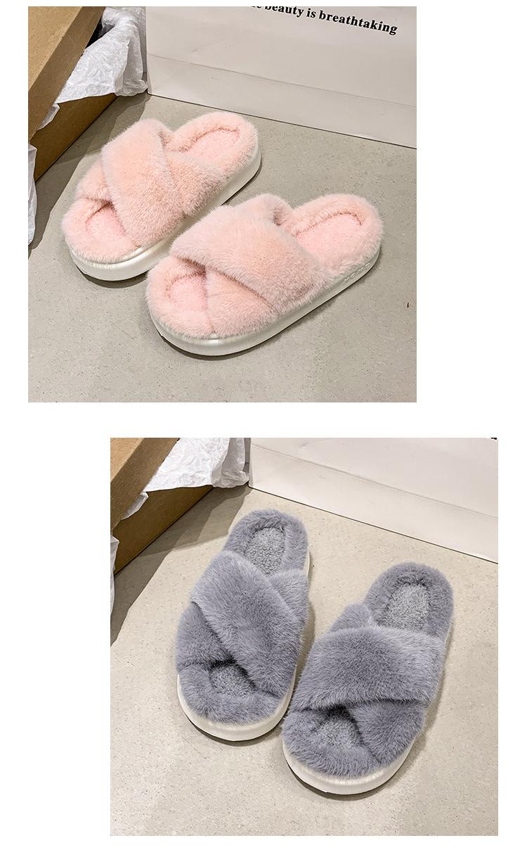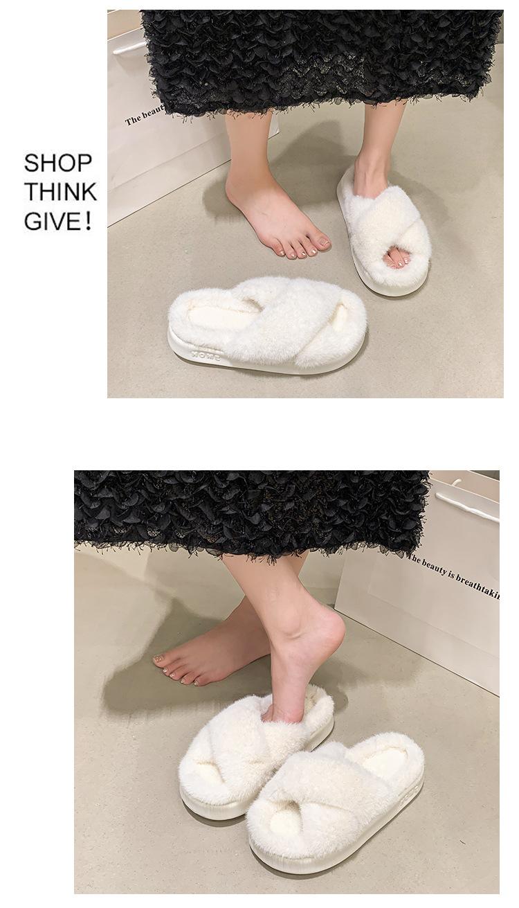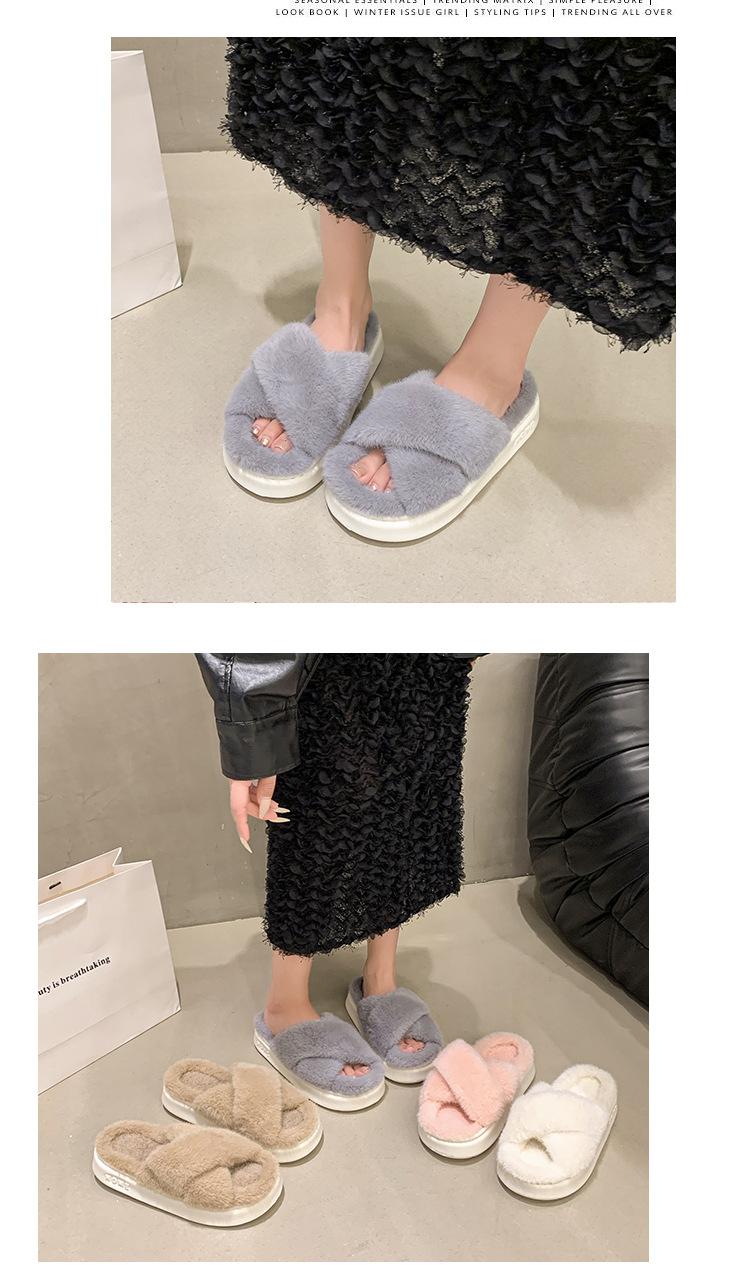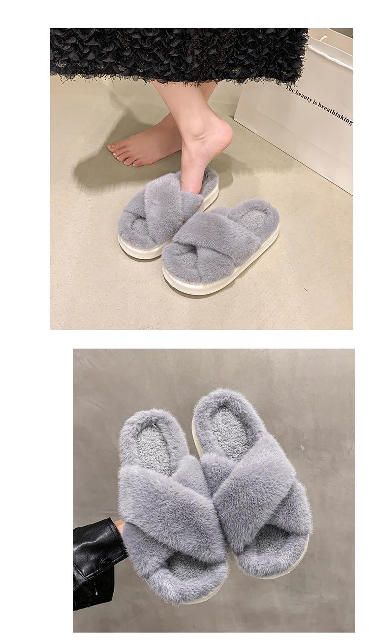 Compra Pantuflas Peludas para Mujer 2025 Otoño Suela Gruesa Cuadros Cruzadas Artificiales Cortas Rellenas Hogar Moda Pantuflas Mujer al por mayor en Joom.pro
