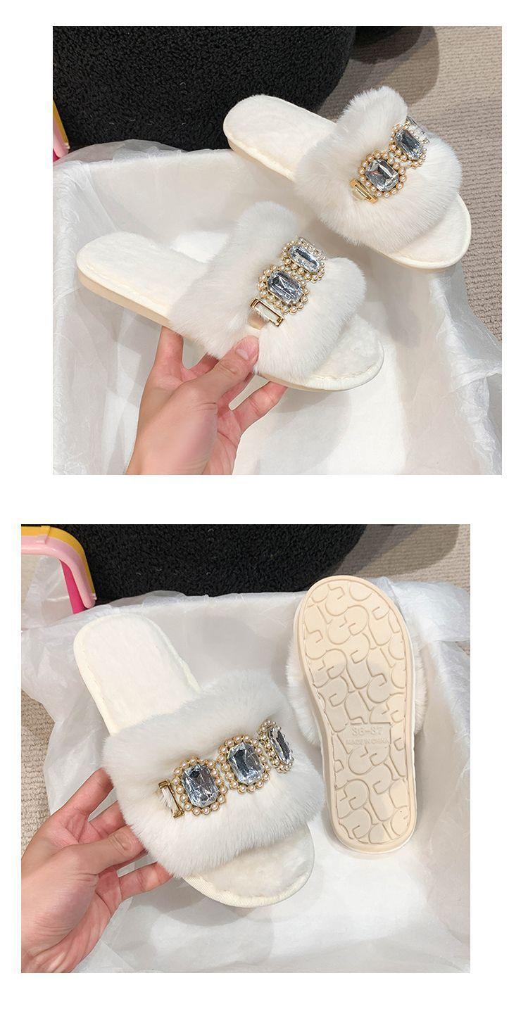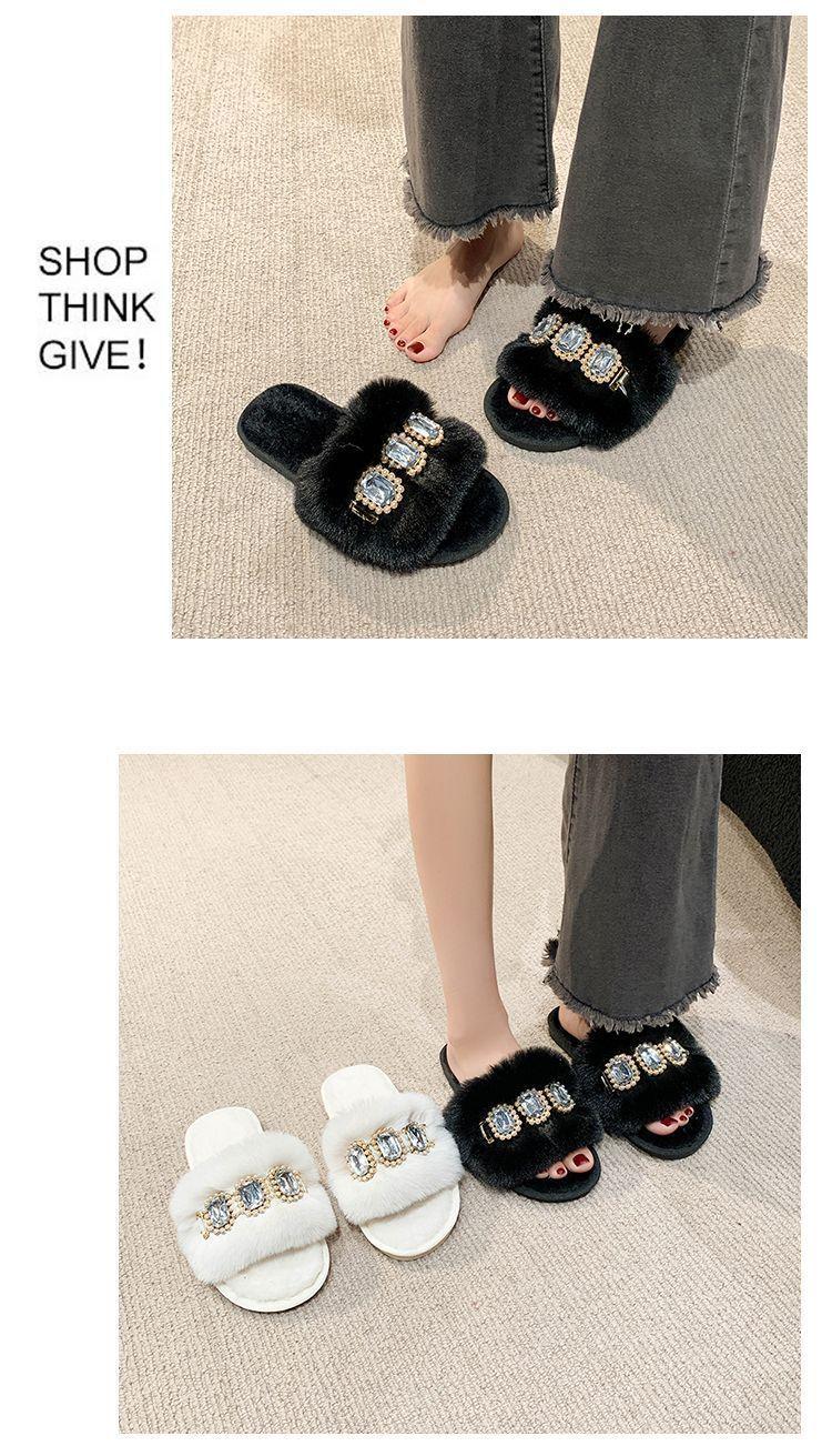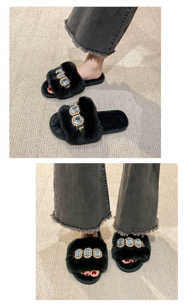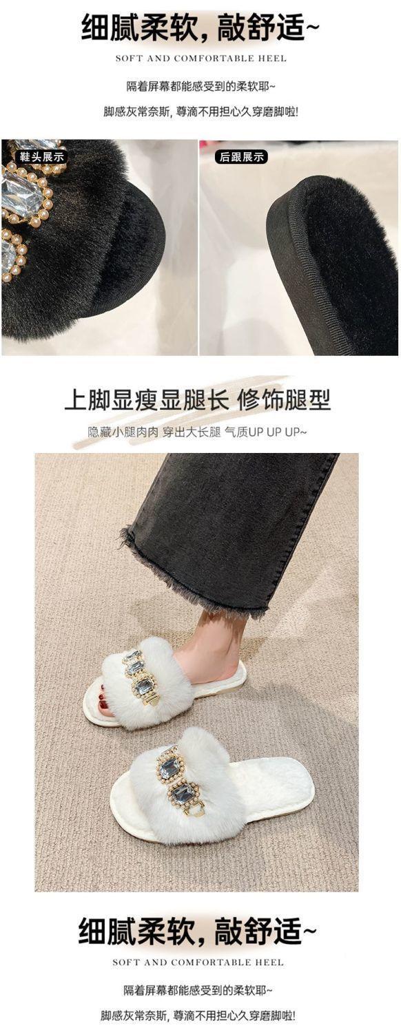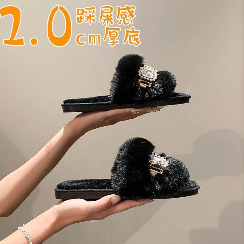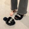 Pantuflas de Invierno para Mujer Estilo Coreano de Moda para Casa Piso Interior Antideslizantes Cálidas de Una Tira 2025 Otoño/Invierno Nuevas Pantuflas Peludas para Mujer