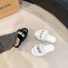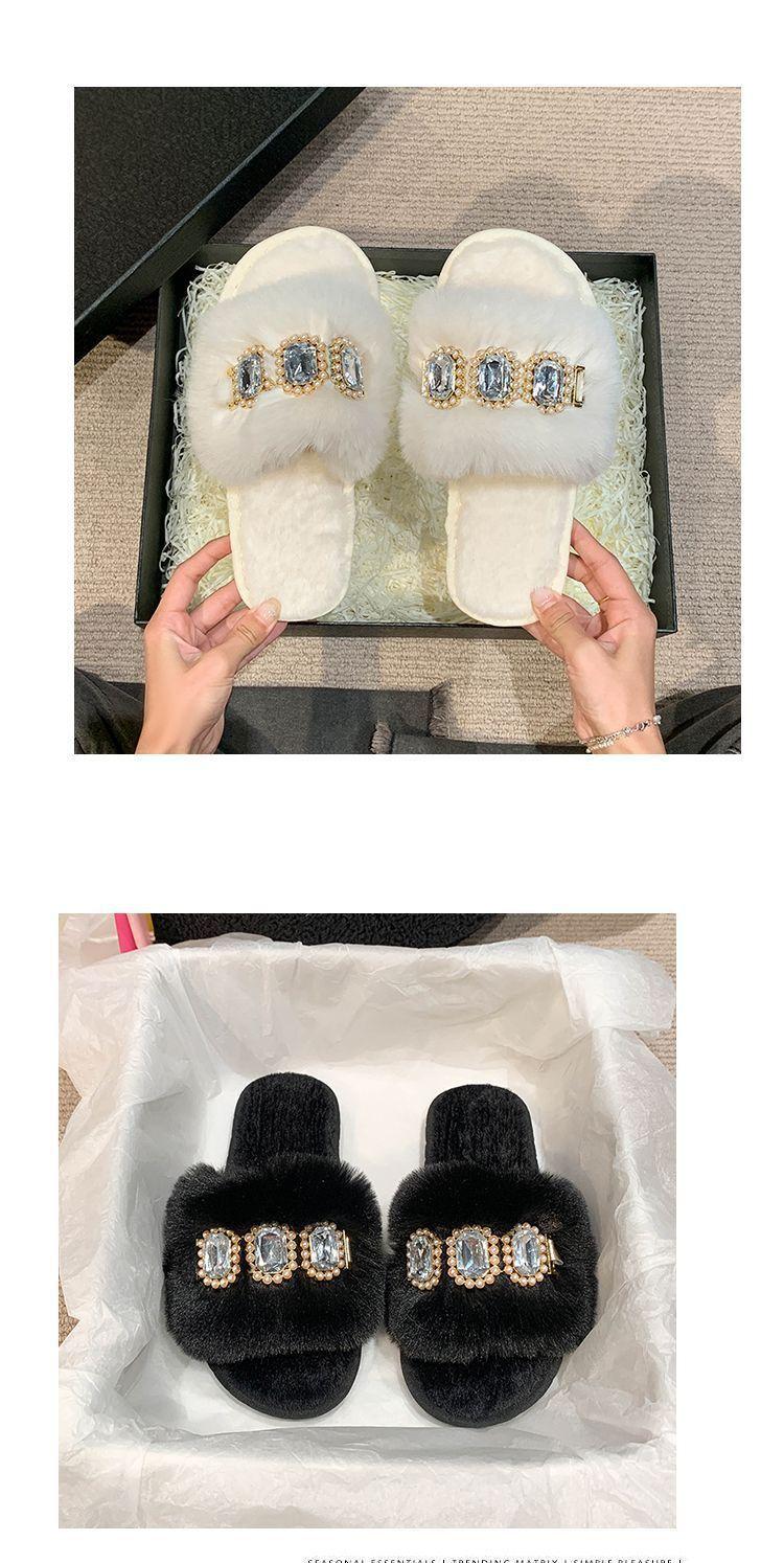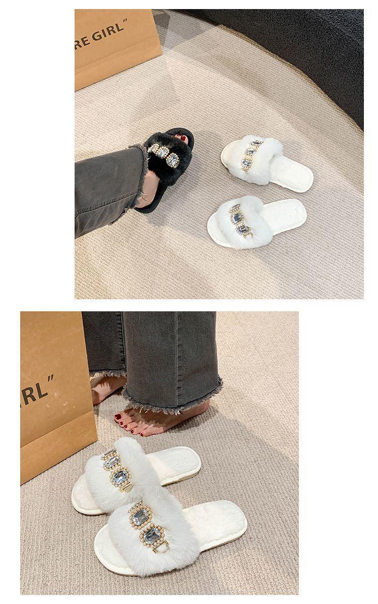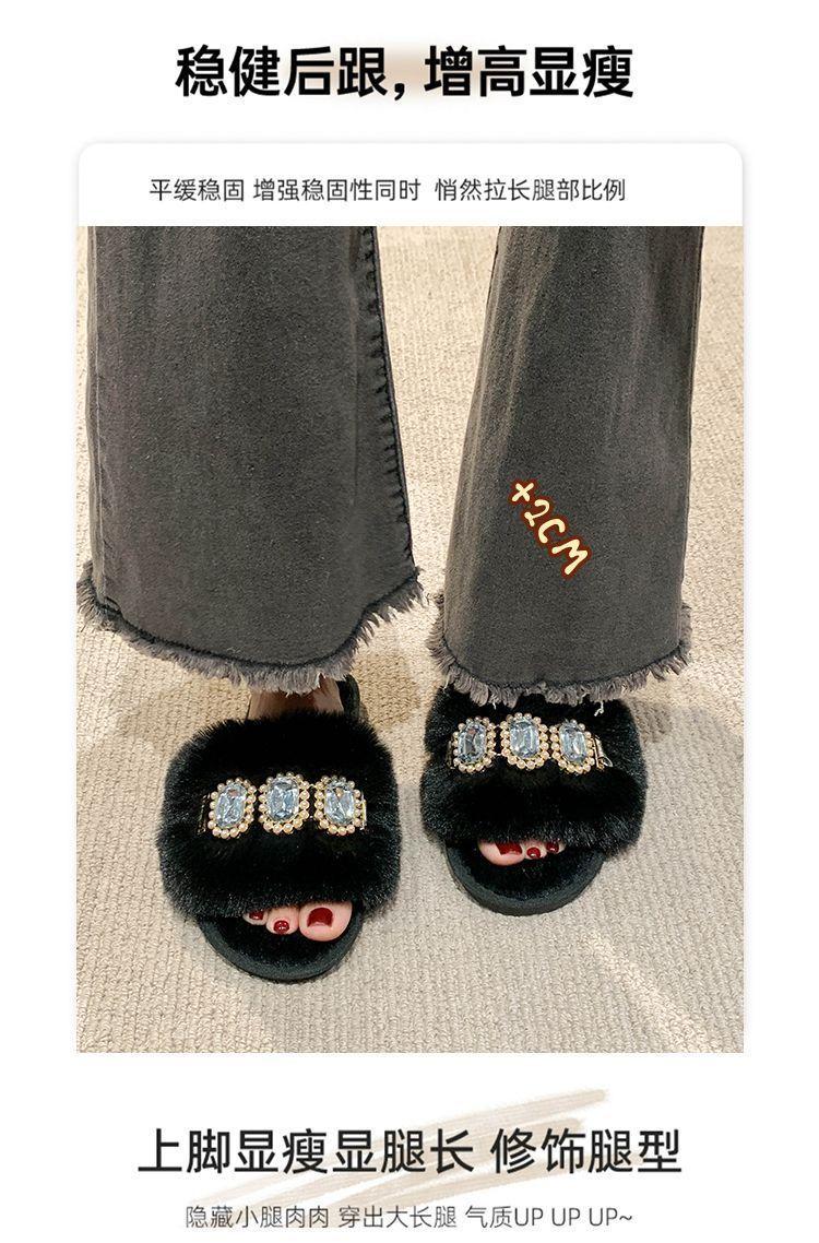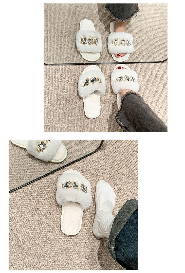 Pantuflas de Invierno para Mujer Estilo Coreano de Moda para Casa Piso Interior Antideslizantes Cálidas de Una Tira 2025 Otoño/Invierno Nuevas Pantuflas Peludas para Mujer