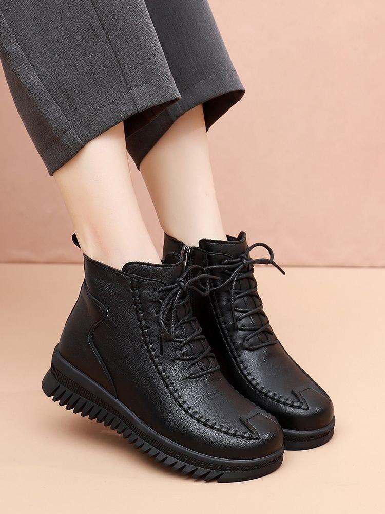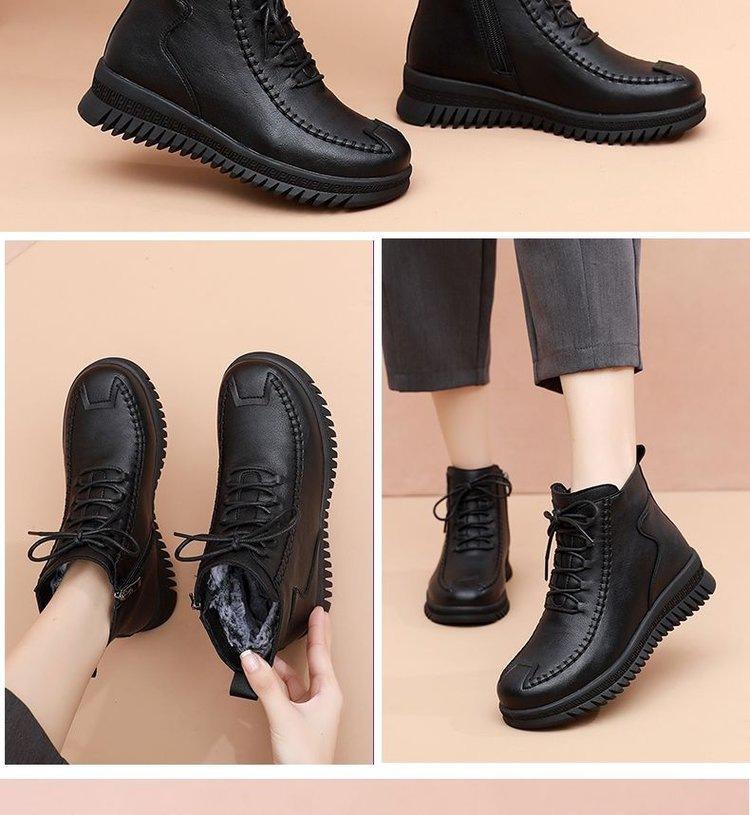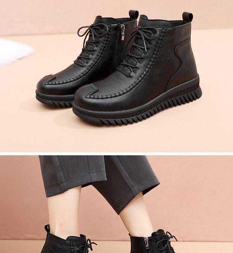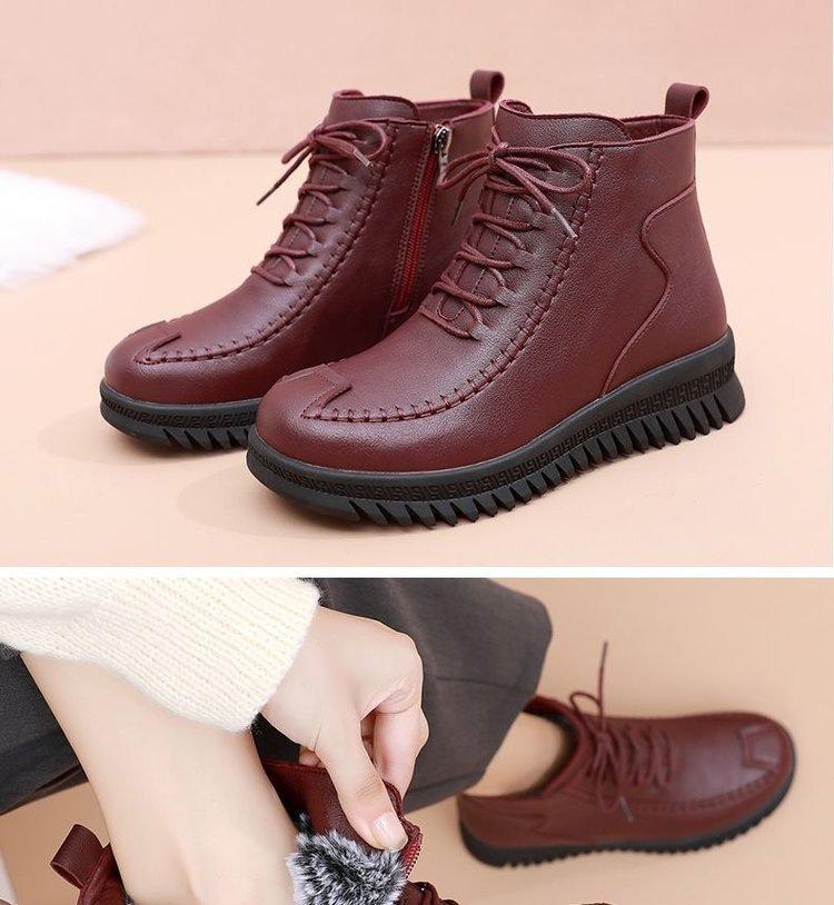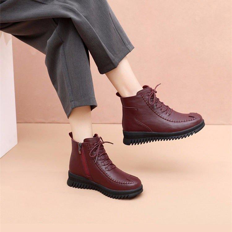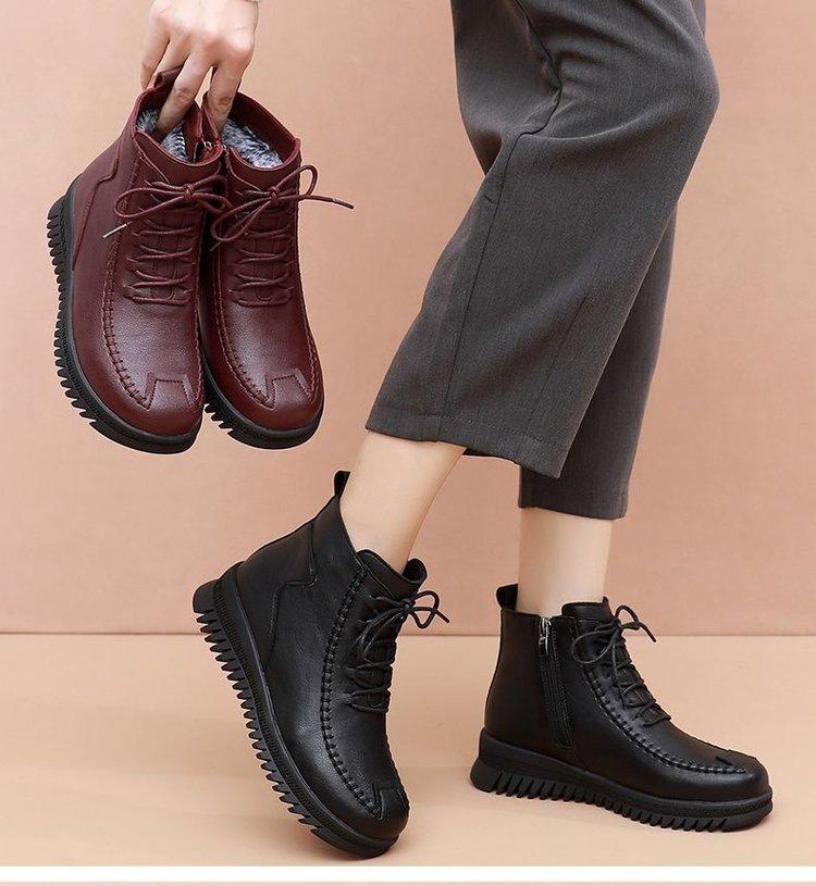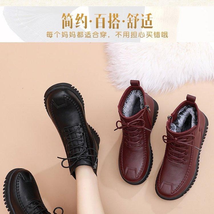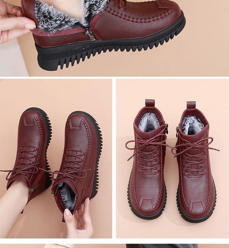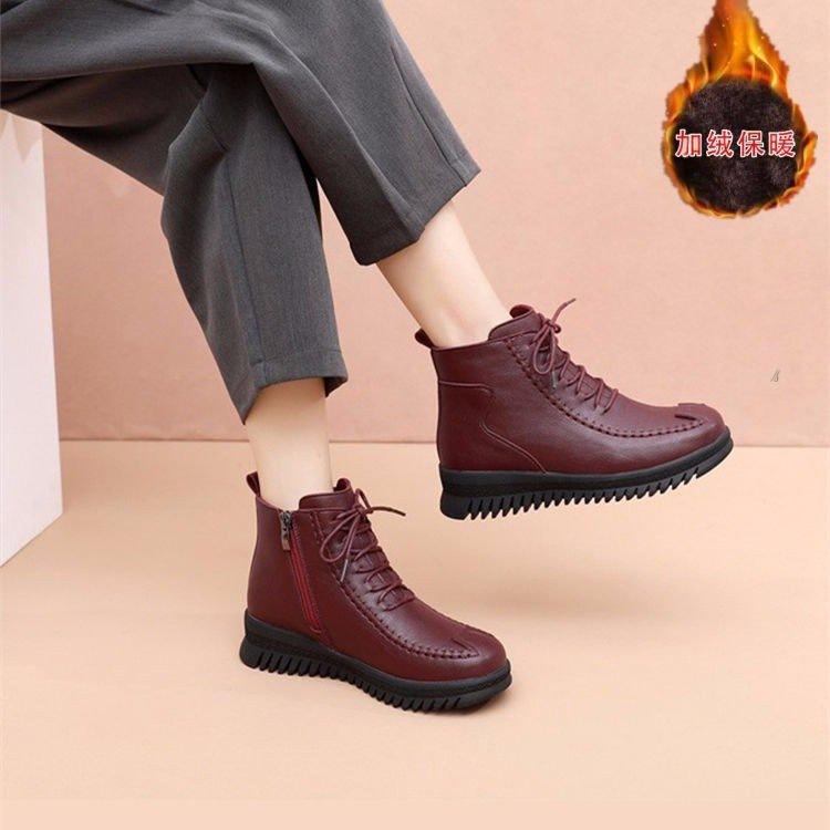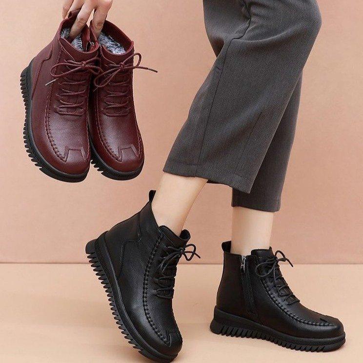 Botines cortos cálidos de terciopelo para mediana edad y ancianas, zapatos de algodón para madre de mujer, nuevos de invierno 2025, cuero suave con terciopelo grueso, antideslizantes, zapatos de mujer