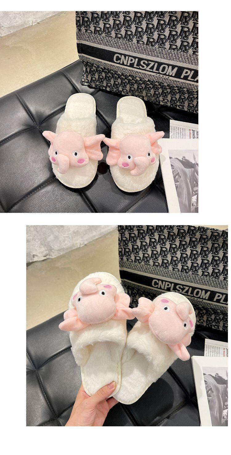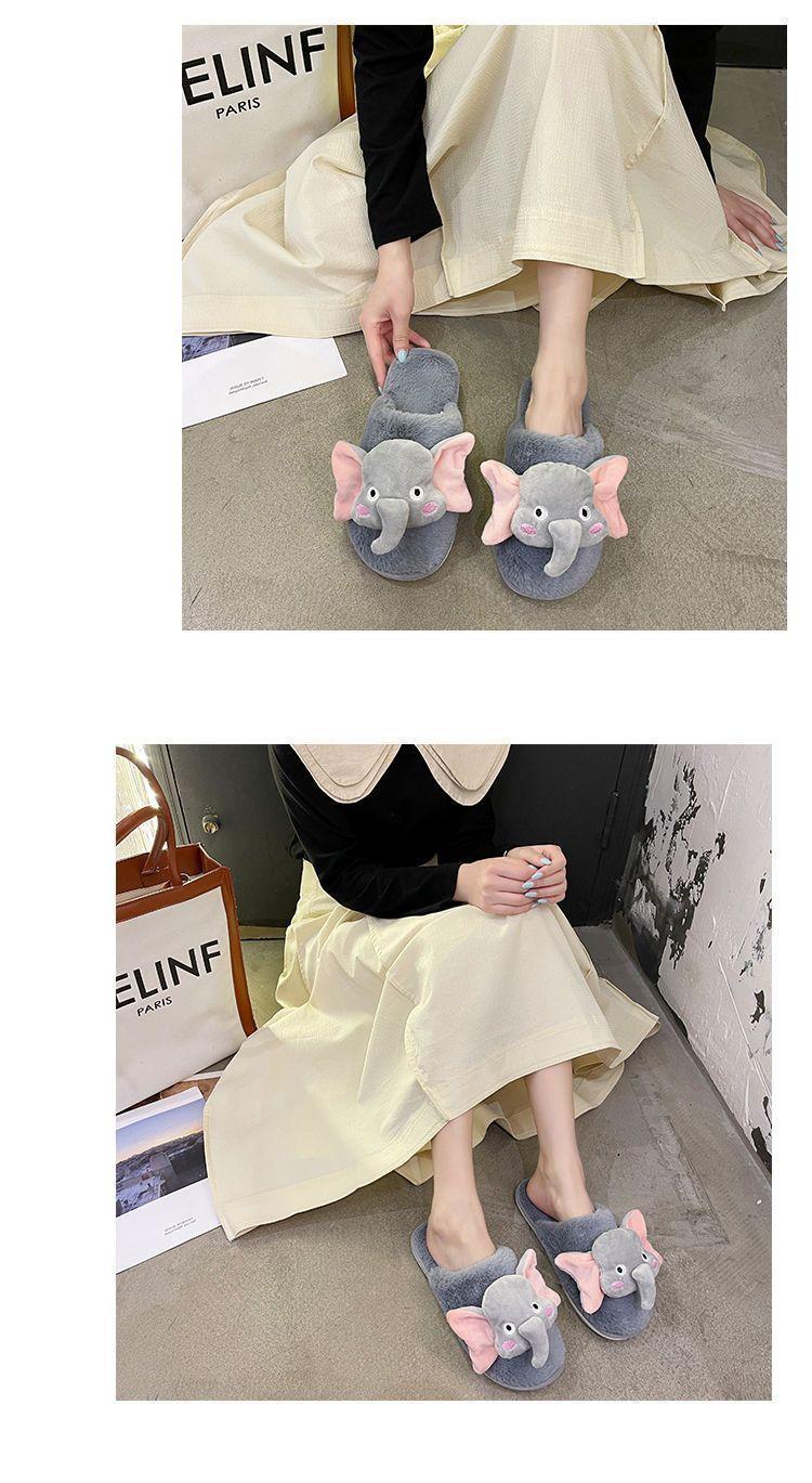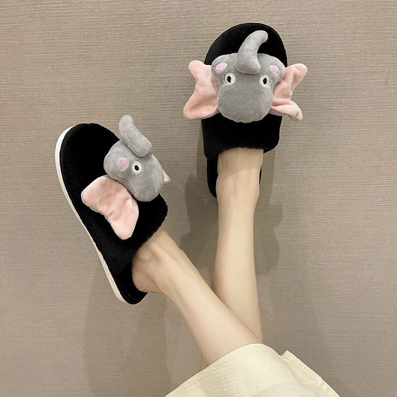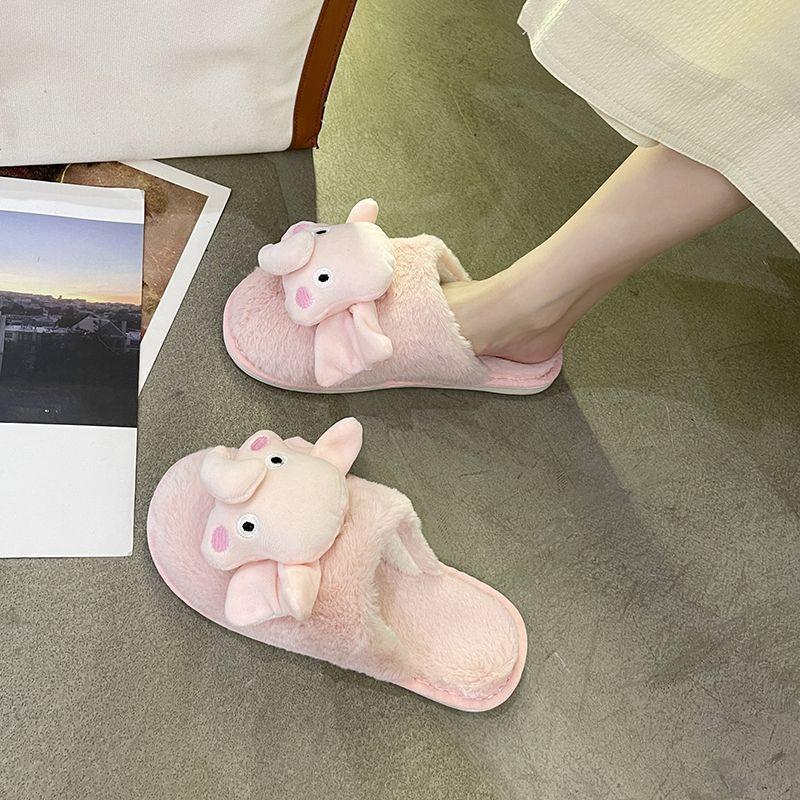 Pantuflas de Algodón Casuales Planas de Dibujos Animados Lindas Antideslizantes de Moda 2025 Invierno Nuevo Estilo Pantuflas Peludas de Punta Cerrada Mujeres
