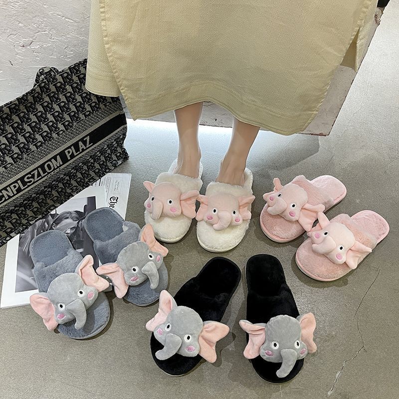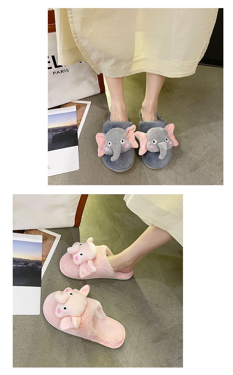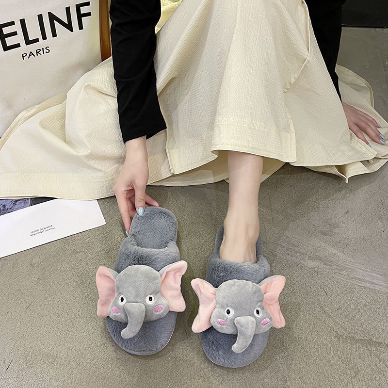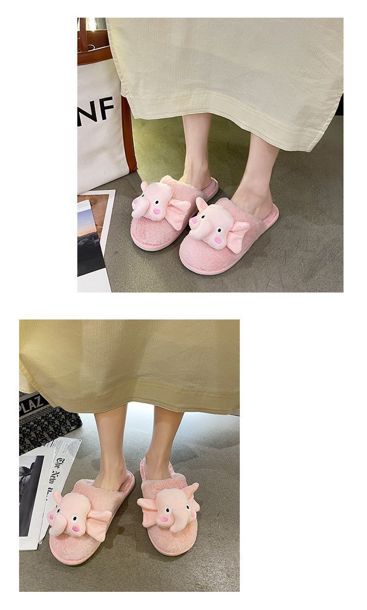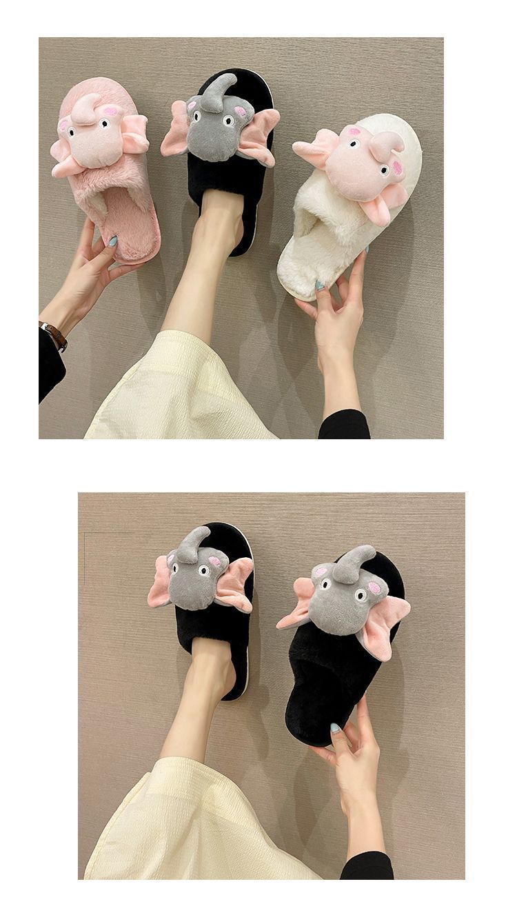 Pantuflas de Algodón Casuales Planas de Dibujos Animados Lindas Antideslizantes de Moda 2025 Invierno Nuevo Estilo Pantuflas Peludas de Punta Cerrada Mujeres