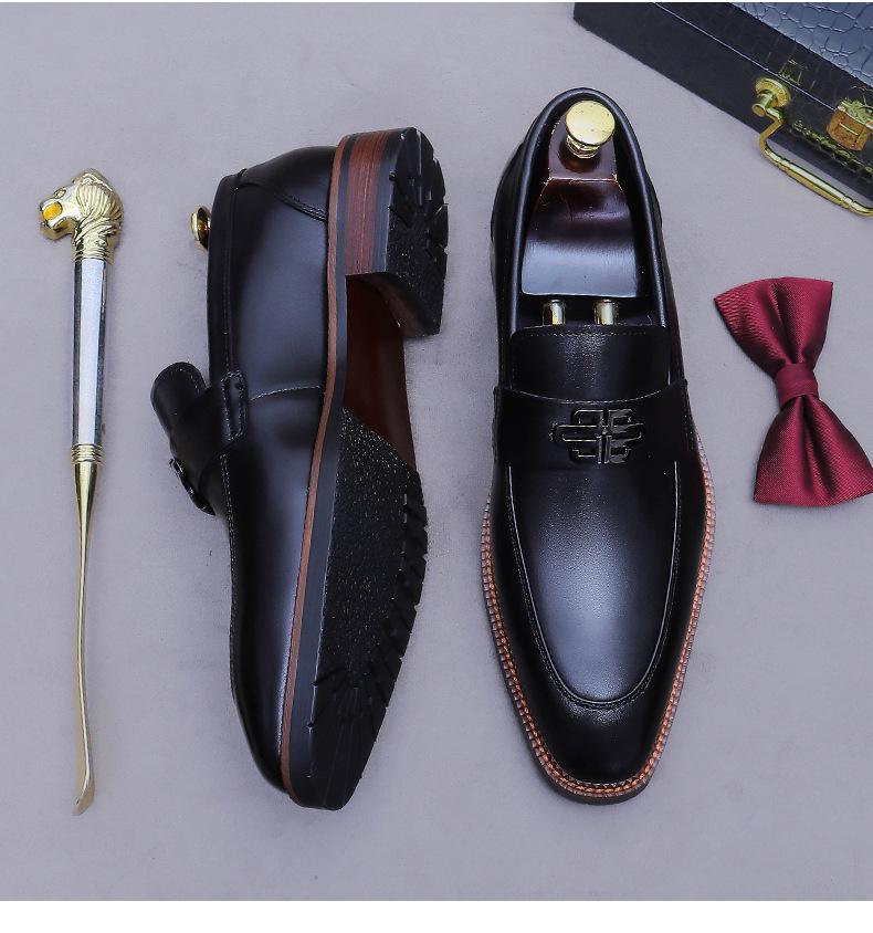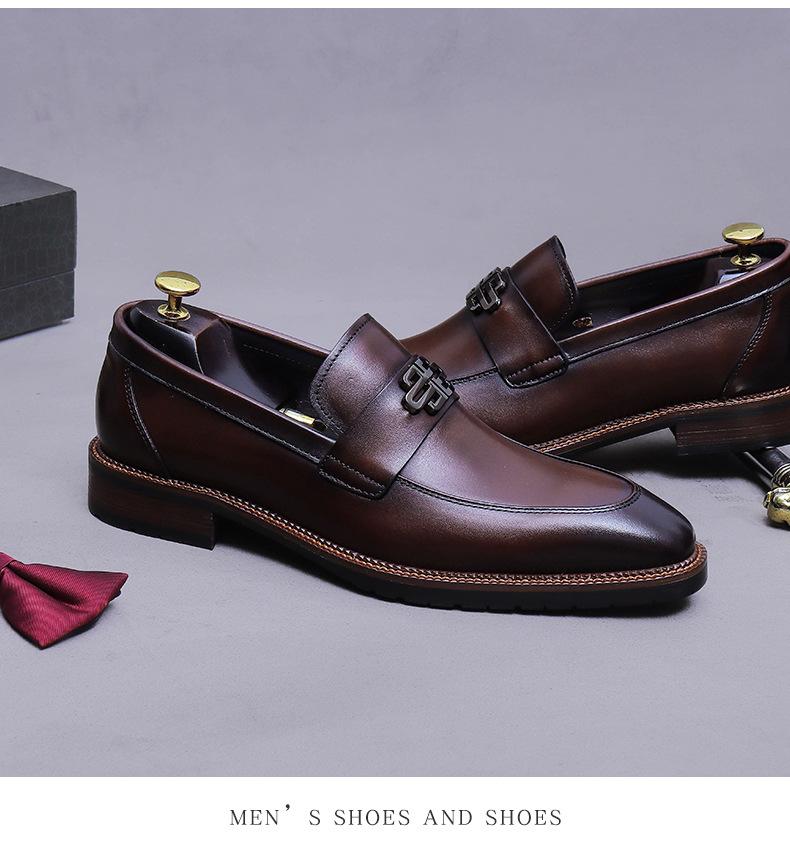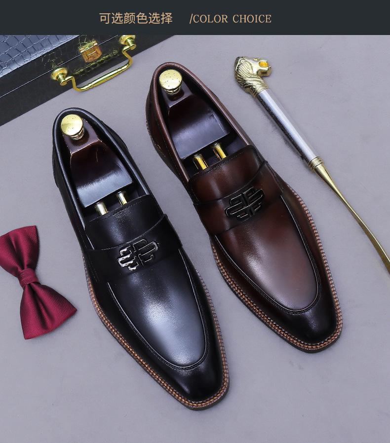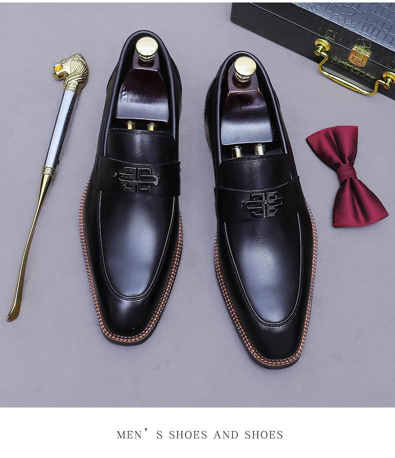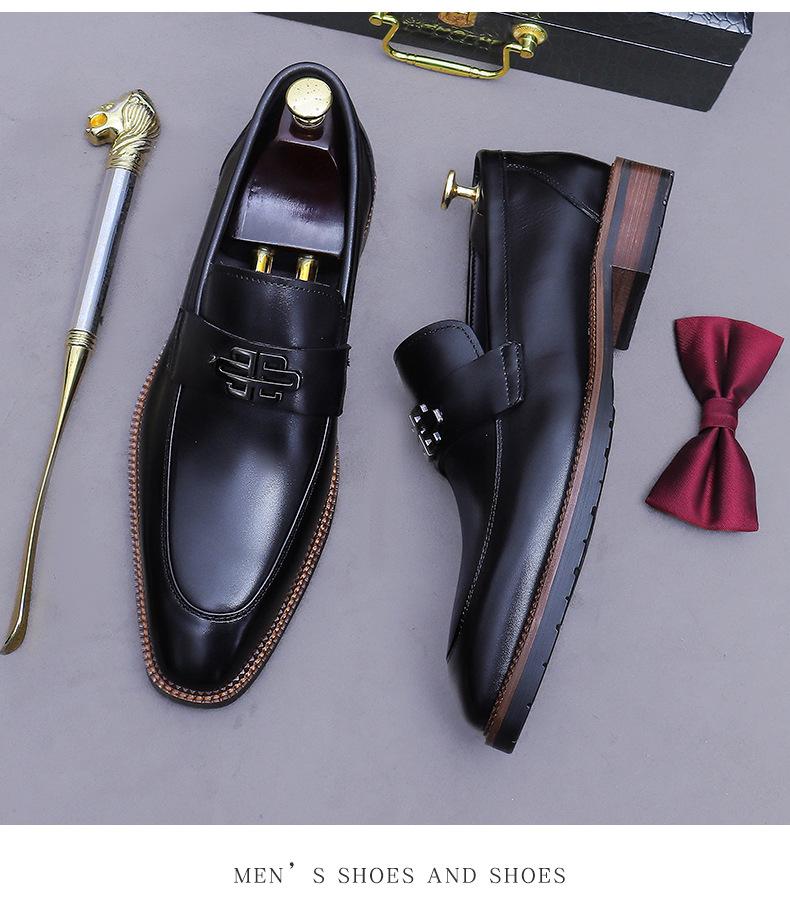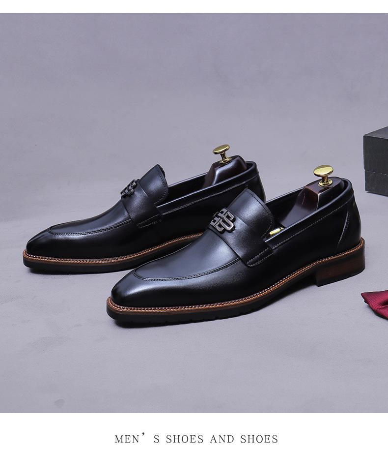 Zapatos de Cuero Casual Británico de Piel de Vacuno para Hombre Mocasines Coreanos de Negocios Formales Zapatos para Hombre Slip-on Zapatos de Cuero Slip-on Bruñidos para Hombre
