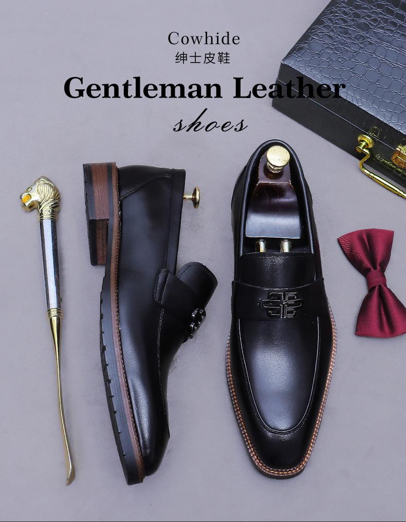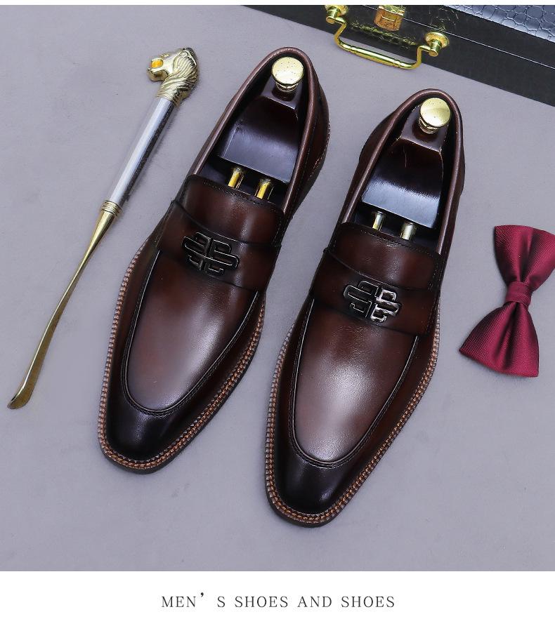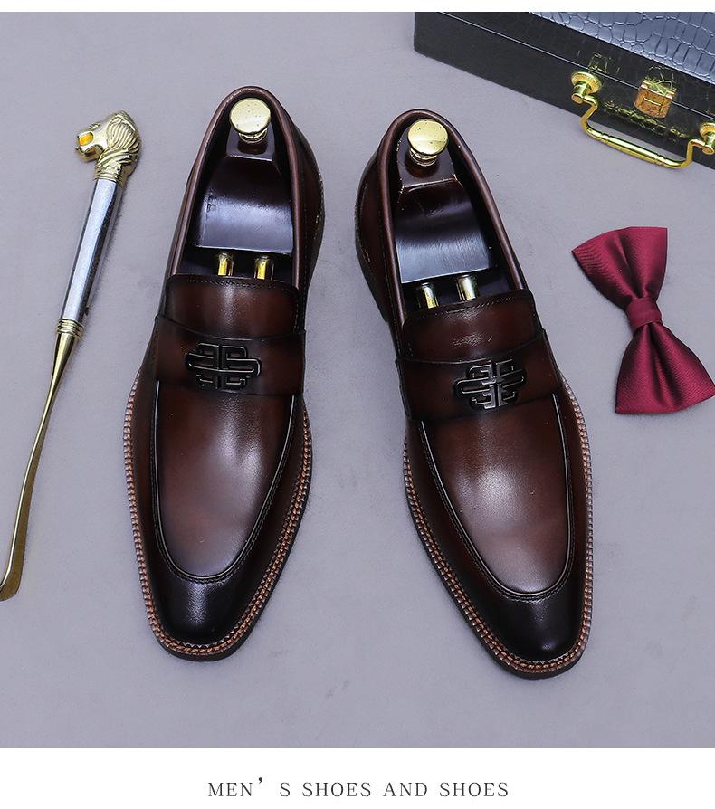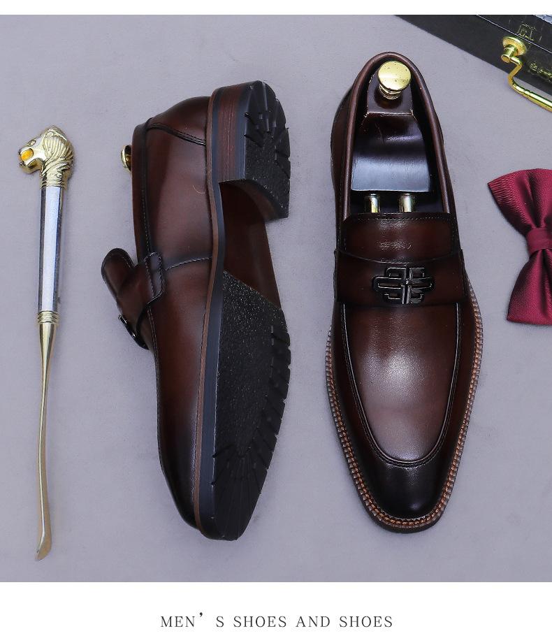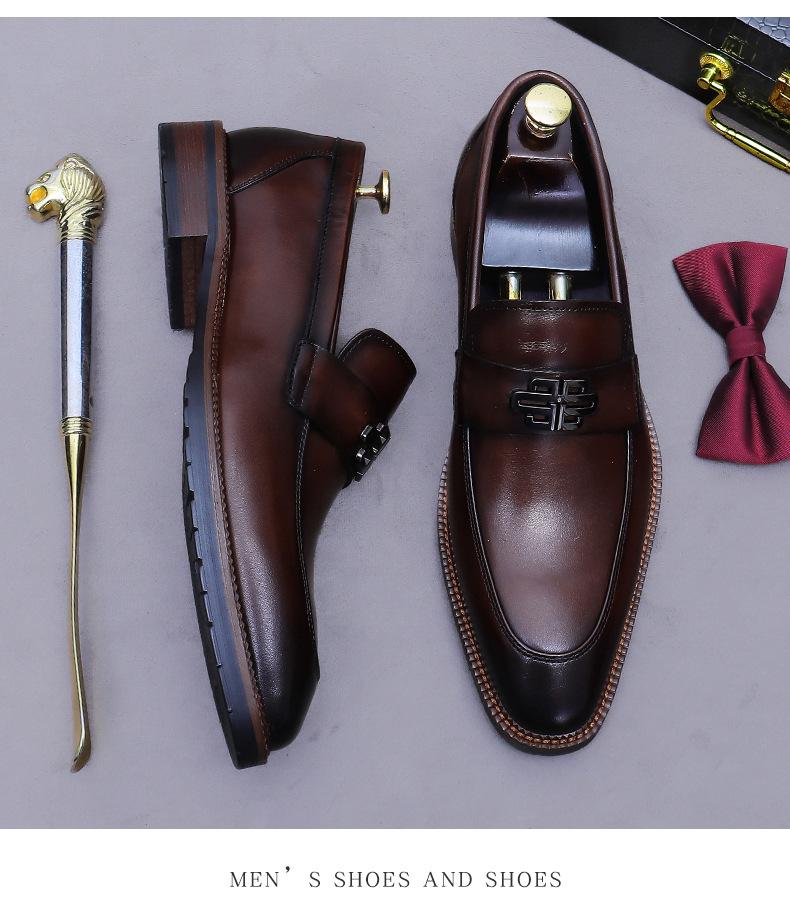 Zapatos de Cuero Casual Británico de Piel de Vacuno para Hombre Mocasines Coreanos de Negocios Formales Zapatos para Hombre Slip-on Zapatos de Cuero Slip-on Bruñidos para Hombre