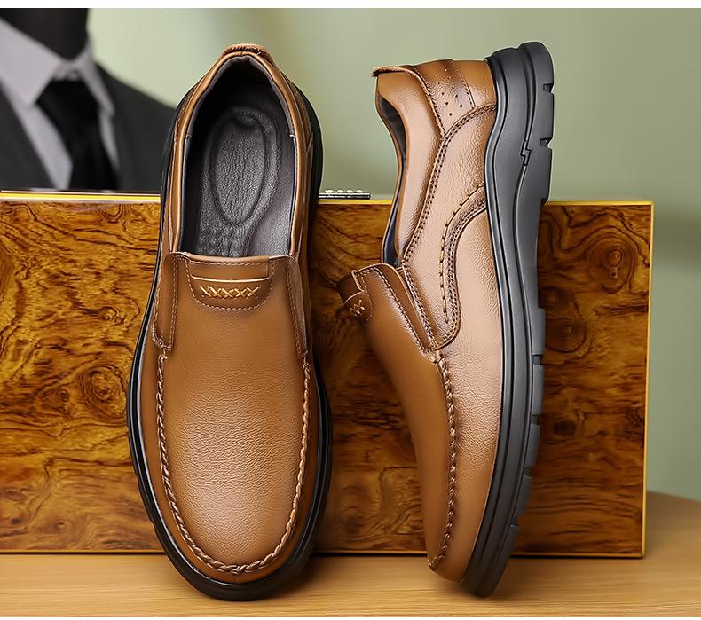 Zapatos de hombre de envío directo transfronterizo, zapatos de cuero casual de negocios para hombre, zapatos de papá antideslizantes de suela blanda para mediana edad y ancianos, zapatos tipo mocasín