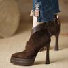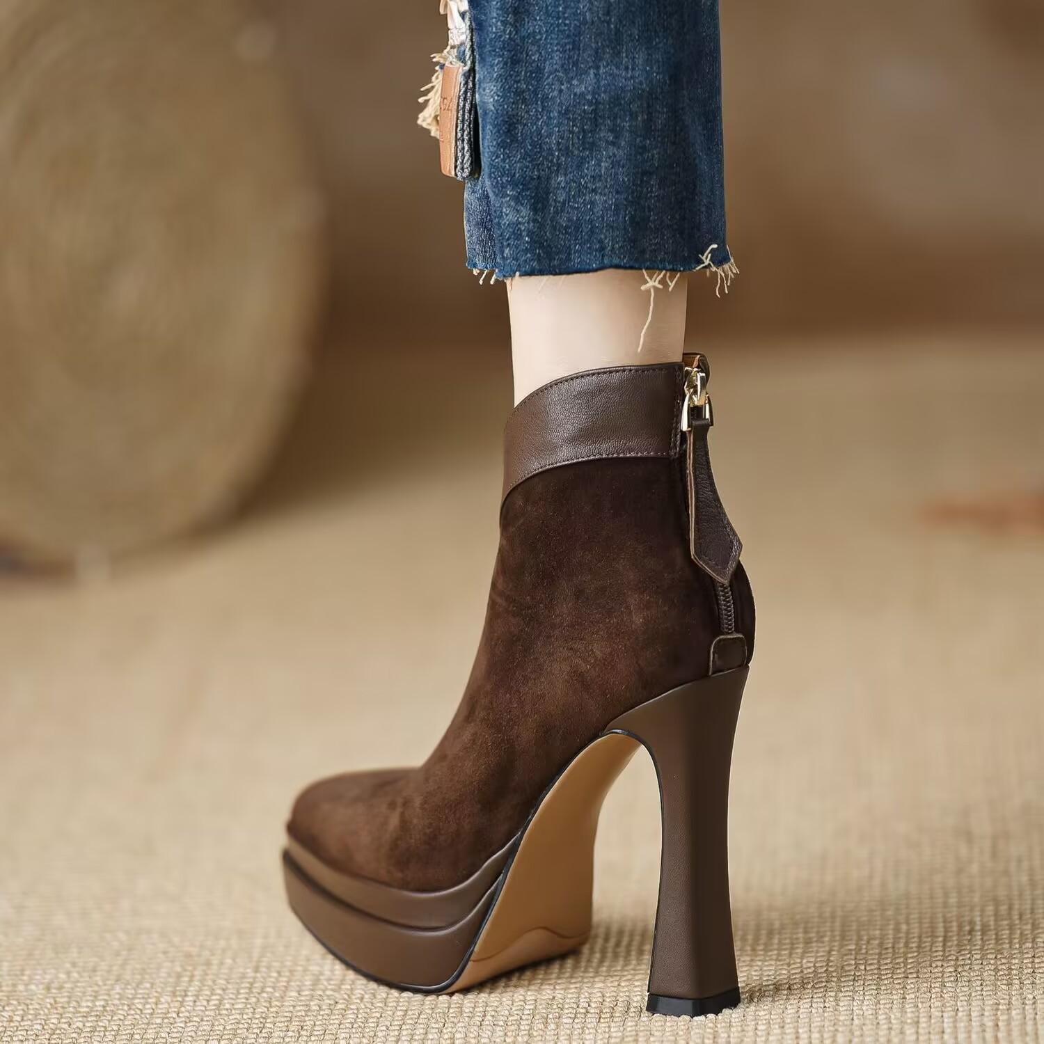 Otoño/Invierno 2025 Nuevas Botas de Moda Negras de Tacón Alto de Aguja Cómodas de Punta Fina con Plataforma y Cierre Trasero para Mujer