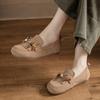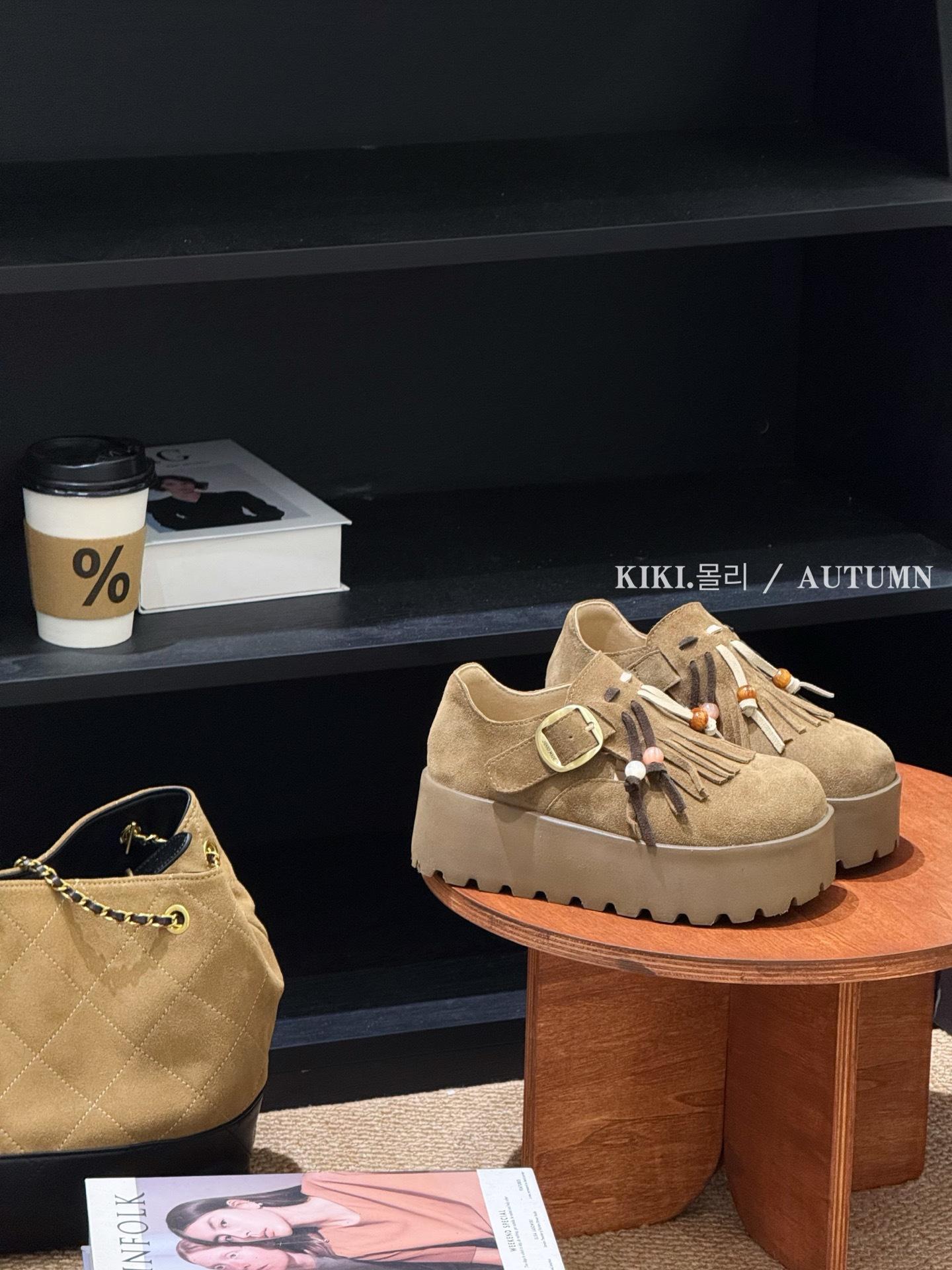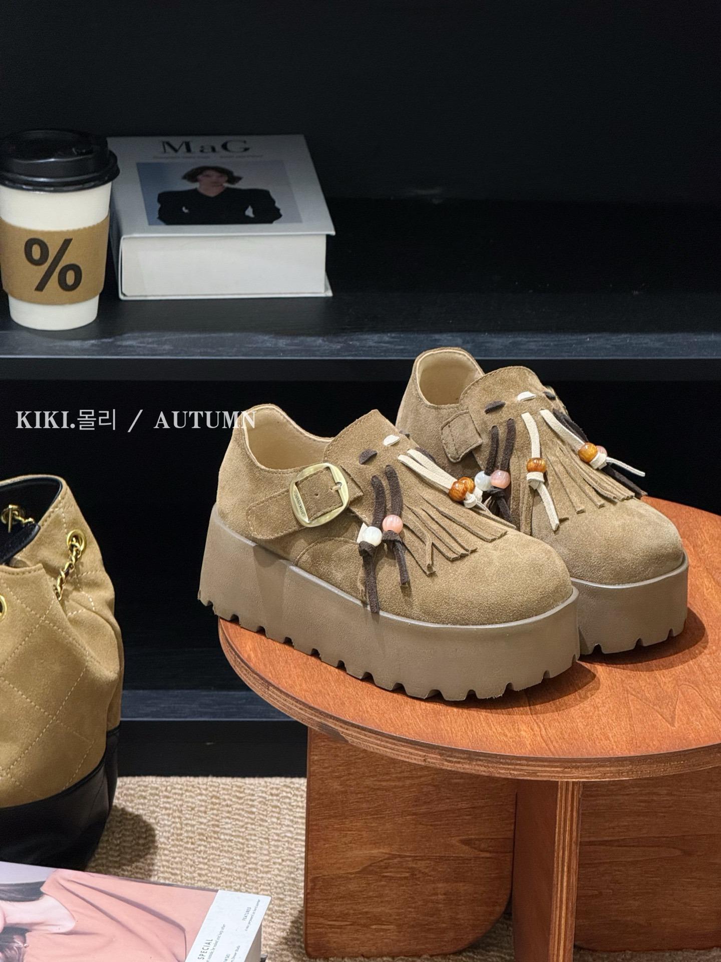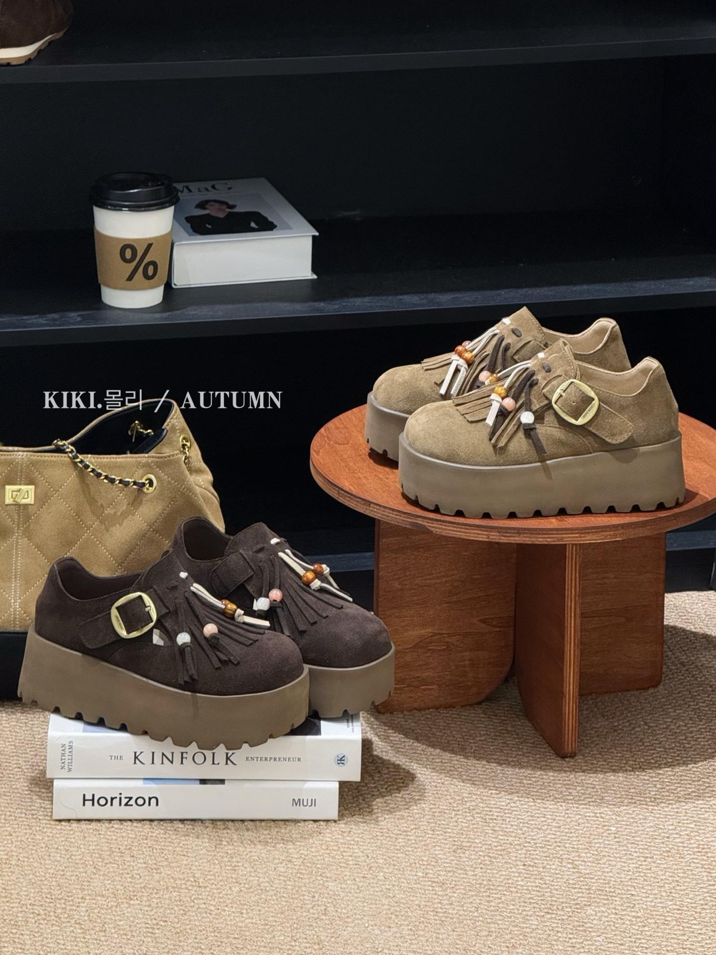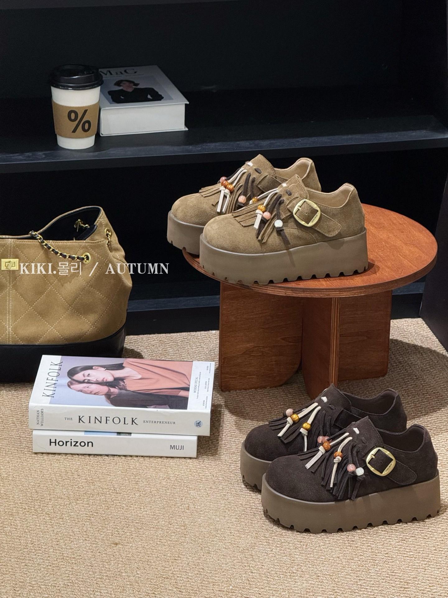 Mocasines de Otoño 2025 Birkenstock de Suela Gruesa para Mujer con Borlas Retro y Cuentas, Zapatos Únicos con Velcro