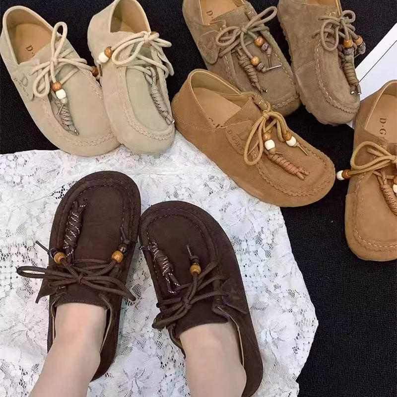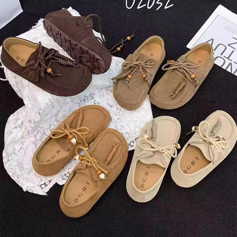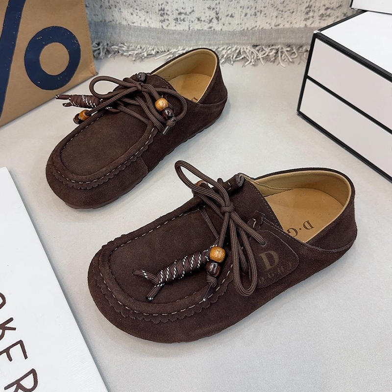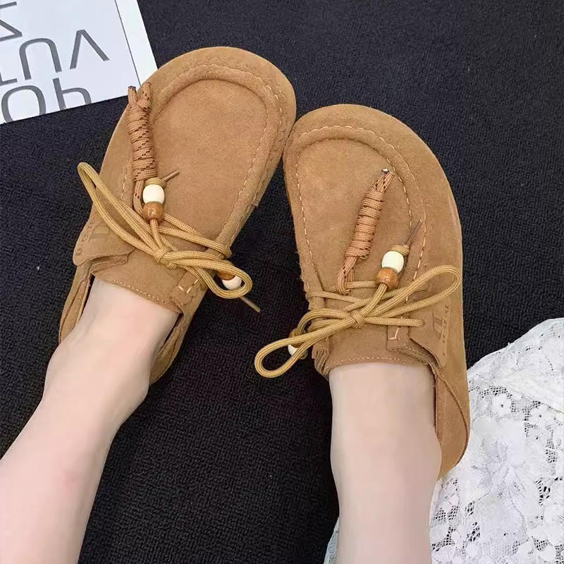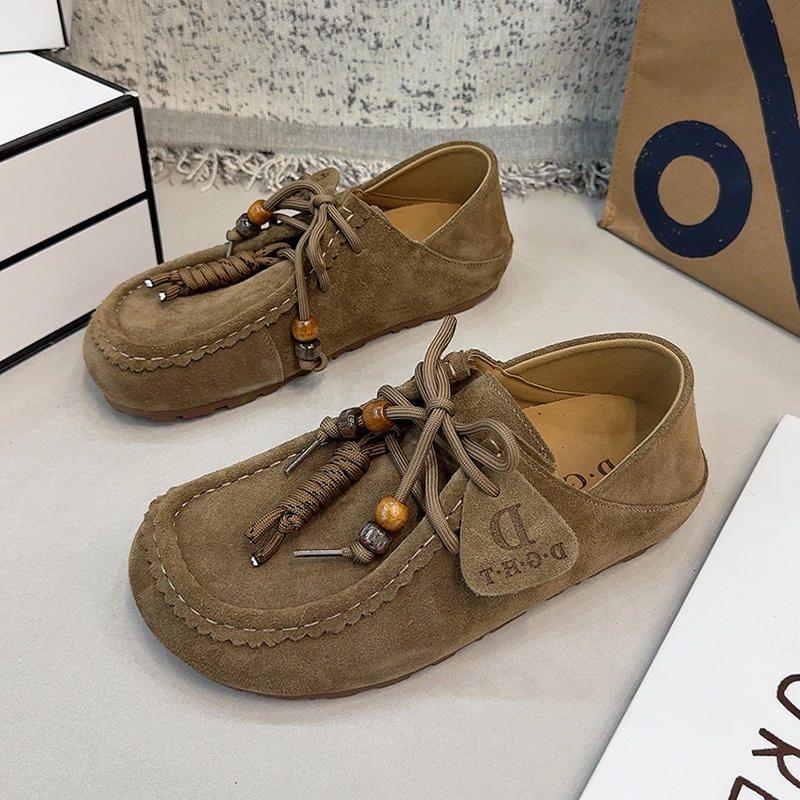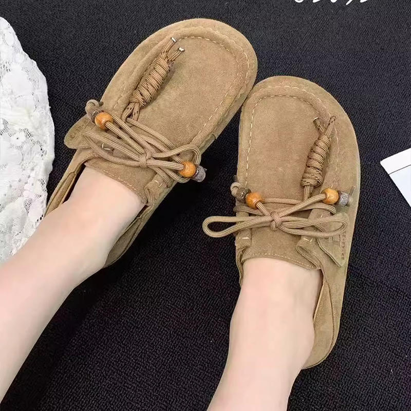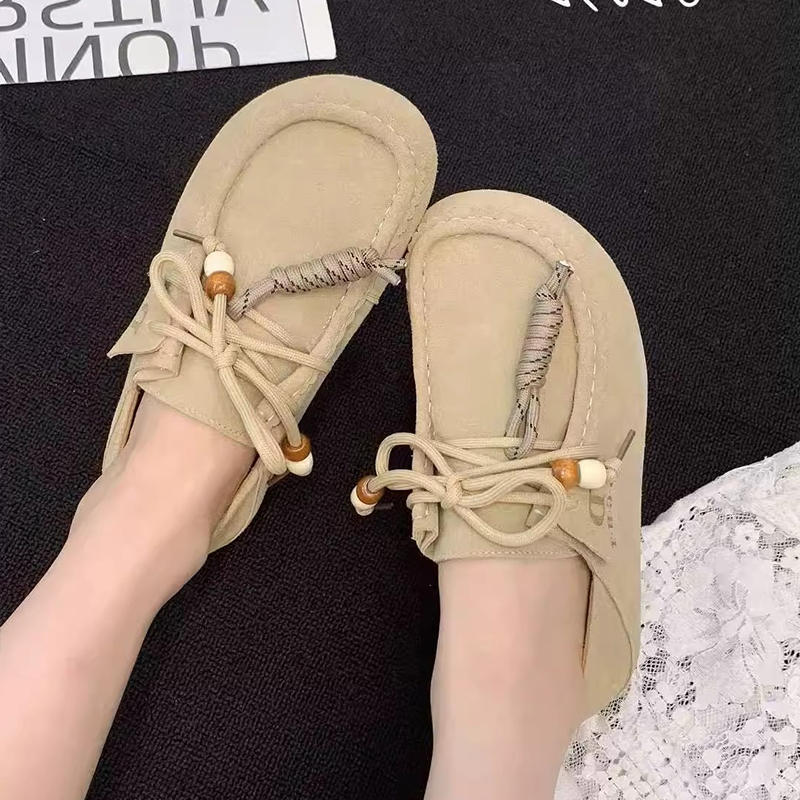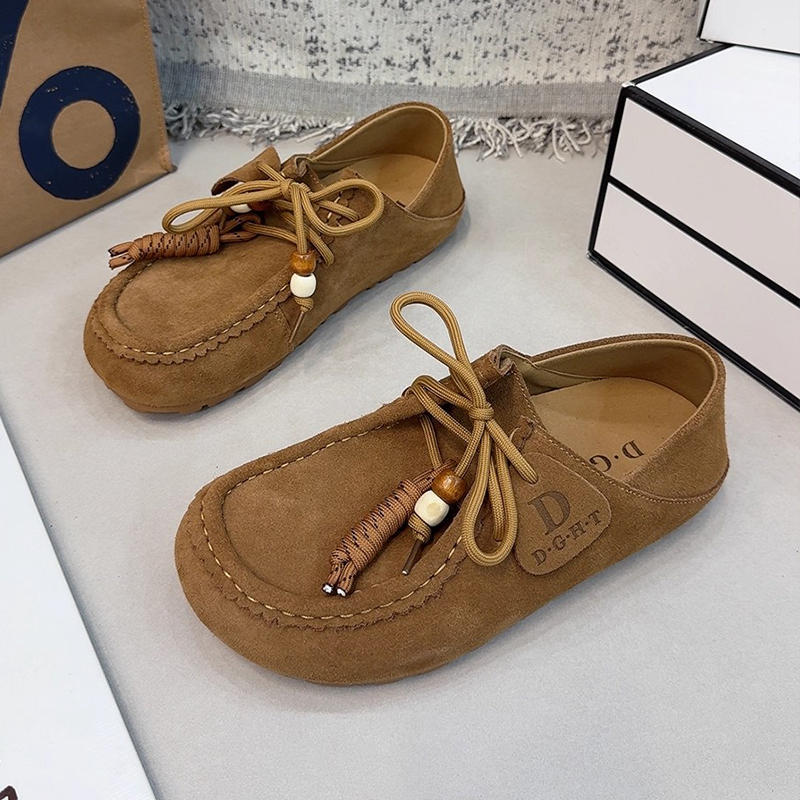 Zapatos planos Birkenstock sin cordones para mujer 2025 primavera y otoño nuevos mocasines y mocasines de suela blanda con borlas de cordones mate