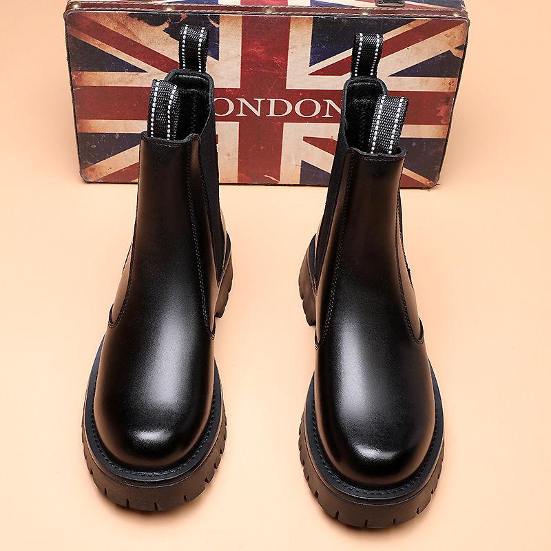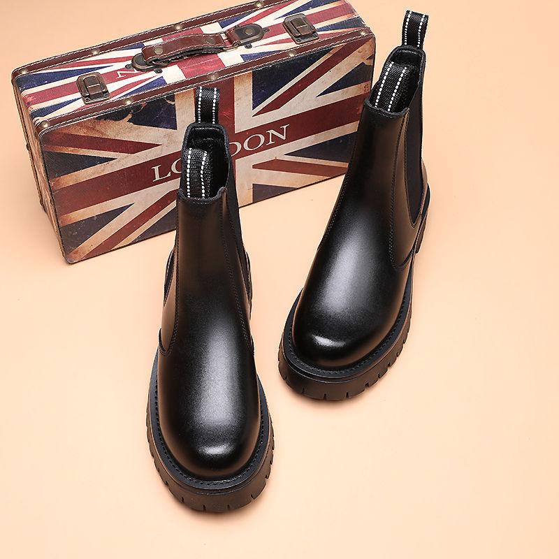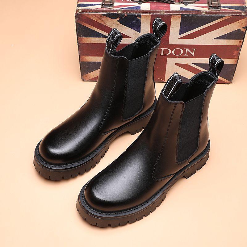 Botas Martin para hombre de caña media alta invierno estilo británico cuero genuino botas cortas botas de trabajo más terciopelo más grueso a la moda