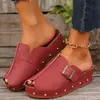 Hebilla de Cinturón de Moda Color Sólido de Una Línea Zapatos de Comercio Exterior Transfronterizos Europeos y Americanos Talla Grande Color Sólido Pantuflas de Plataforma Gruesa para Mujer Estilo Nuevo 2025