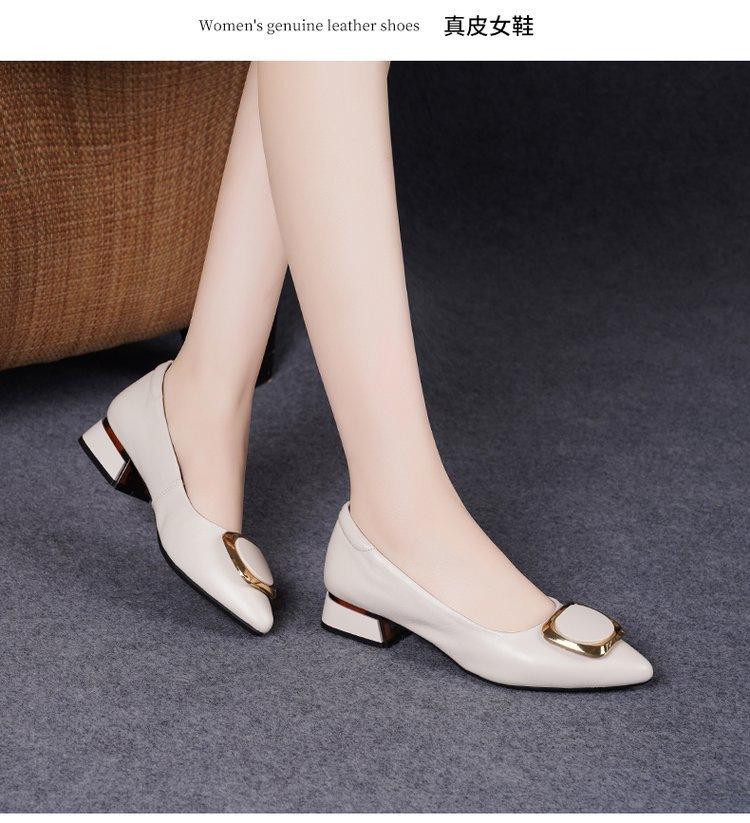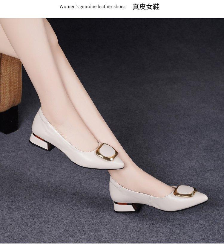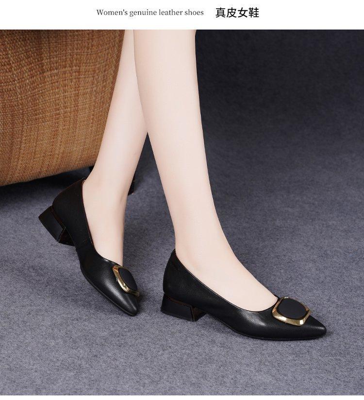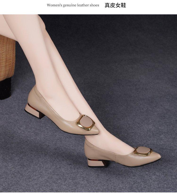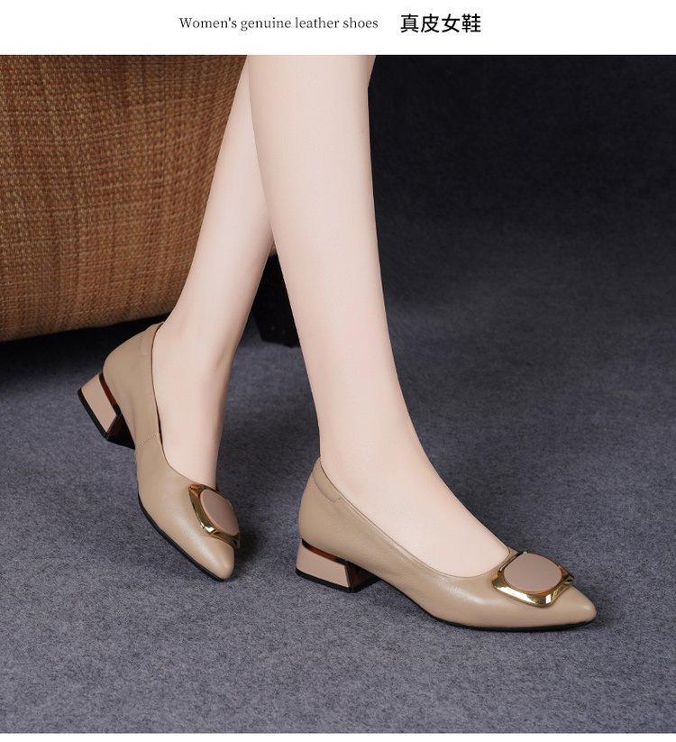 Zapatos Individuales de Cuero Suave Mujer 2025 Otoño Nuevos Punta Afilada Suela Suave Tacón Plano Corte Bajo Mocasines de Trabajo Zapatos de Cuero para Madre