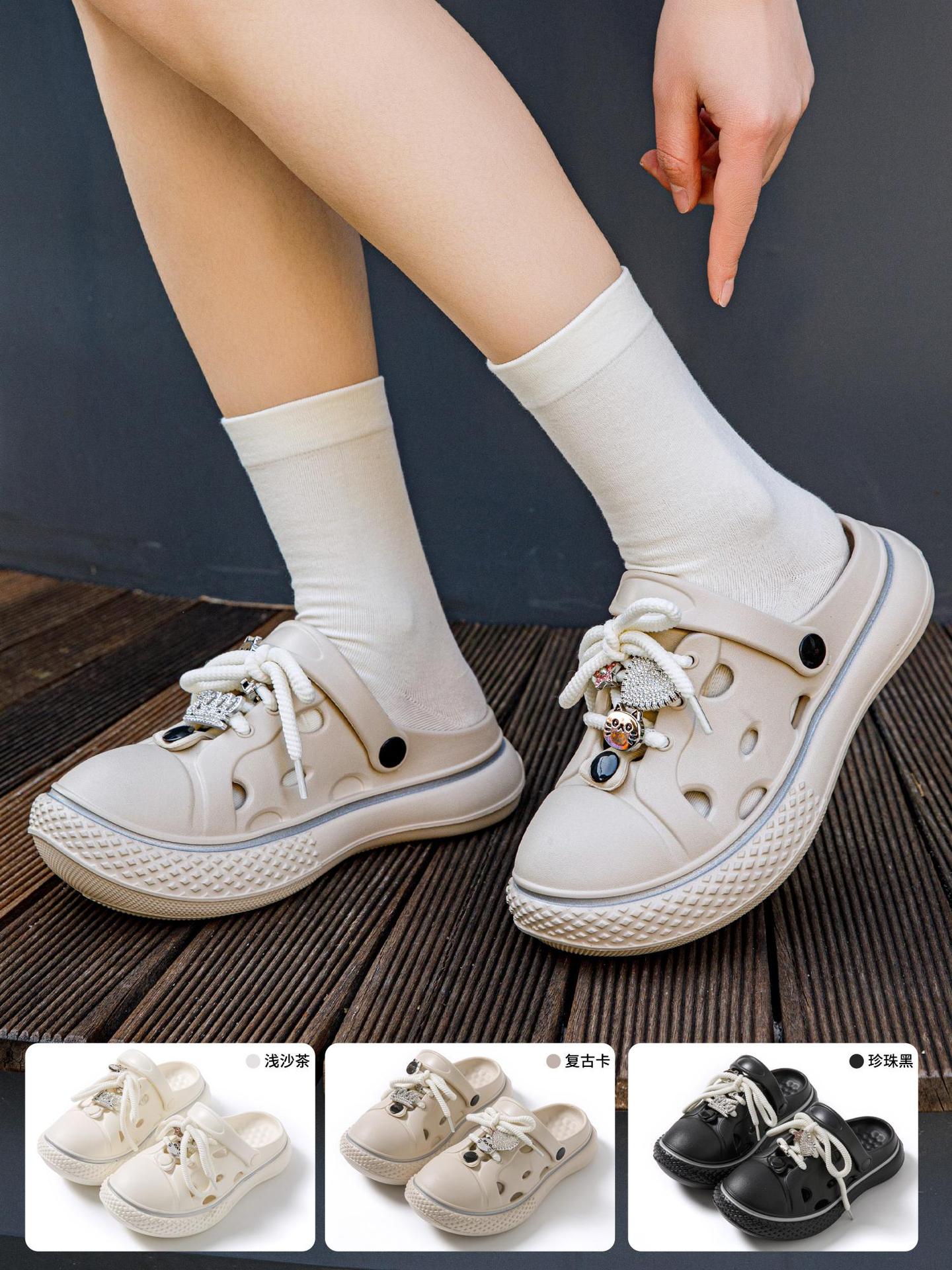 Primavera/Verano Nuevos Zapatos con Agujeros para Mujer Ropa de Exterior Sensación de Pisar Mierda Sandalias de Plataforma Antideslizantes de Punta Cerrada para Mujer