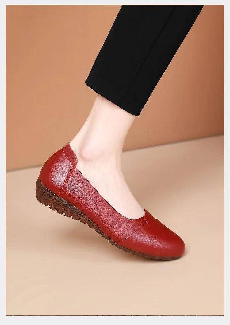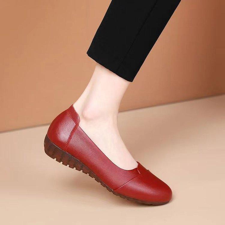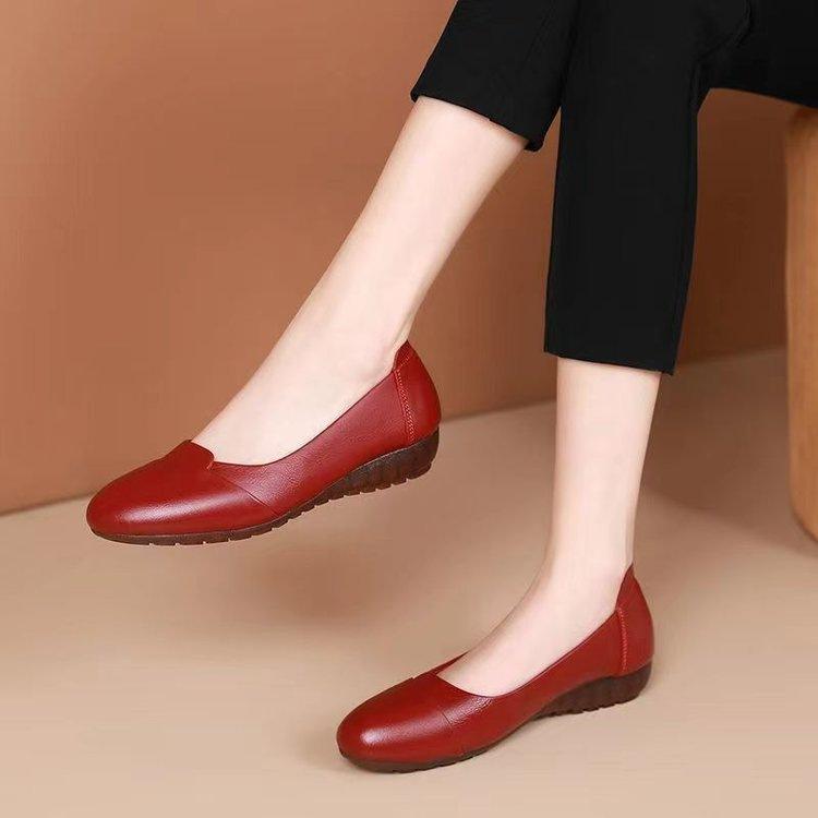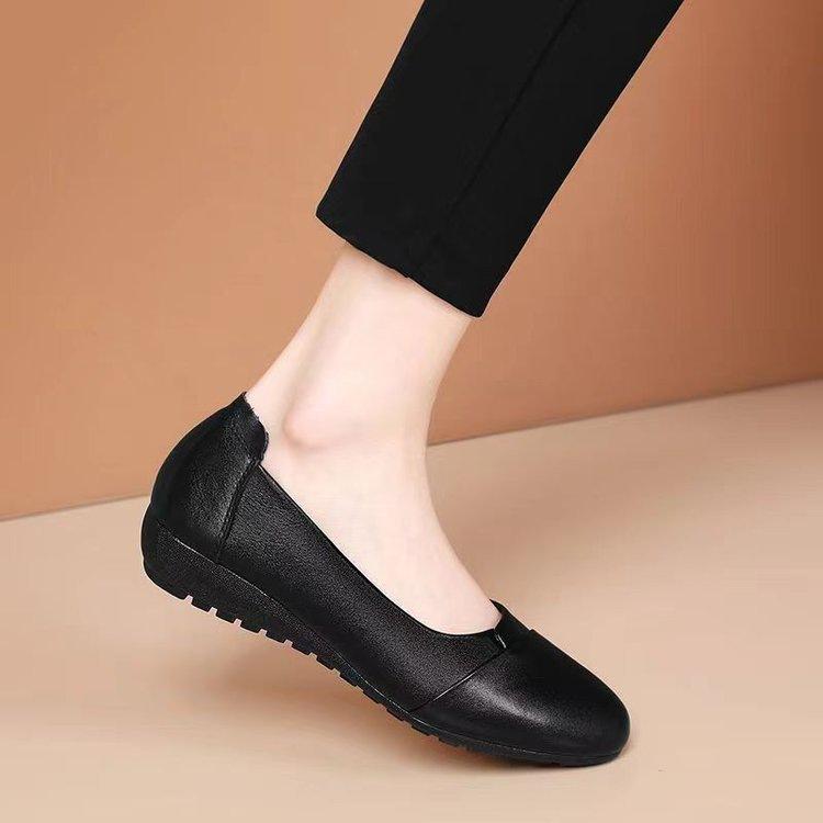 Zapatos de otoño para madre de mediana edad y anciana, zapatos de mujer de cuero suave, suela plana de tendón, zapatos individuales cómodos, zapatos de trabajo ligeros antideslizantes de suela suave para mujer