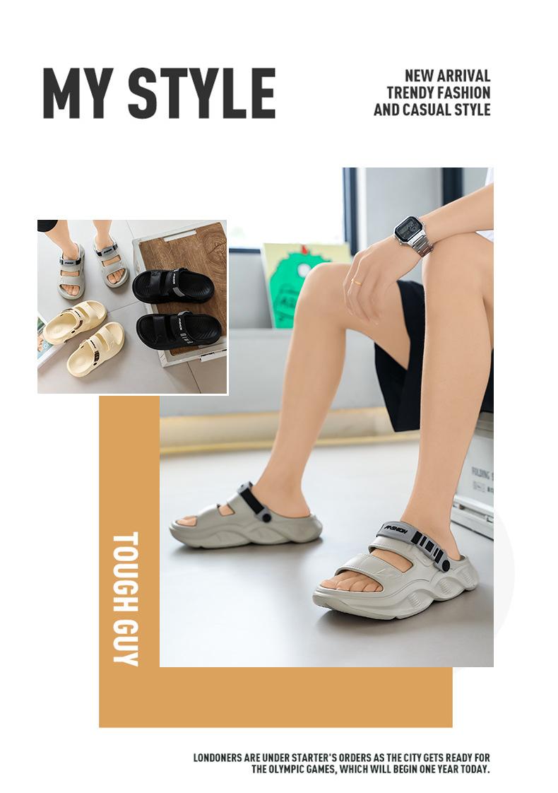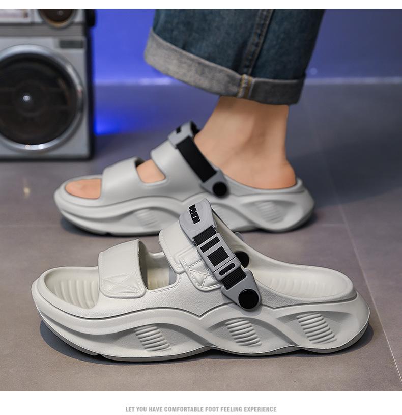 Pantuflas Nuevas para Hombre 2025 Verano Antideslizantes de Suela Gruesa Doble Uso Zapatos de Playa Casuales de Una Tira Sandalias Talla Grande Transfronterizas