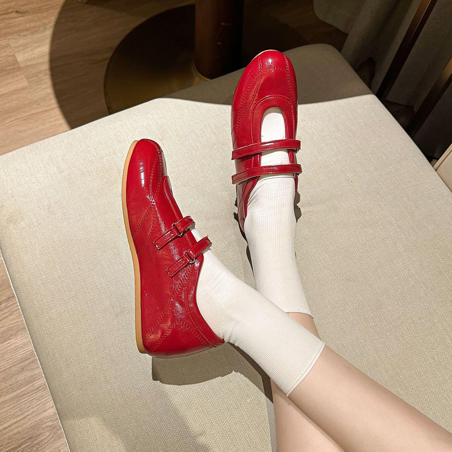 Zapatos casuales retro de corte bajo 2025 otoño nueva moda planos zapatos Mary Jane Velcro zapatos de mujer versátiles