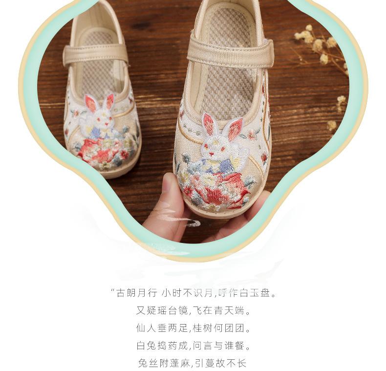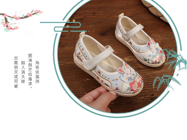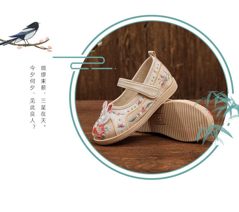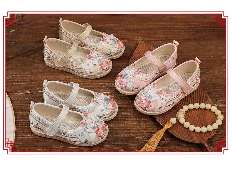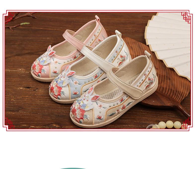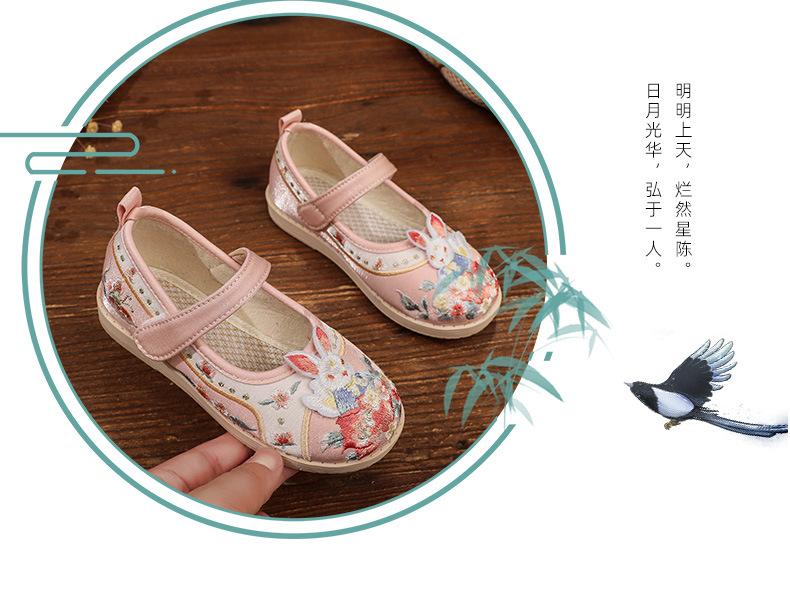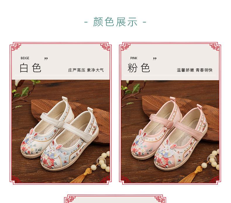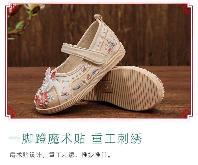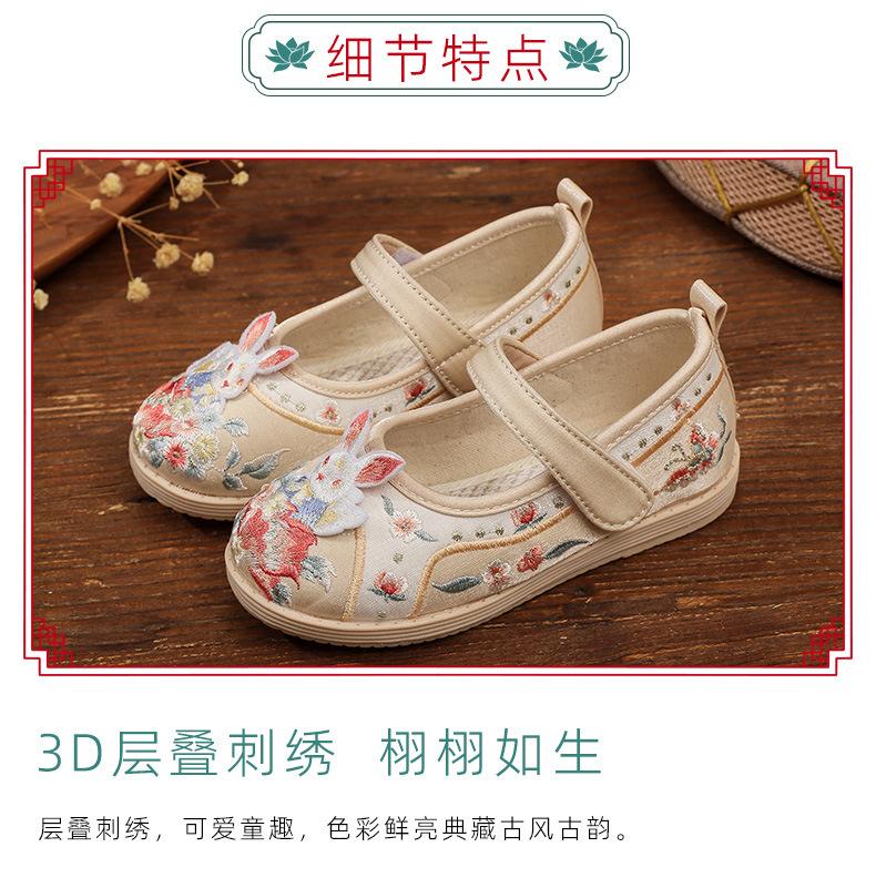 Zapatos Hanfu para Niñas Estilo Étnico Antiguo Zapatos Bordados para Niños Disfraz Zapatos de Tela Antiguos de Beijing Traje Tang de Princesa Falda Cara de Caballo Zapatos