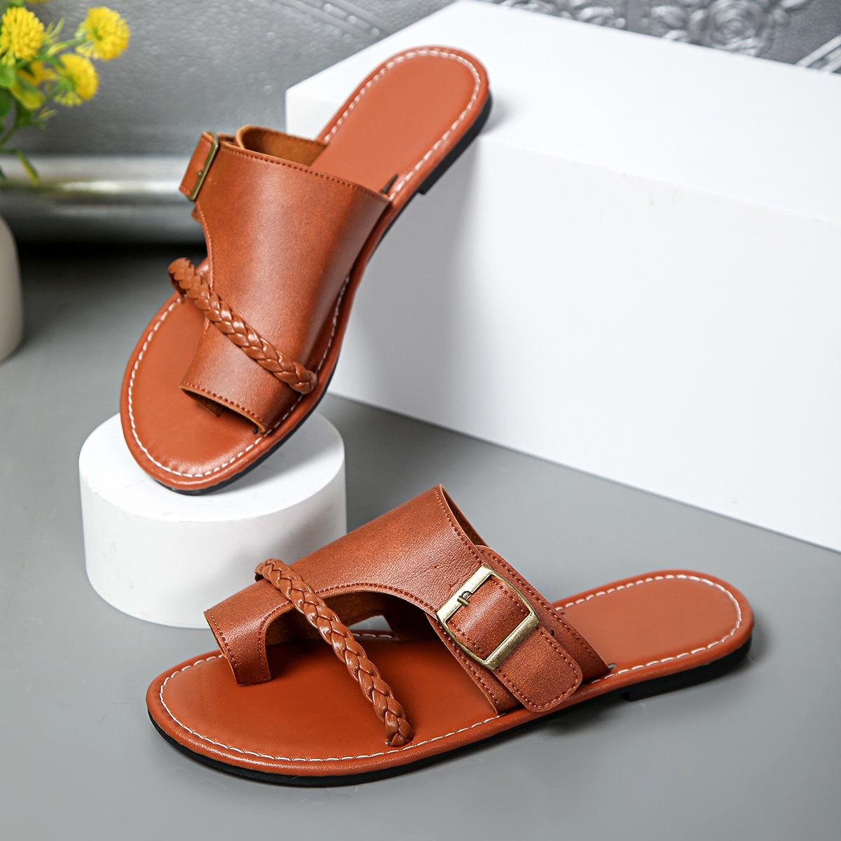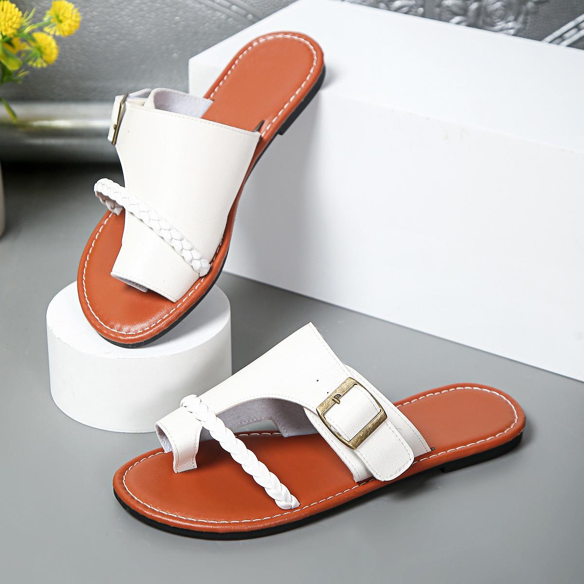 Pantuflas planas sin cordones de talla grande transfronterizas para mujer 2025 Primavera y Verano Nuevo Casual para Exterior Sandalias de playa para mujer al por mayor