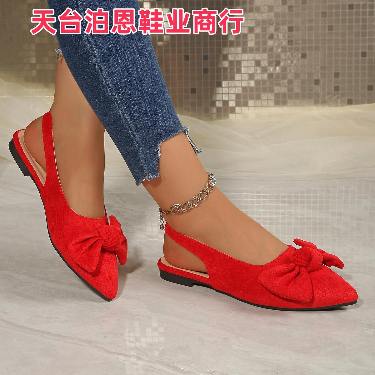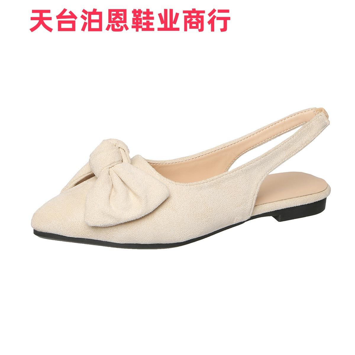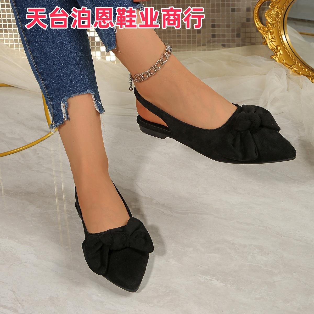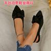 Verano 2025 Comercio Transfronterizo Nuevo Zapato de Punta para Mujer de Talla Grande Europeo y Americano Moño Plano Slip-on Sandalias de Mujer