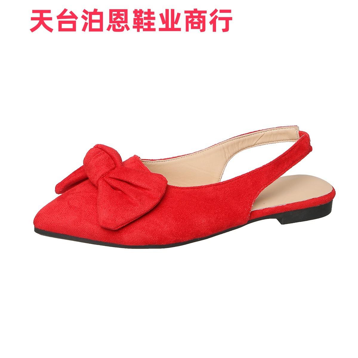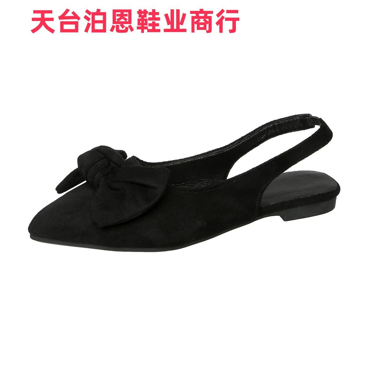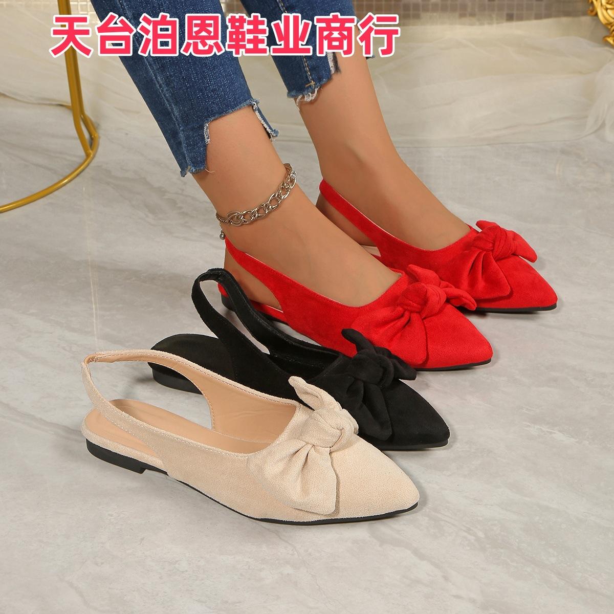 Verano 2025 Comercio Transfronterizo Nuevo Zapato de Punta para Mujer de Talla Grande Europeo y Americano Moño Plano Slip-on Sandalias de Mujer
