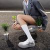 Zapatos Mary Jane Vintage de Suela Gruesa para Aumentar la Altura, Punta Redonda, Velcro, Boca Baja, Tenis Casuales para Mujer, Zapatos Blancos, Zapatos para Dedos Gordos