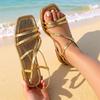 Sandalias Transfronterizas para Verano para Mujer 2025 Sandalias Cruzadas con Lazo de Suela Gruesa para Mujer Blanco Roto Negro Universal