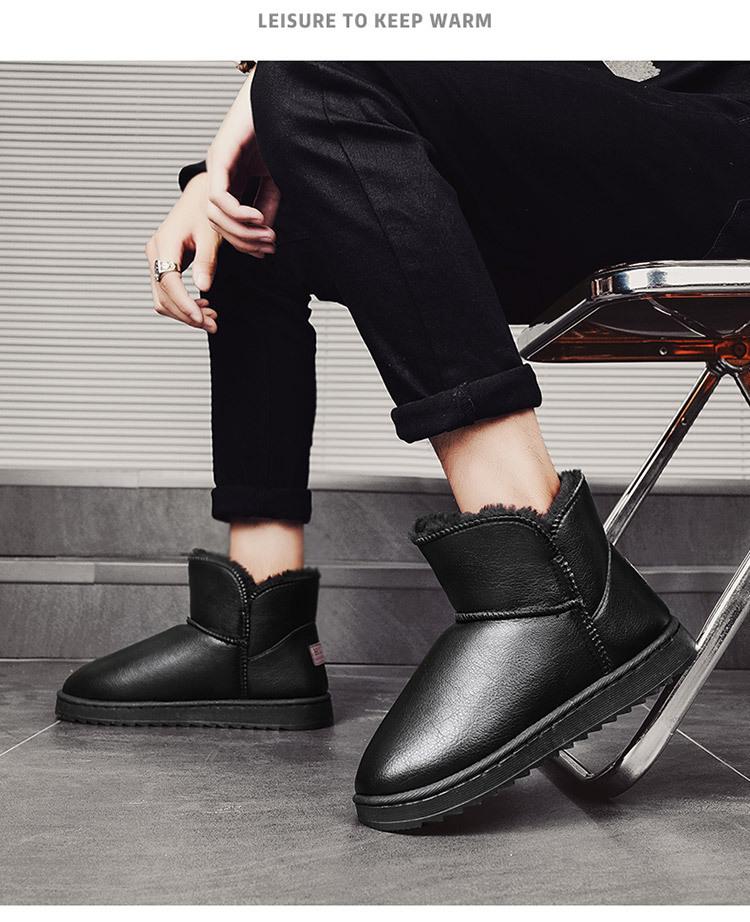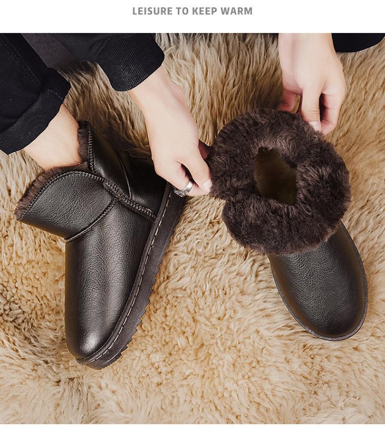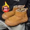 Botas de nieve de invierno para hombre 2025 nuevo estilo forradas de piel cálidas más terciopelo engrosado superficie de cuero impermeables casuales deportivas zapatos de algodón