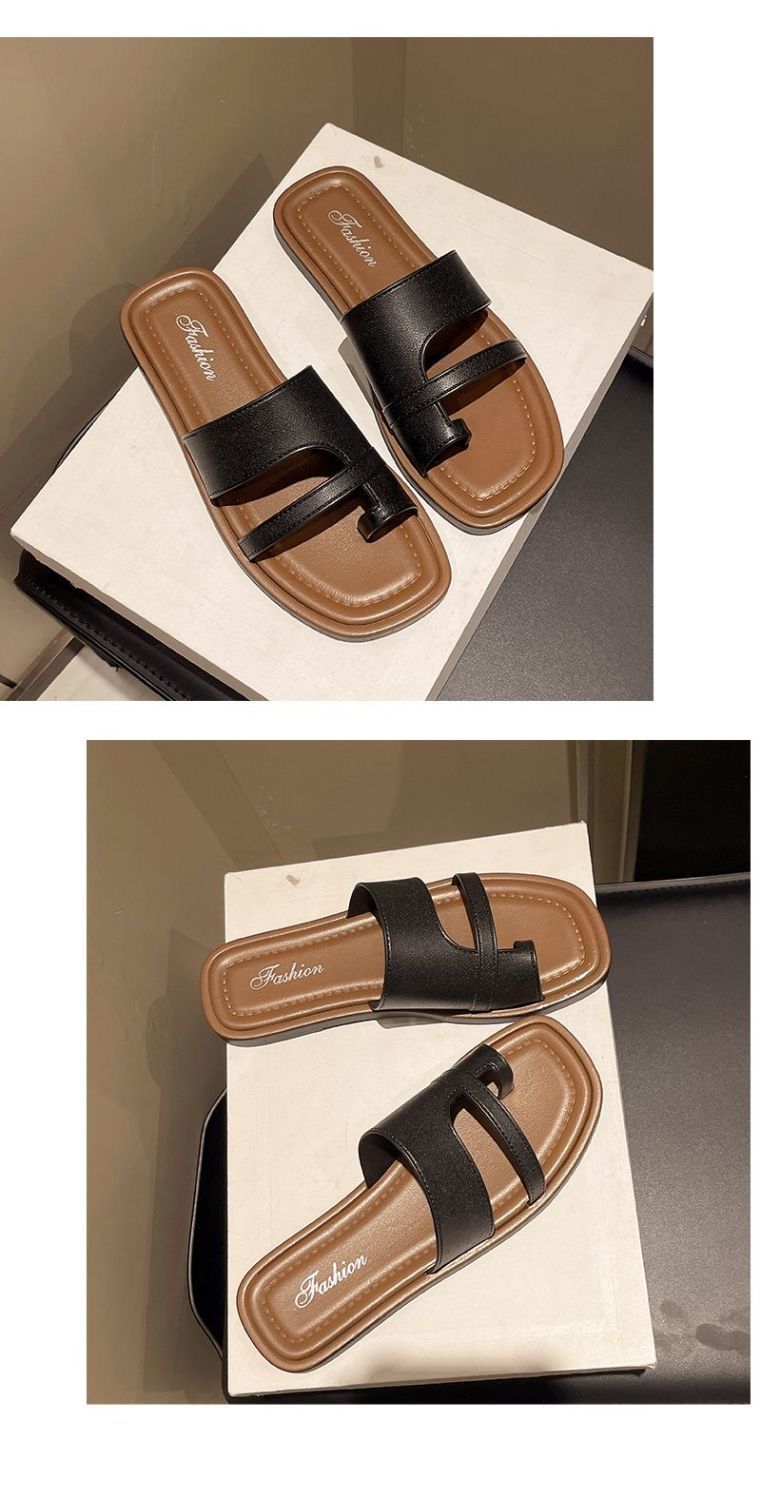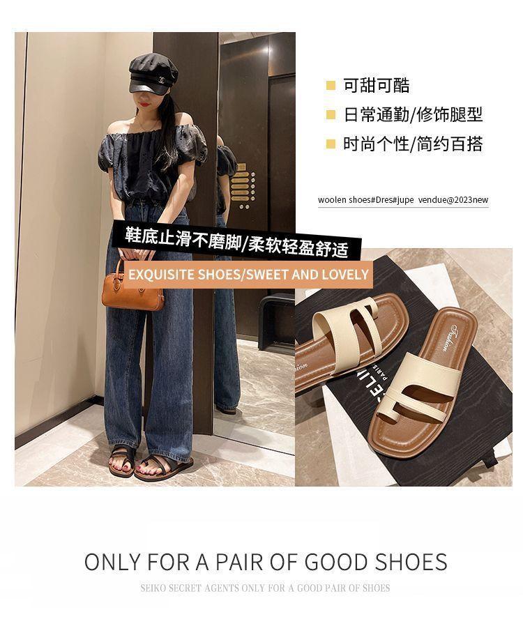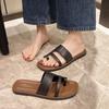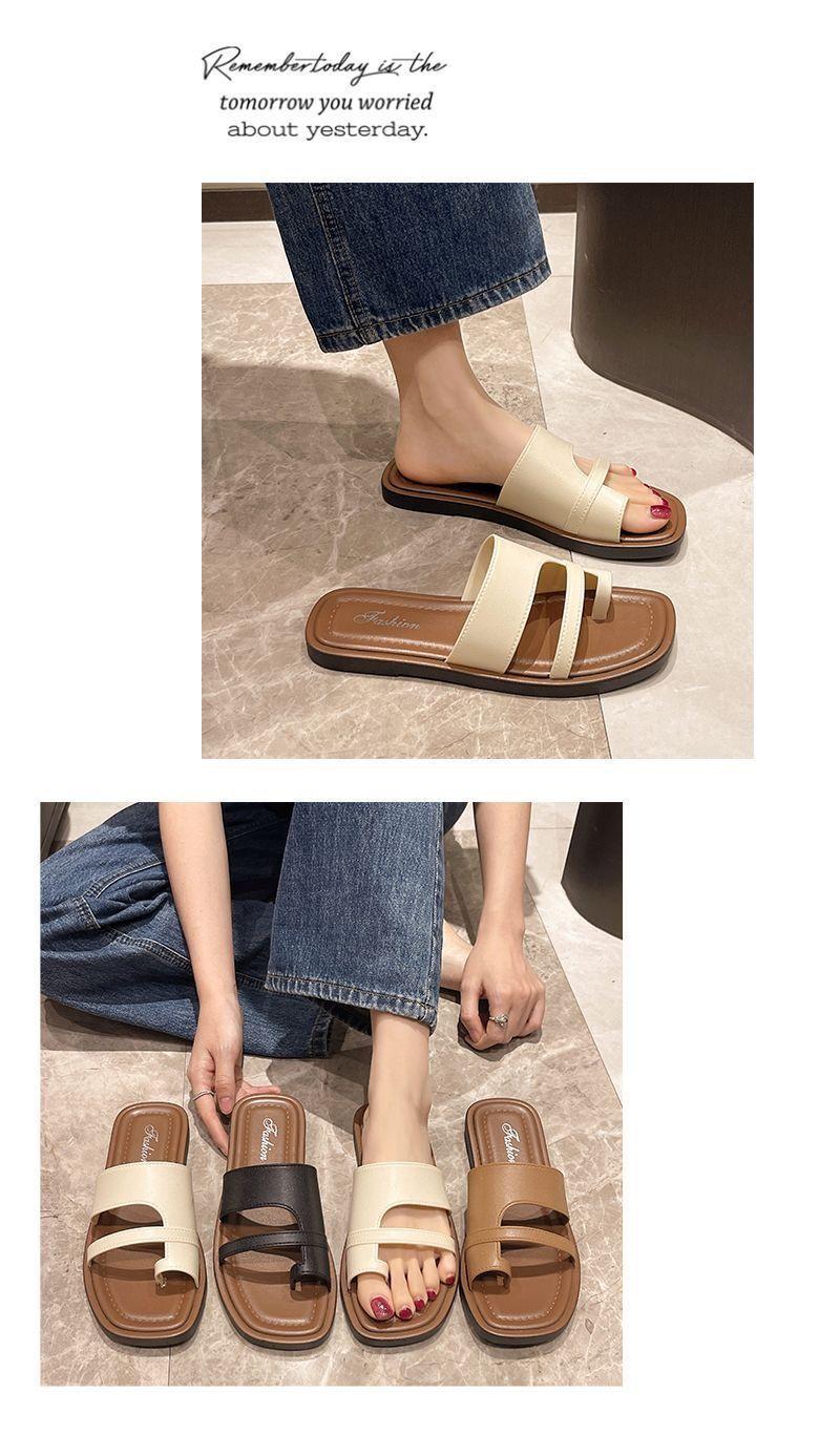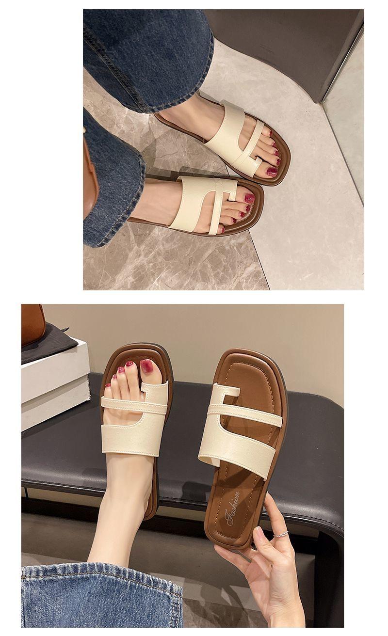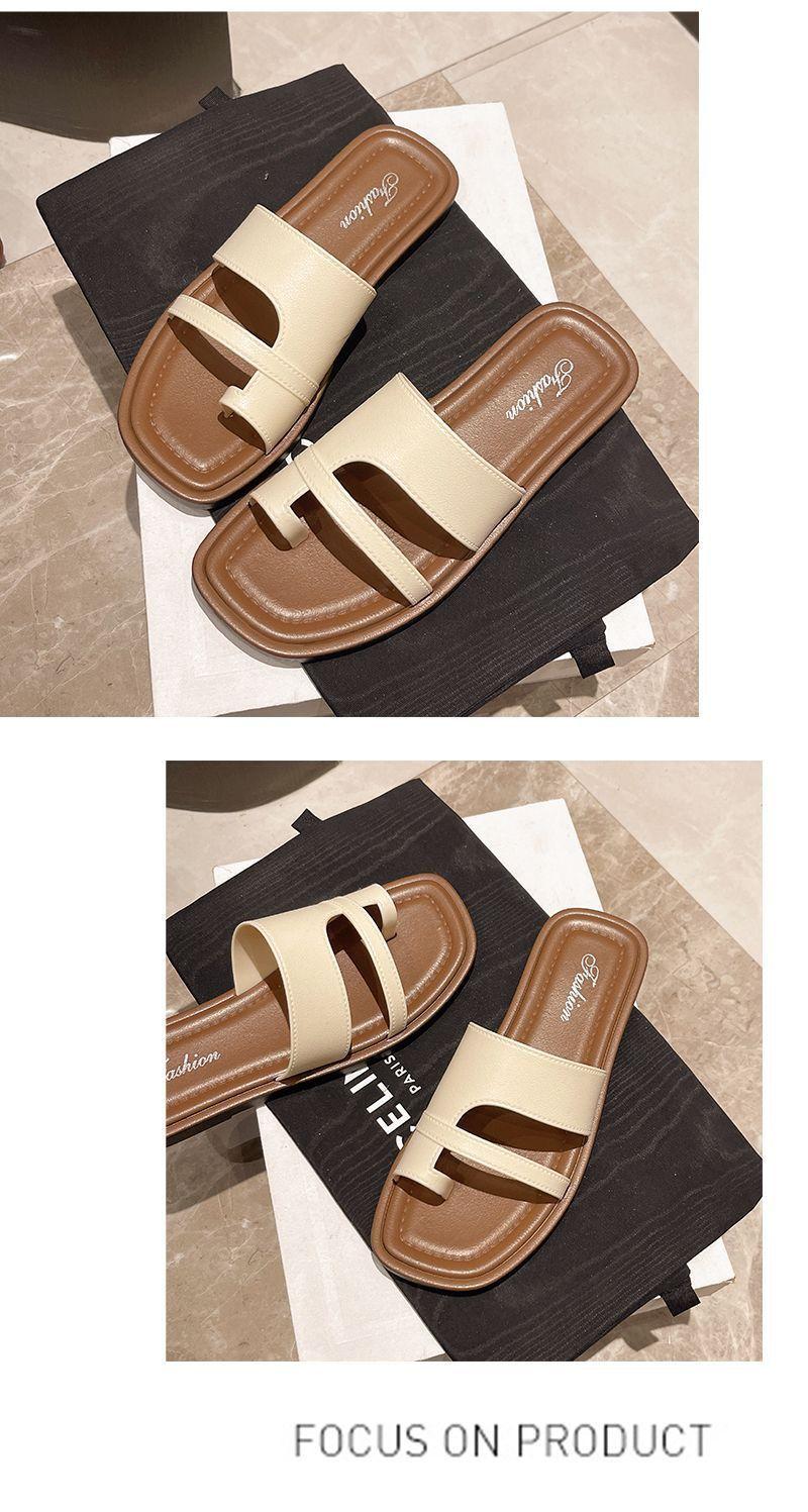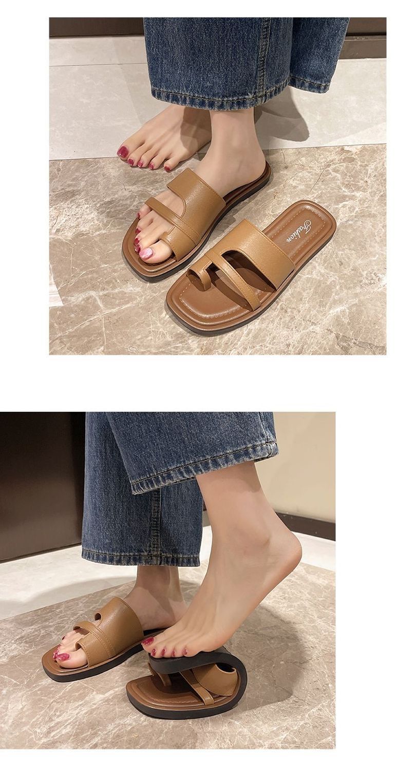 Primavera/Verano 2025 Nuevas Zapatillas Francesas Retro de Punta Plana con Anillo para el Dedo Estilo Coreano Moda de Verano Sandalias para Vacaciones en la Playa Adulto