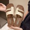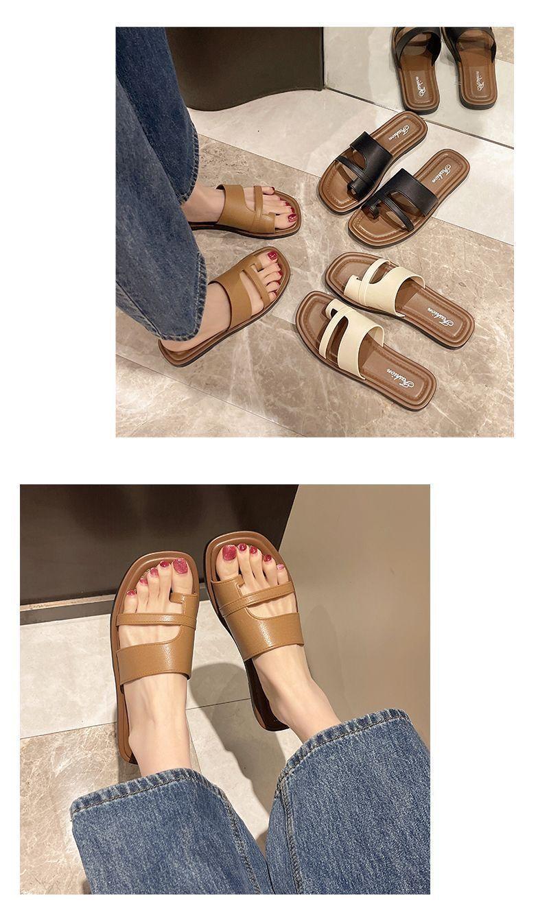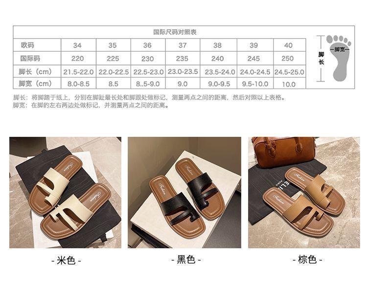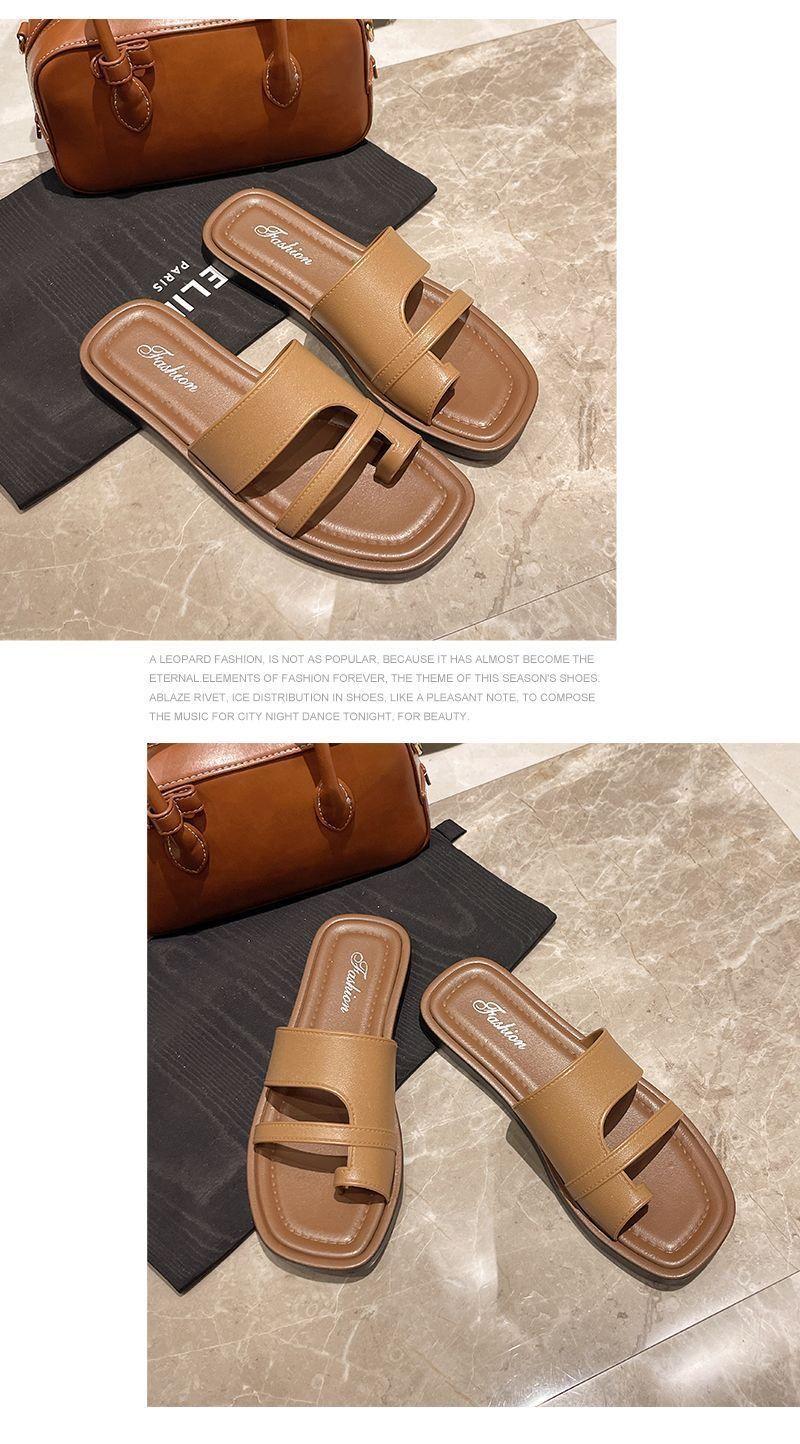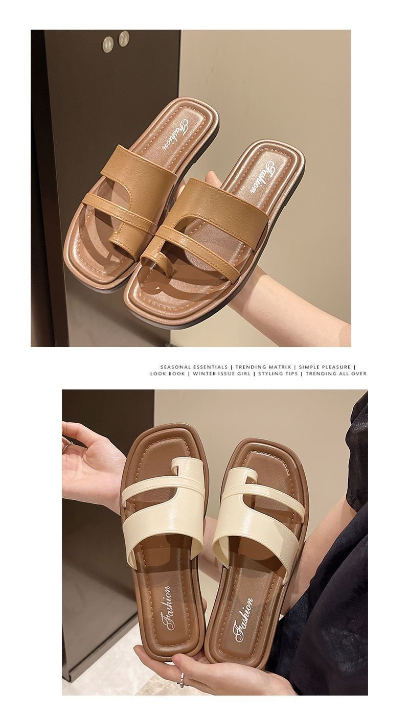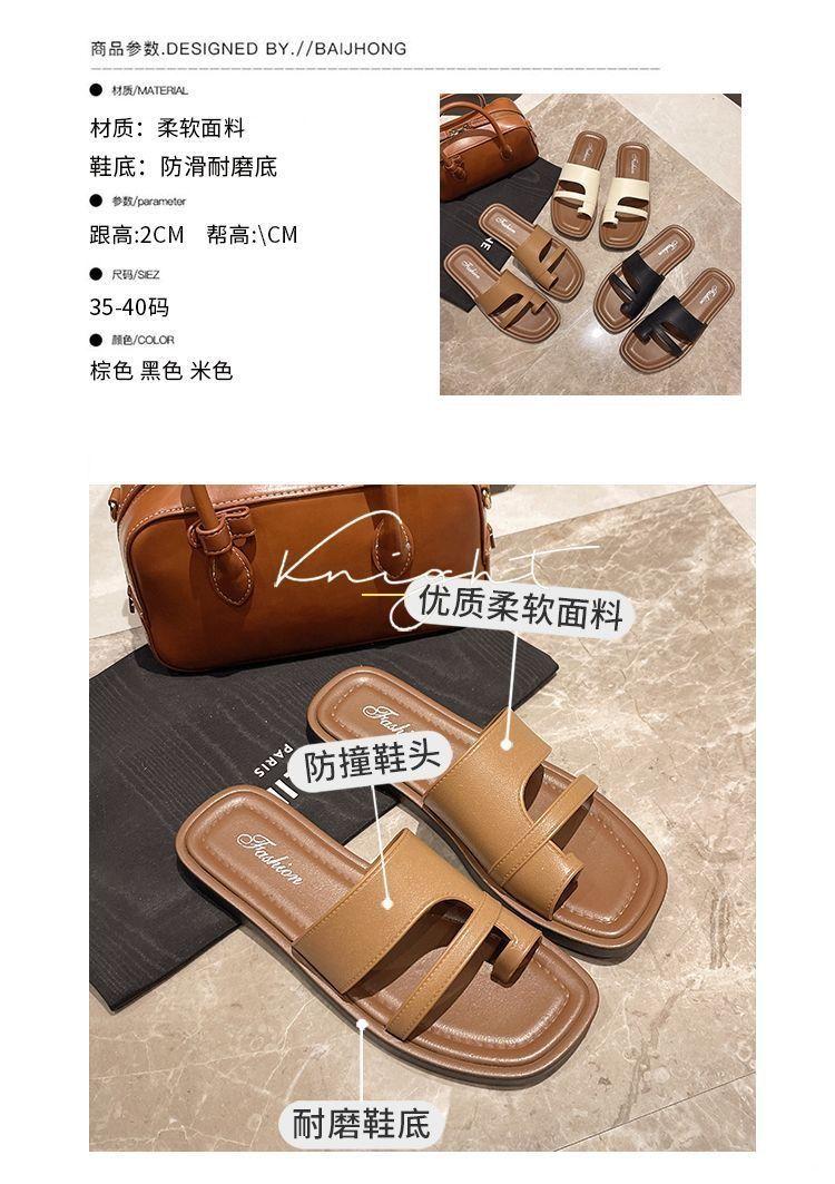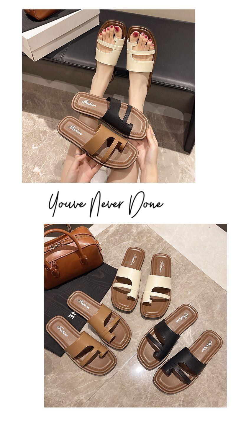 Primavera/Verano 2025 Nuevas Zapatillas Francesas Retro de Punta Plana con Anillo para el Dedo Estilo Coreano Moda de Verano Sandalias para Vacaciones en la Playa Adulto