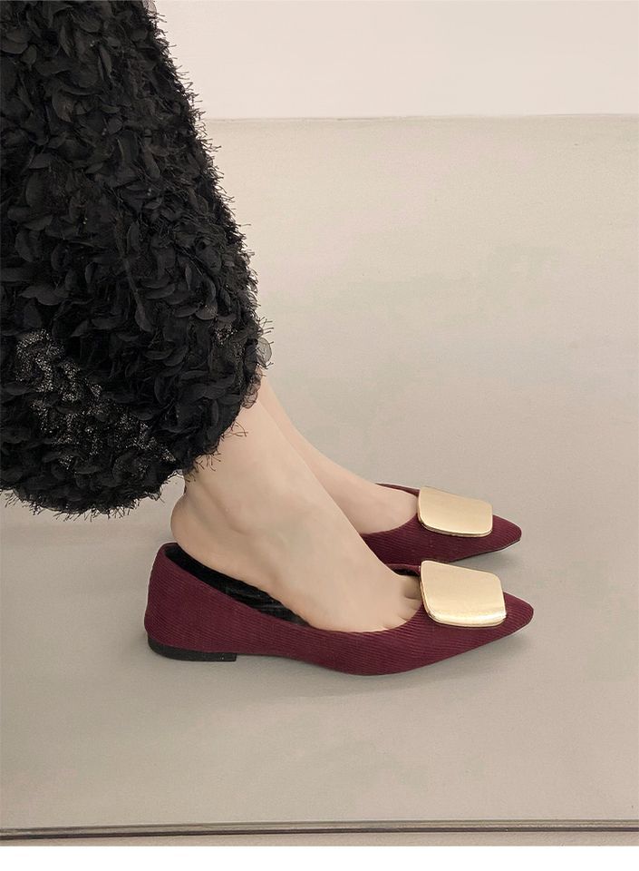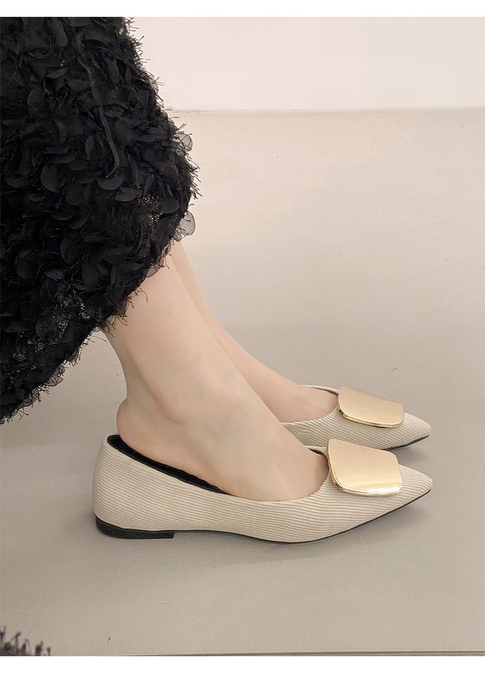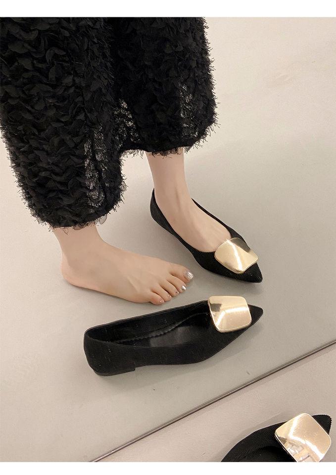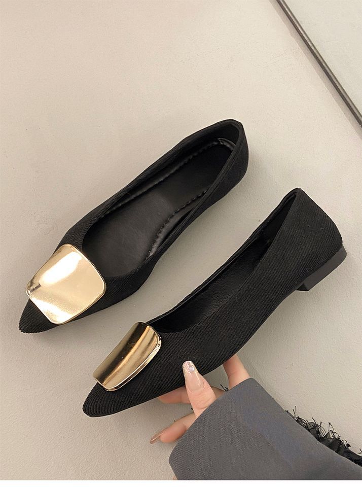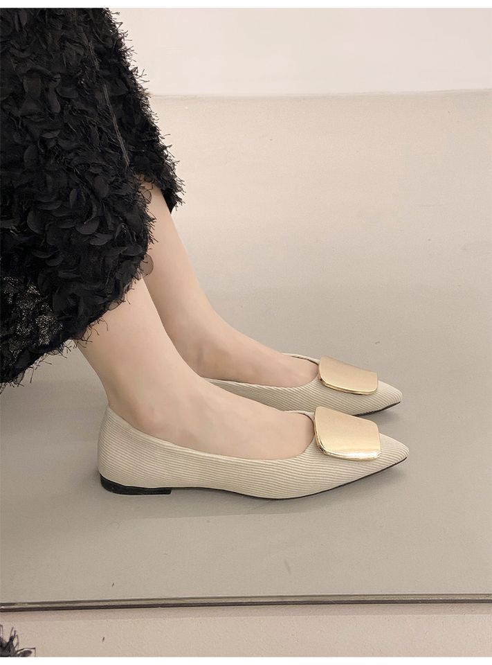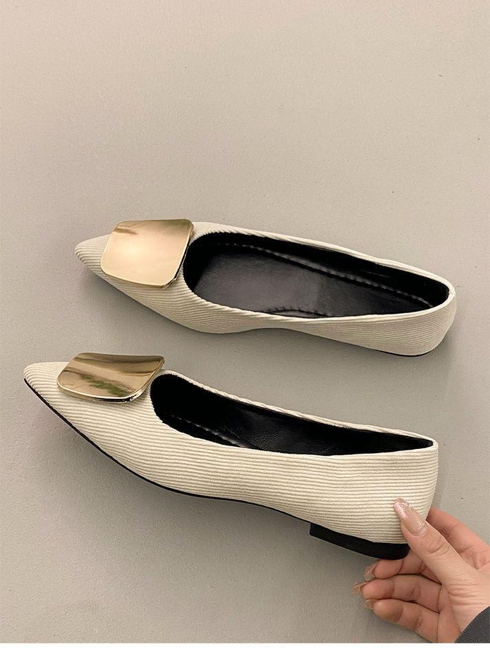 Zapatos Planos de Punta Francesa para Mujer 2025 Primavera y Otoño Nuevos Hebilla Cuadrada Metálica Commuter Versátiles Mocasines Slip-On