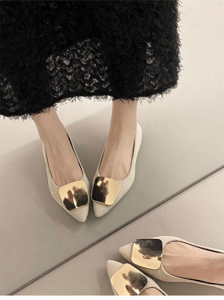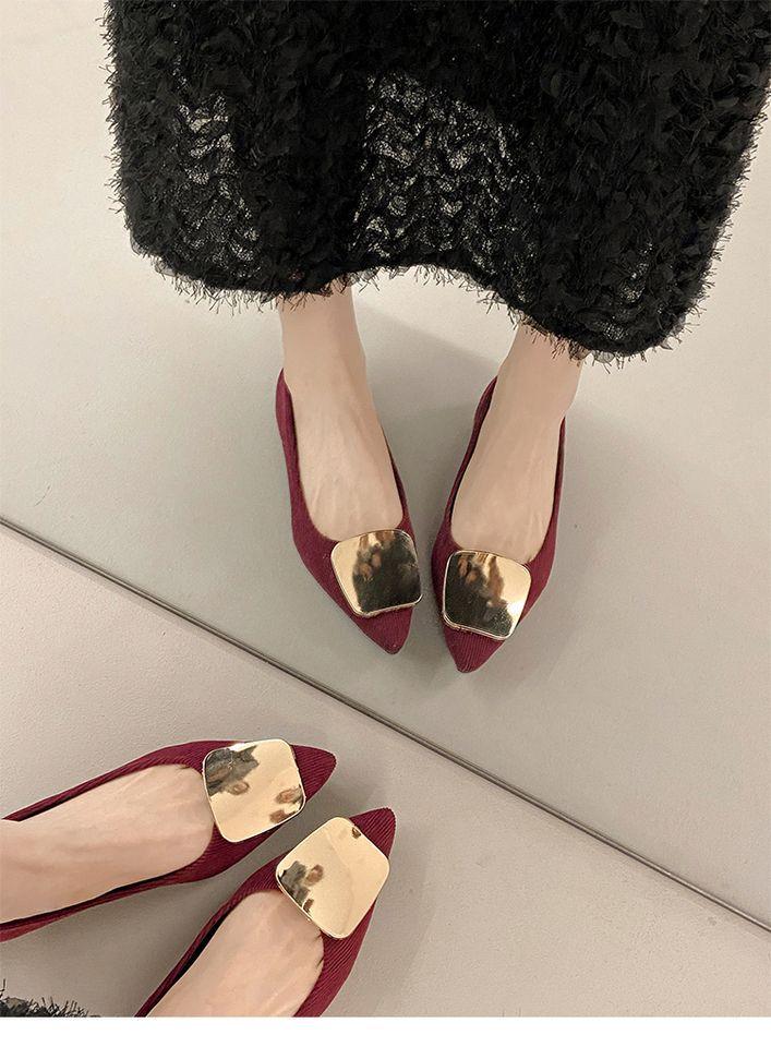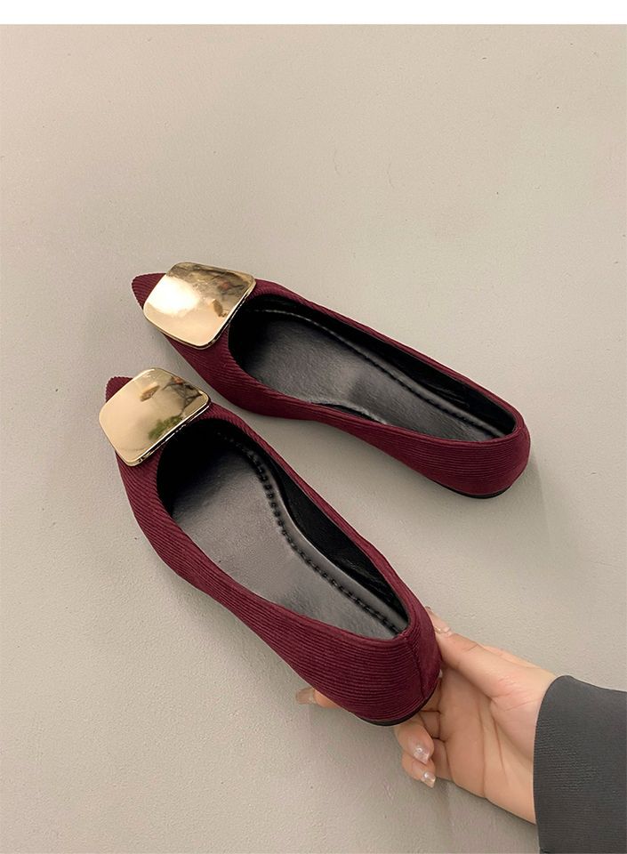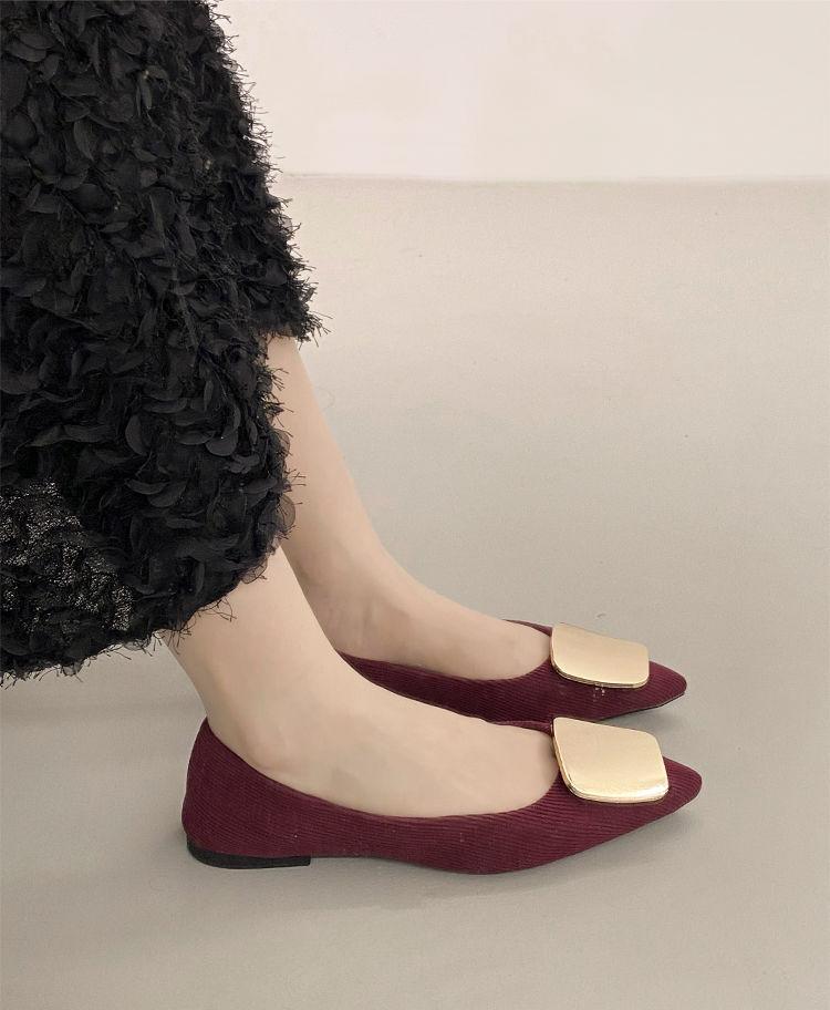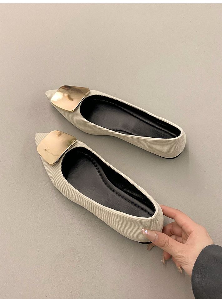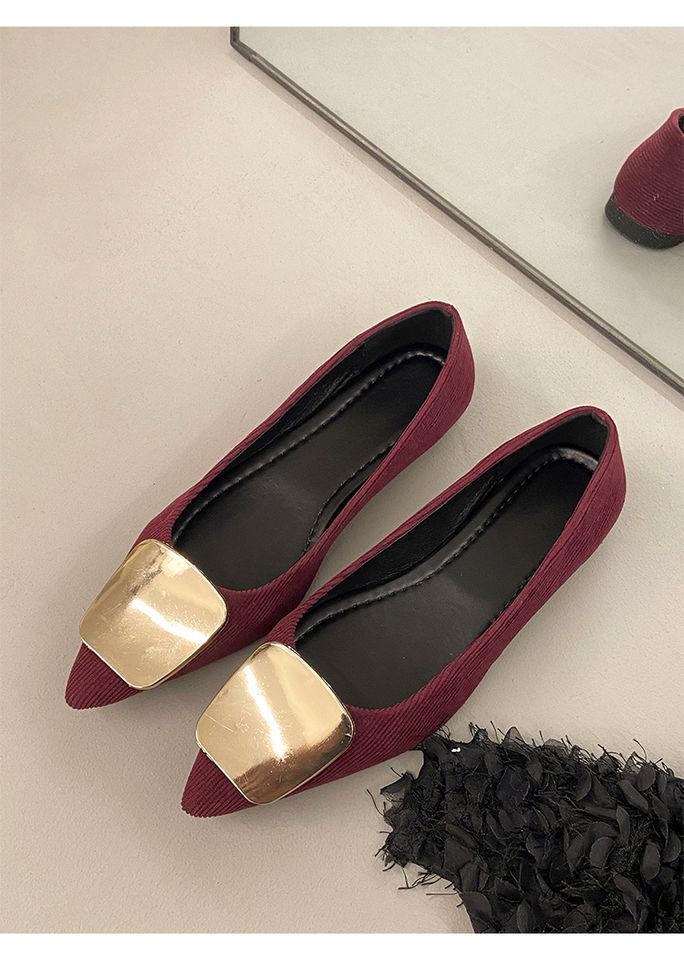 Zapatos Planos de Punta Francesa para Mujer 2025 Primavera y Otoño Nuevos Hebilla Cuadrada Metálica Commuter Versátiles Mocasines Slip-On