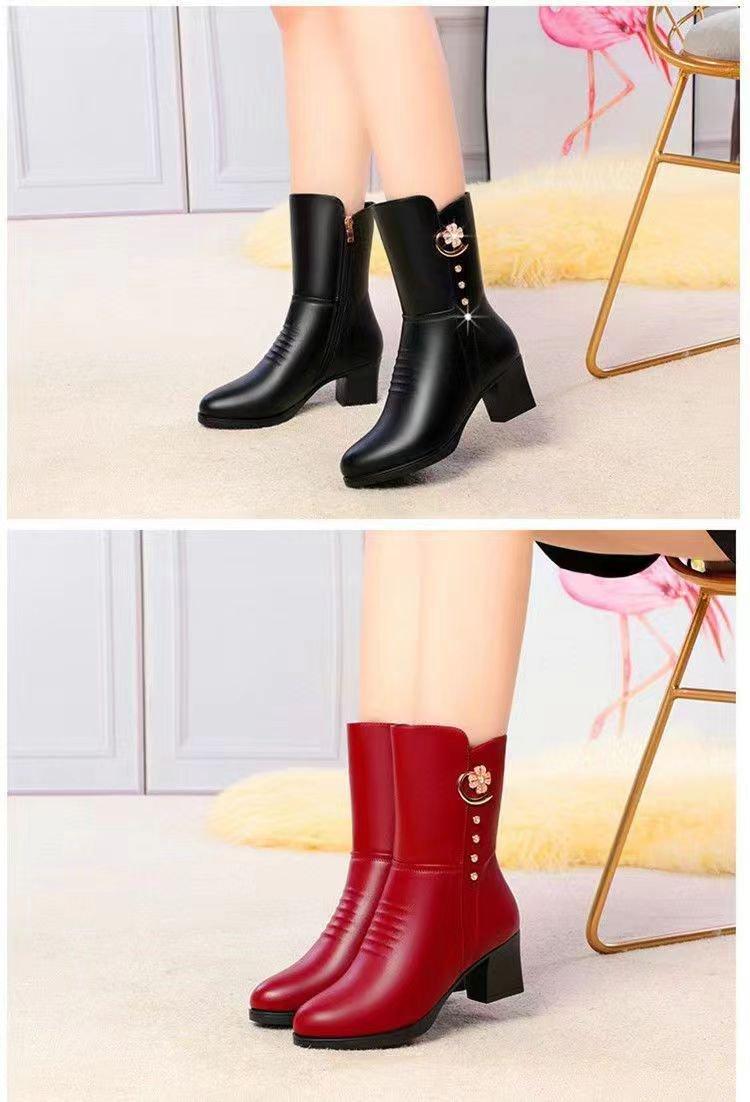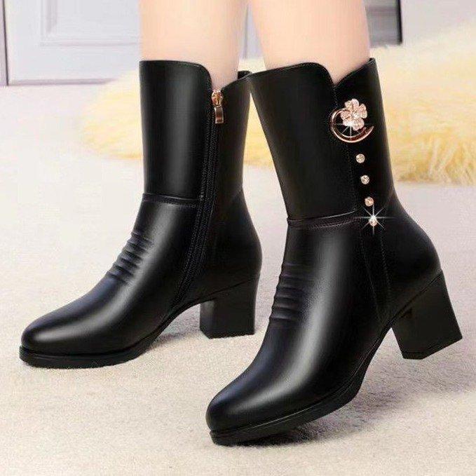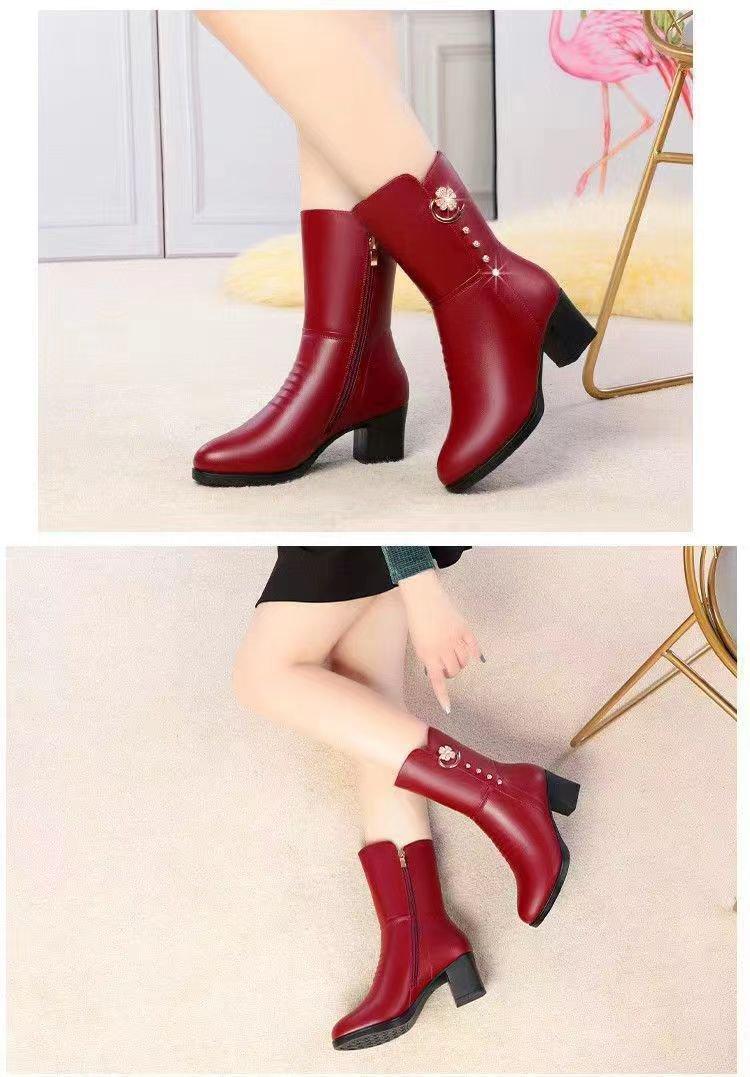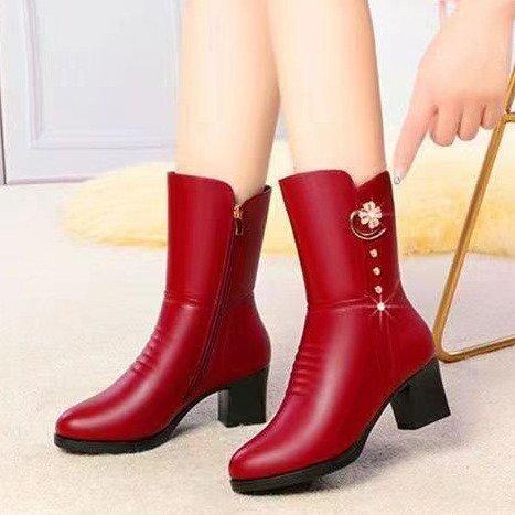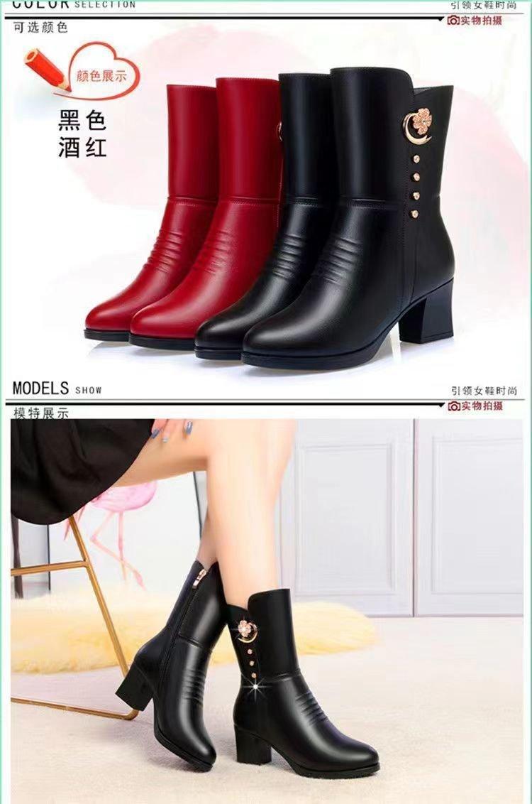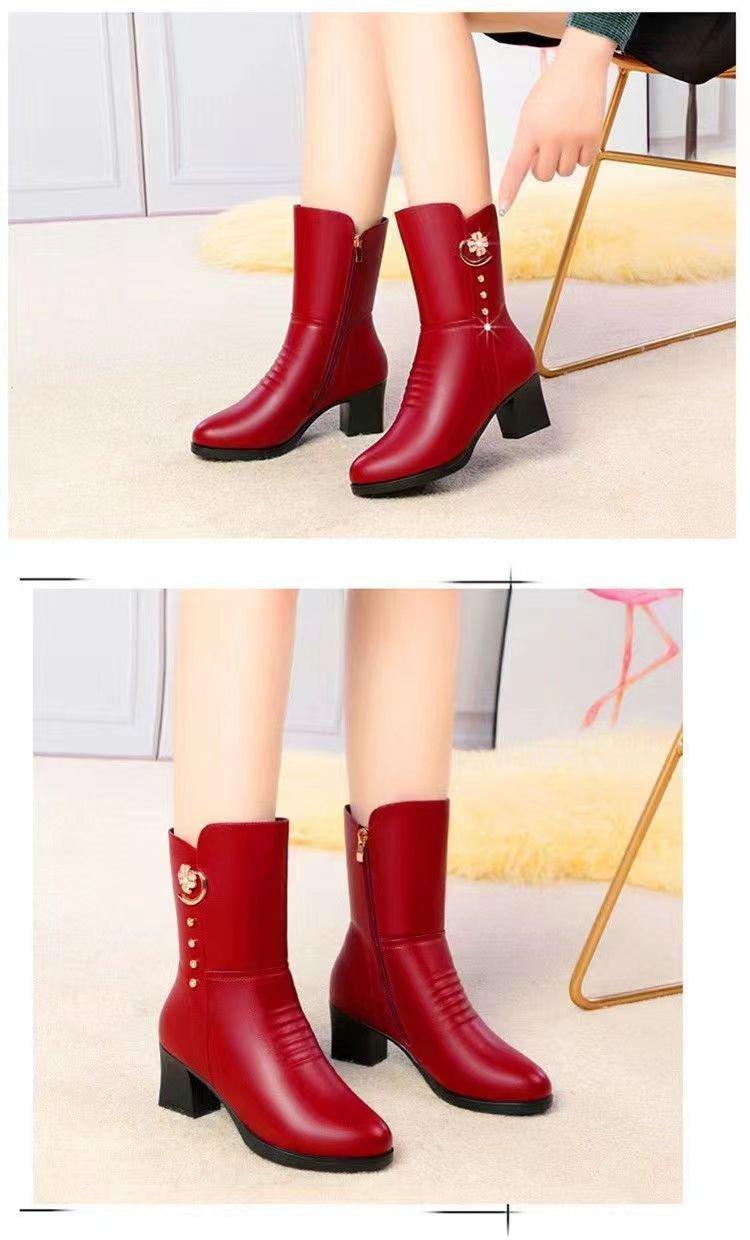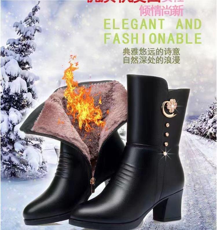 Botas de Algodón para Mujer Media Pantorrilla Botas Martin Nuevas Tacones Altos Botas de Invierno para Mujer con Forro Polar Engrosadas Antideslizantes Cálidas Zapatos de Algodón para Madre