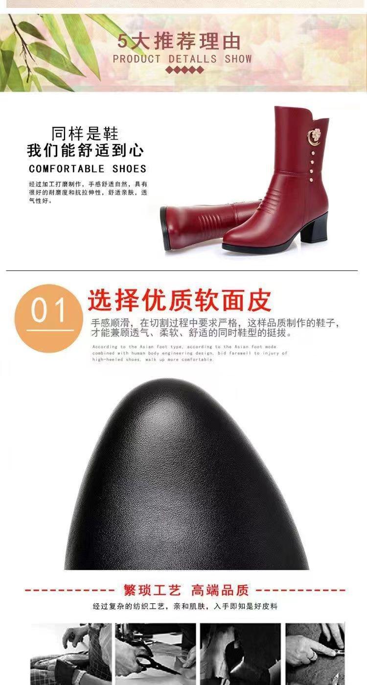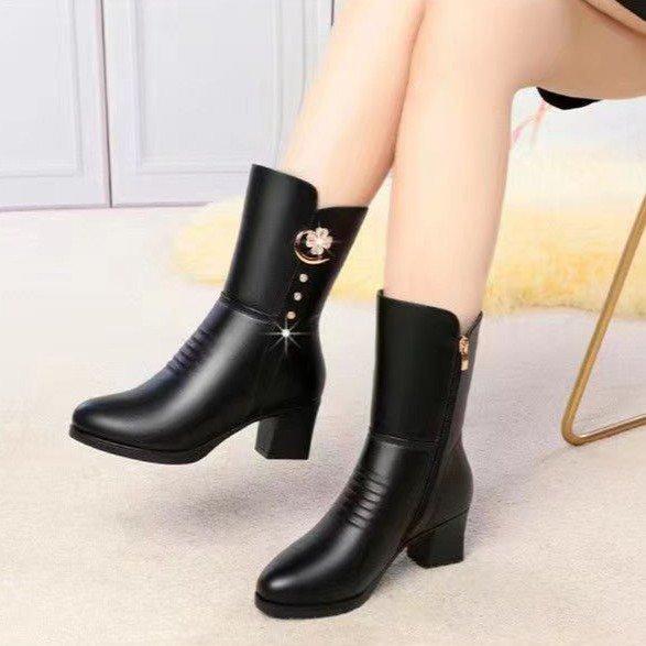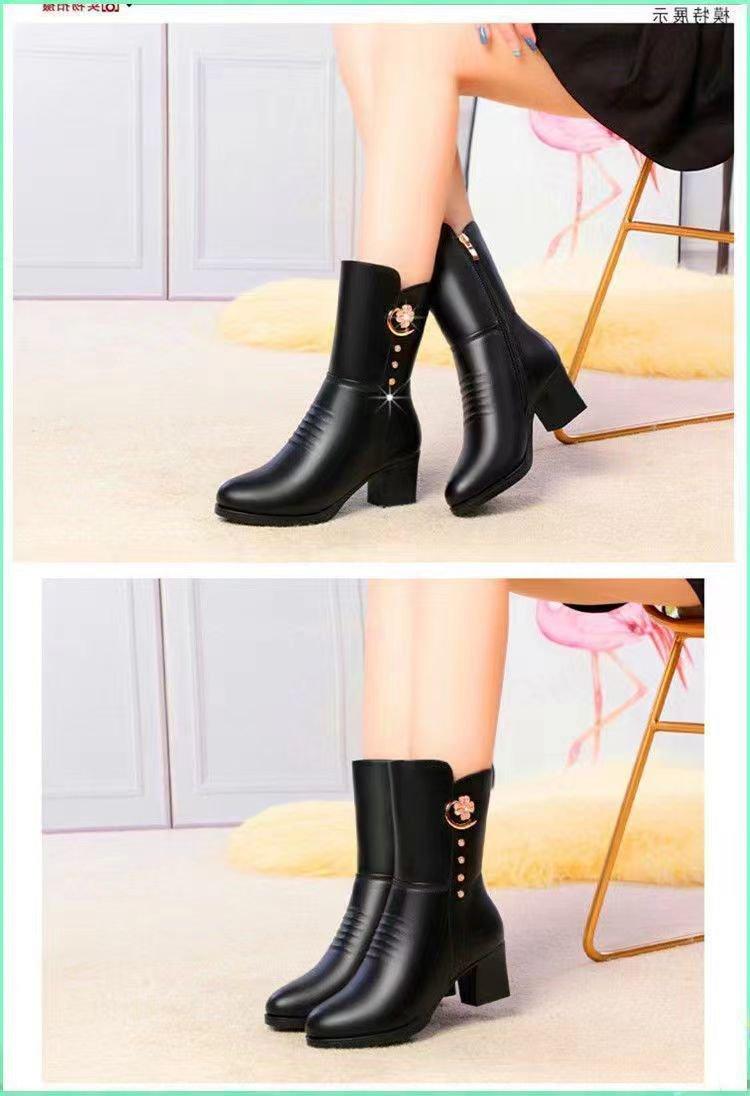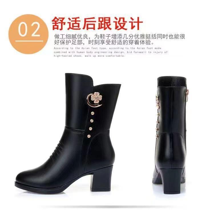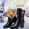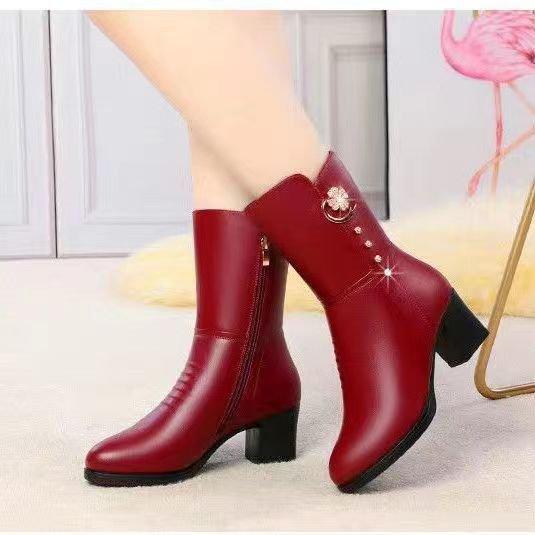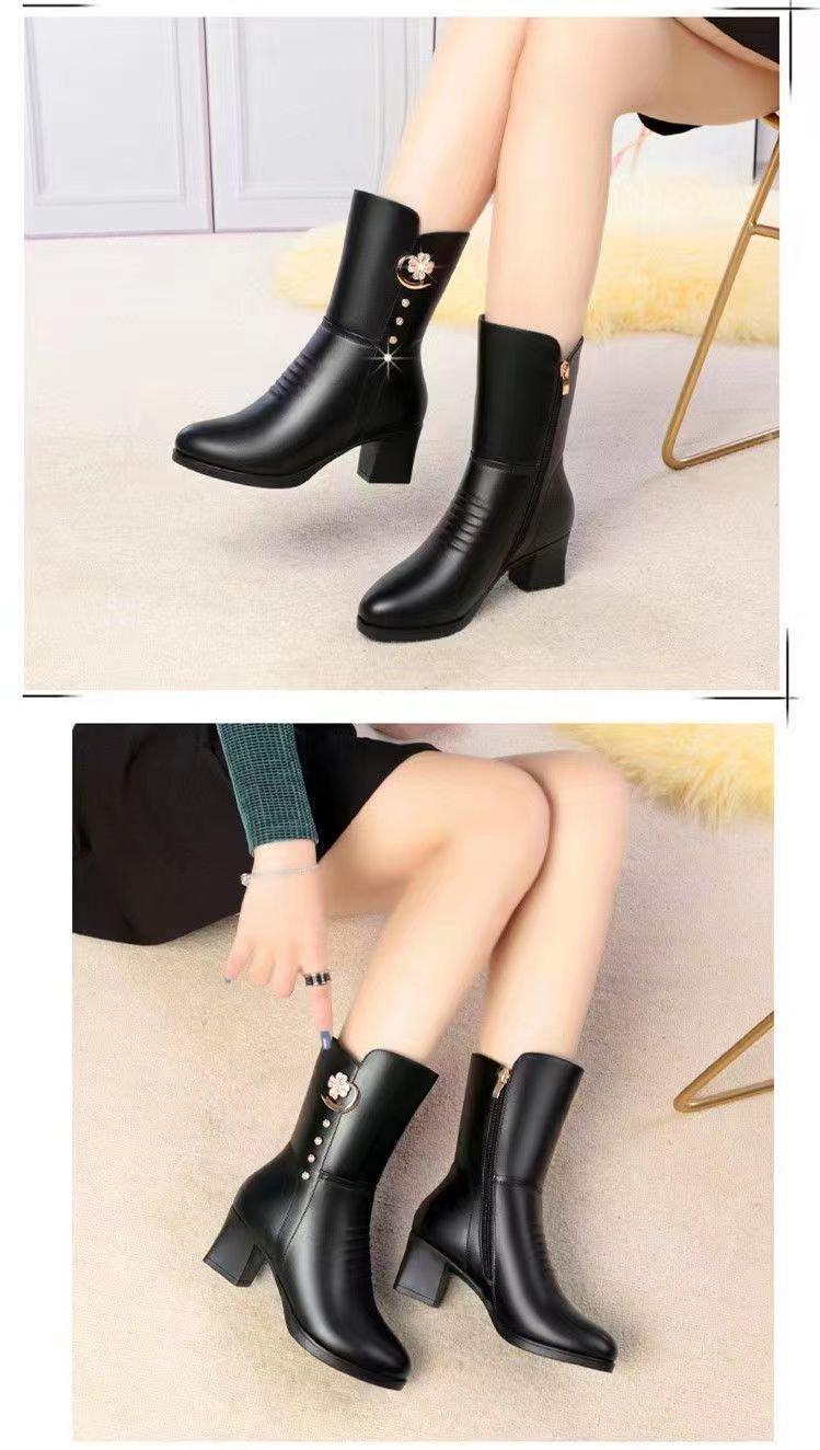 Botas de Algodón para Mujer Media Pantorrilla Botas Martin Nuevas Tacones Altos Botas de Invierno para Mujer con Forro Polar Engrosadas Antideslizantes Cálidas Zapatos de Algodón para Madre