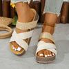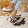 2025 Verano Nuevo Comercio Exterior Europeo y Americano Talla Grande Boca de Pez Tejido Volador Moda Tacón Grueso Zapatillas Cómodas Perezosas Venta al por Mayor