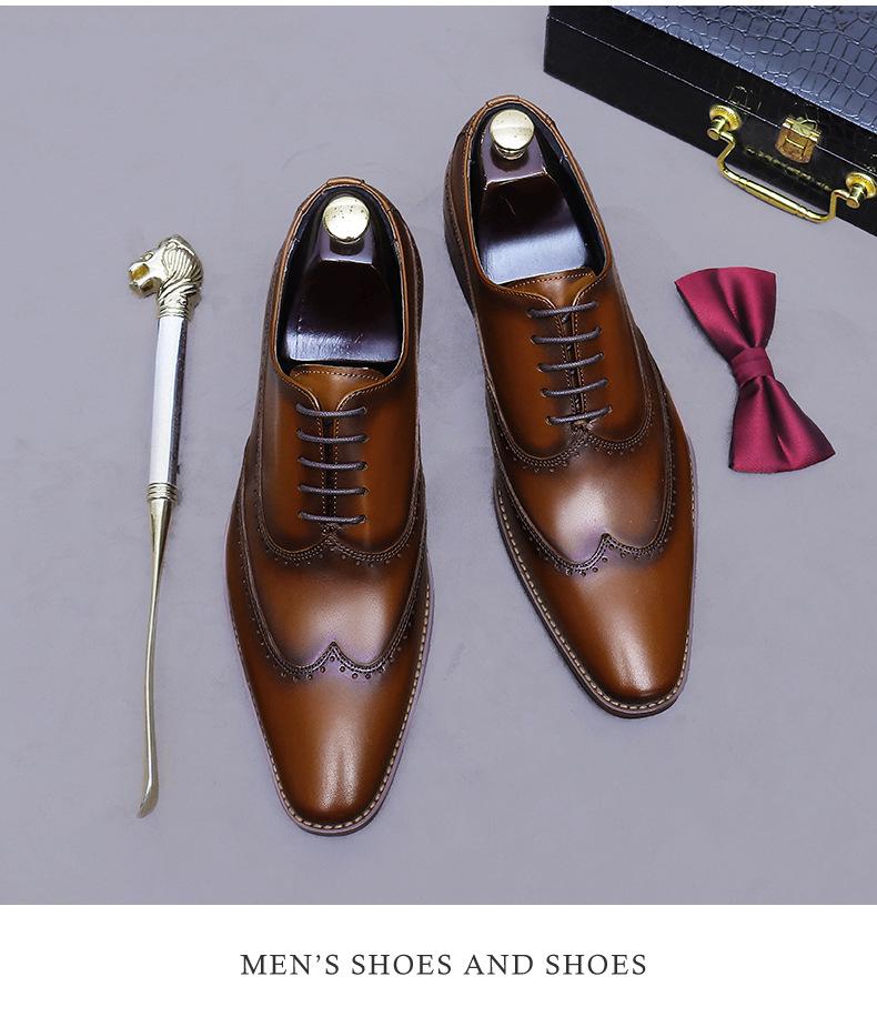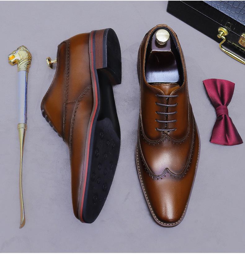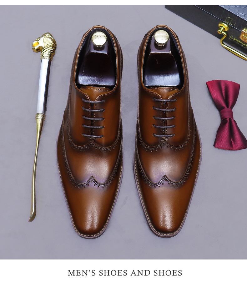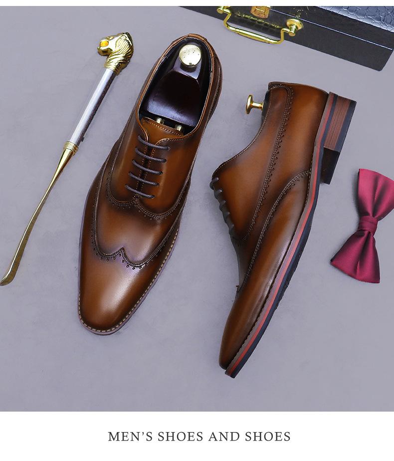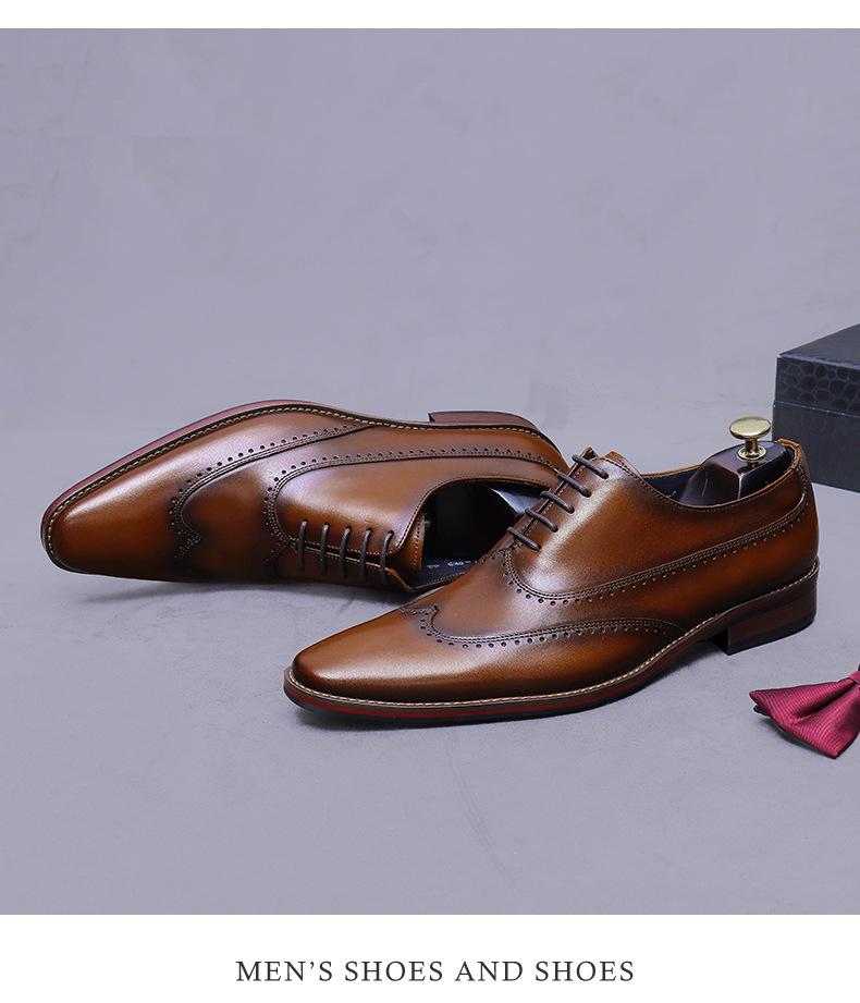 Moda nueva europea y americana para hombre, zapatos formales de negocios casuales de cuero, zapatos de cuero de punta plana retro británicos de piel de vaca genuina, zapatos de hombre