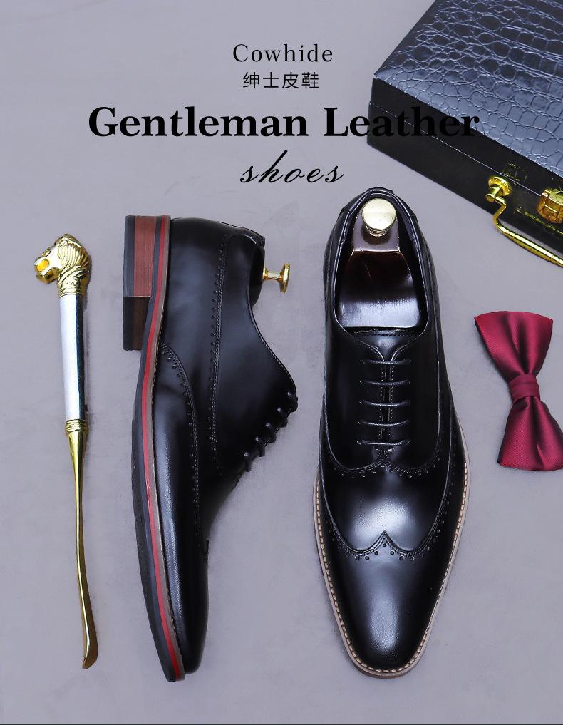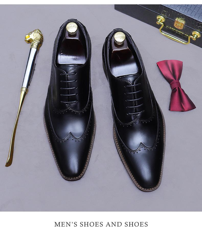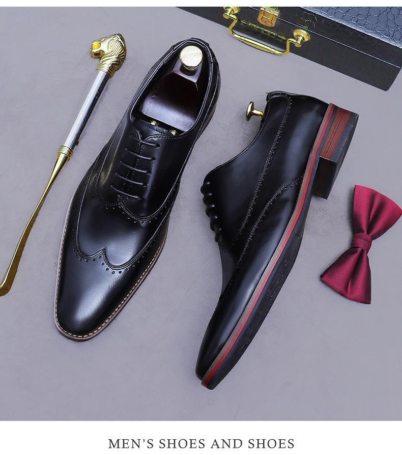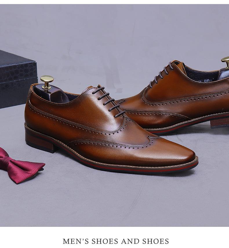 Moda nueva europea y americana para hombre, zapatos formales de negocios casuales de cuero, zapatos de cuero de punta plana retro británicos de piel de vaca genuina, zapatos de hombre
