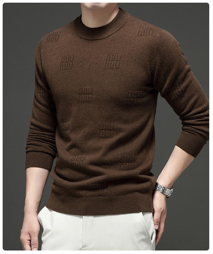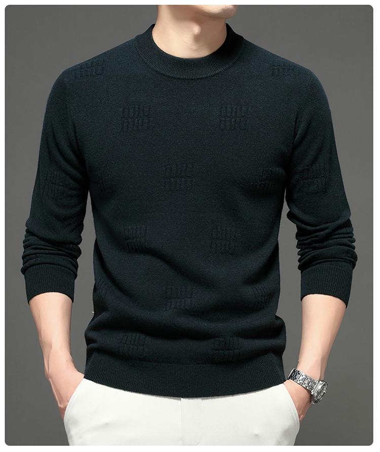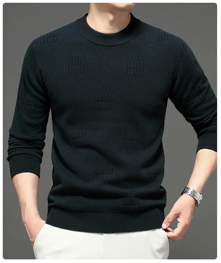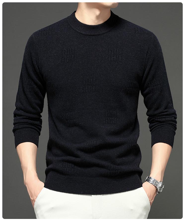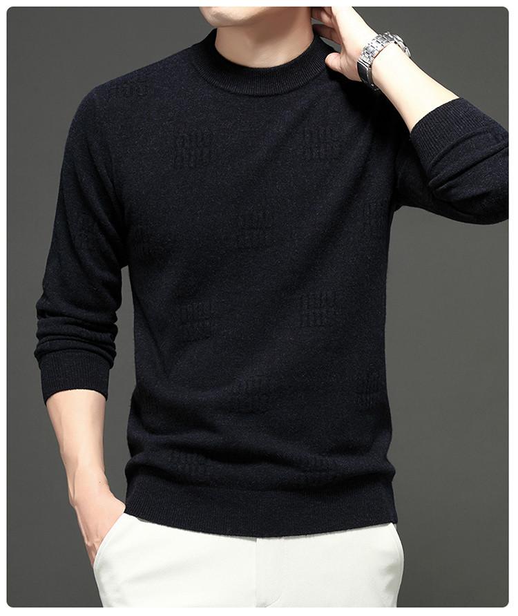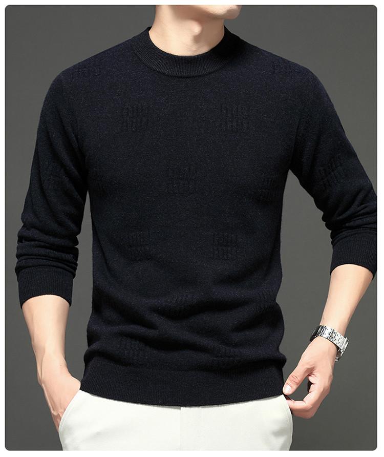 Suéter de Lana de Cuello Redondo Medio Alto para Hombre 2025 Otoño/Invierno 100% Lana Pura Tejido Jersey Capa Base Ropa para Papá