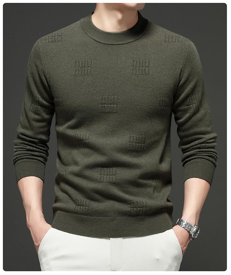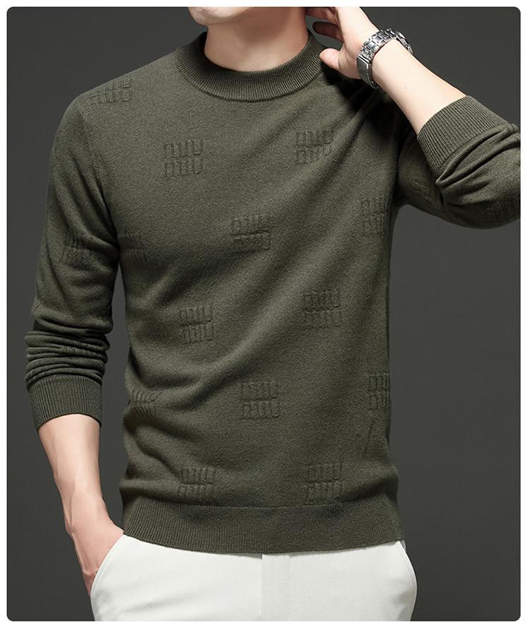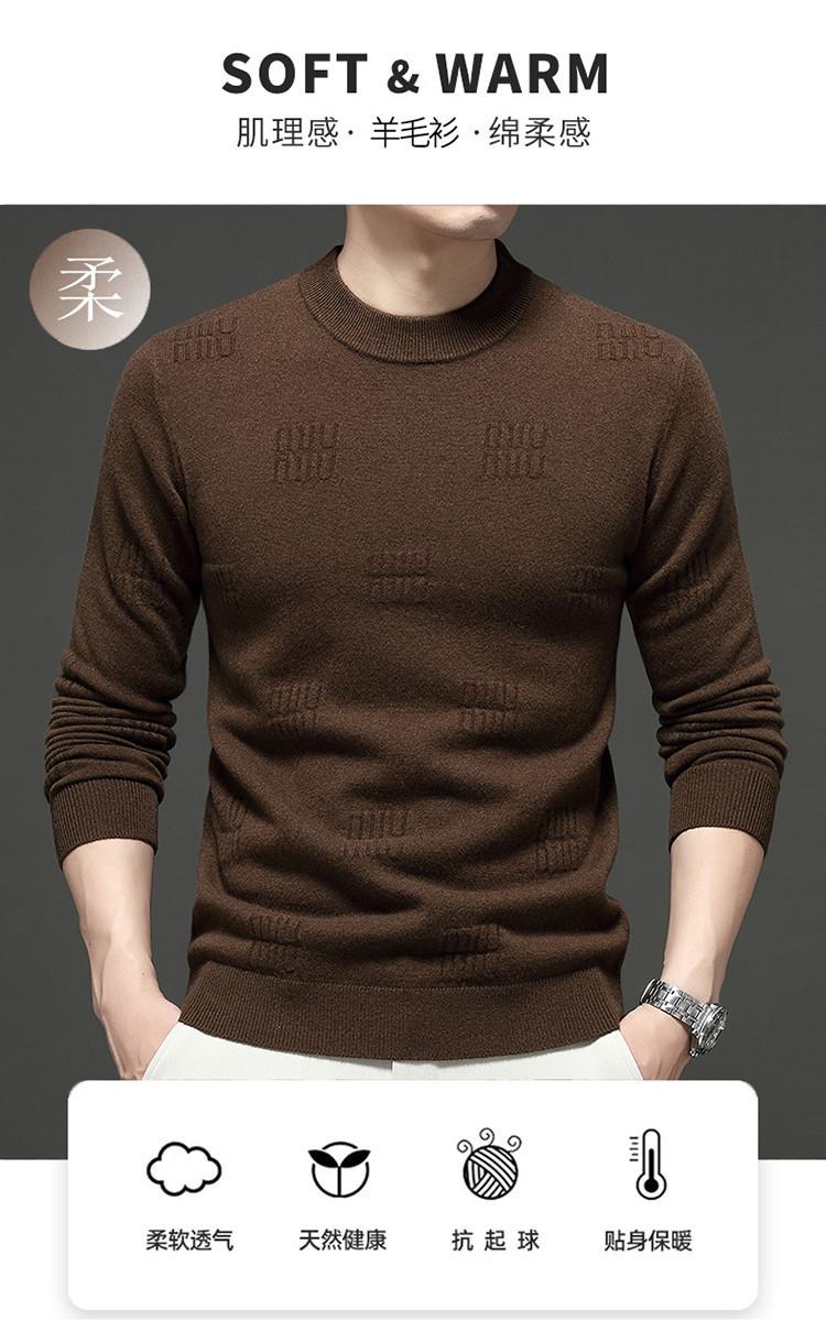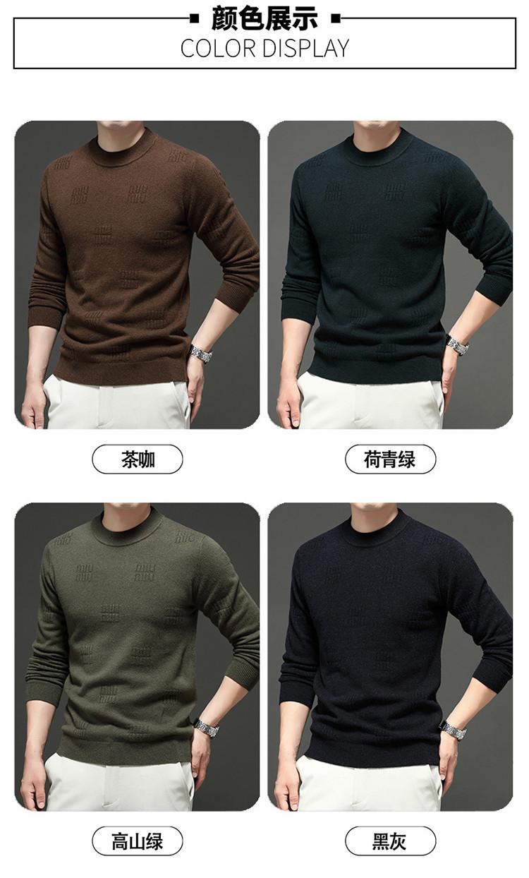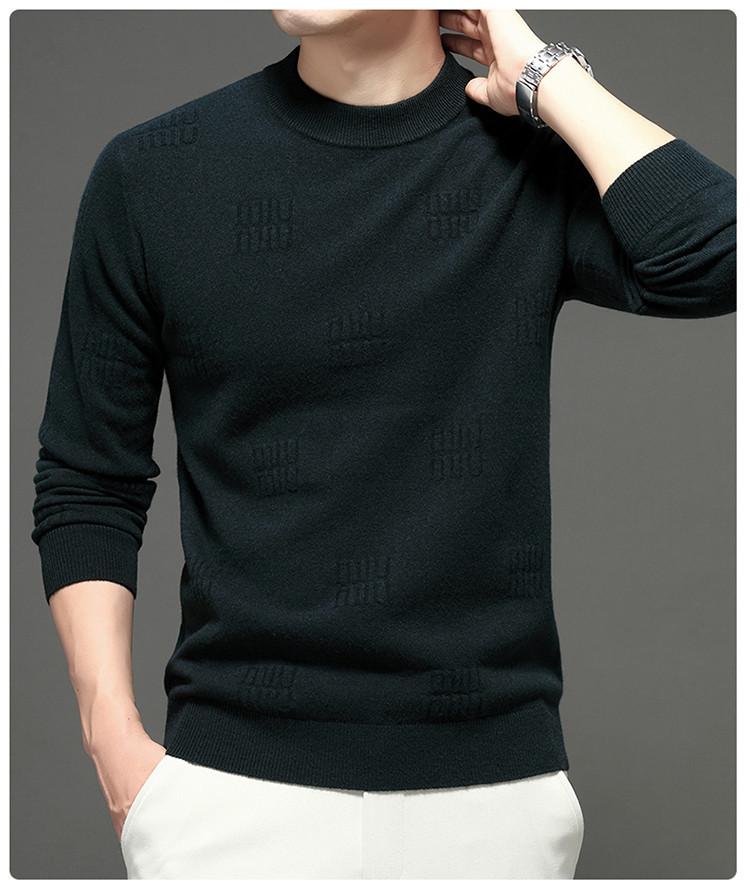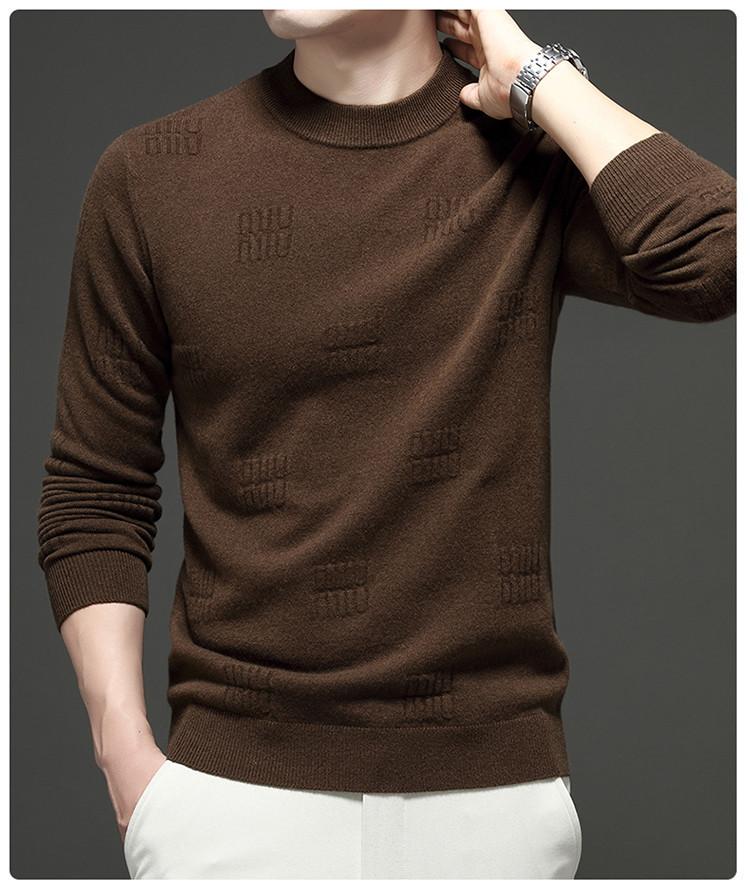 Suéter de Lana de Cuello Redondo Medio Alto para Hombre 2025 Otoño/Invierno 100% Lana Pura Tejido Jersey Capa Base Ropa para Papá